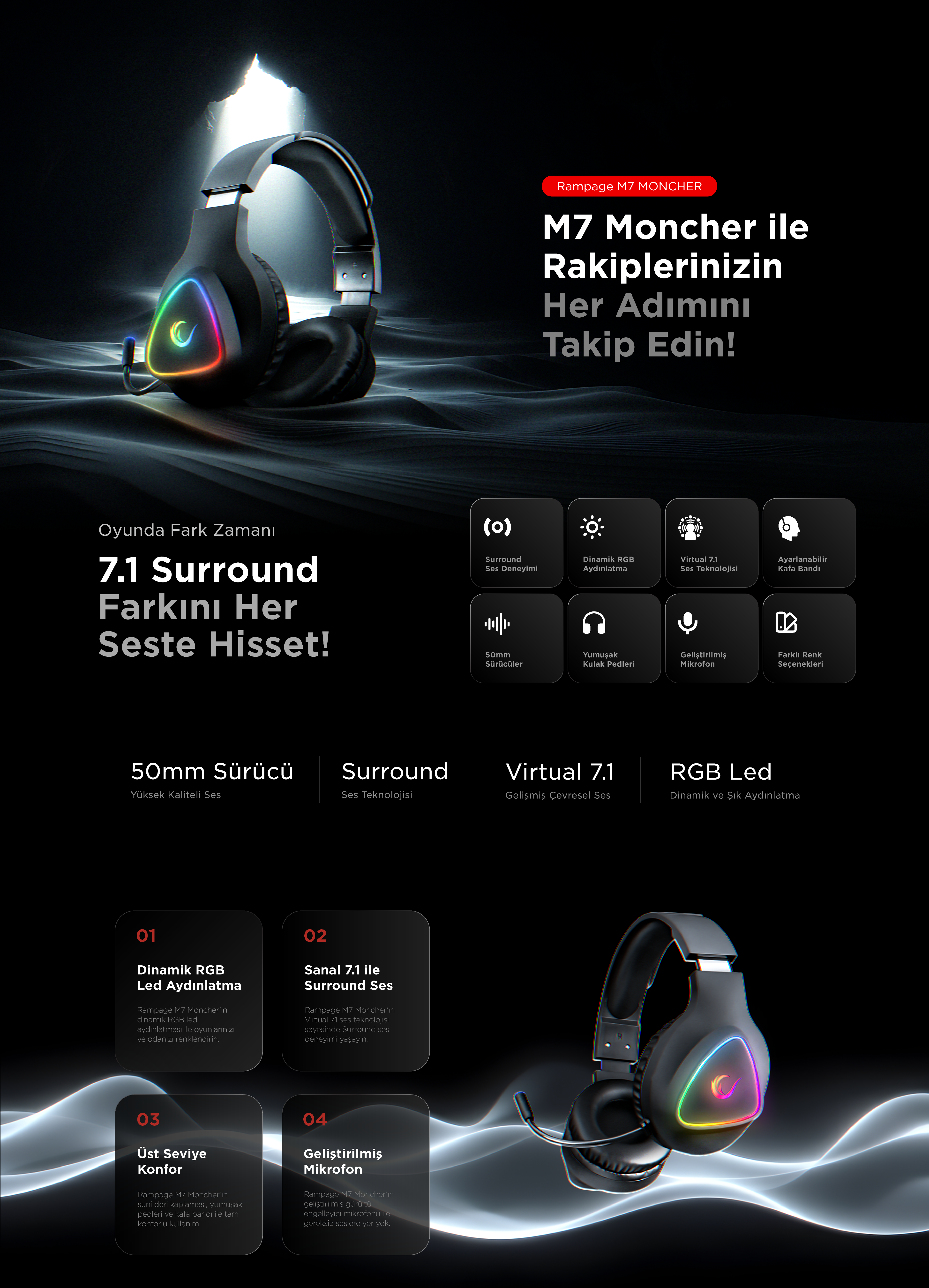 M7 Moncher RGB 7.1 Oyuncu Kulaklığı-Pembe