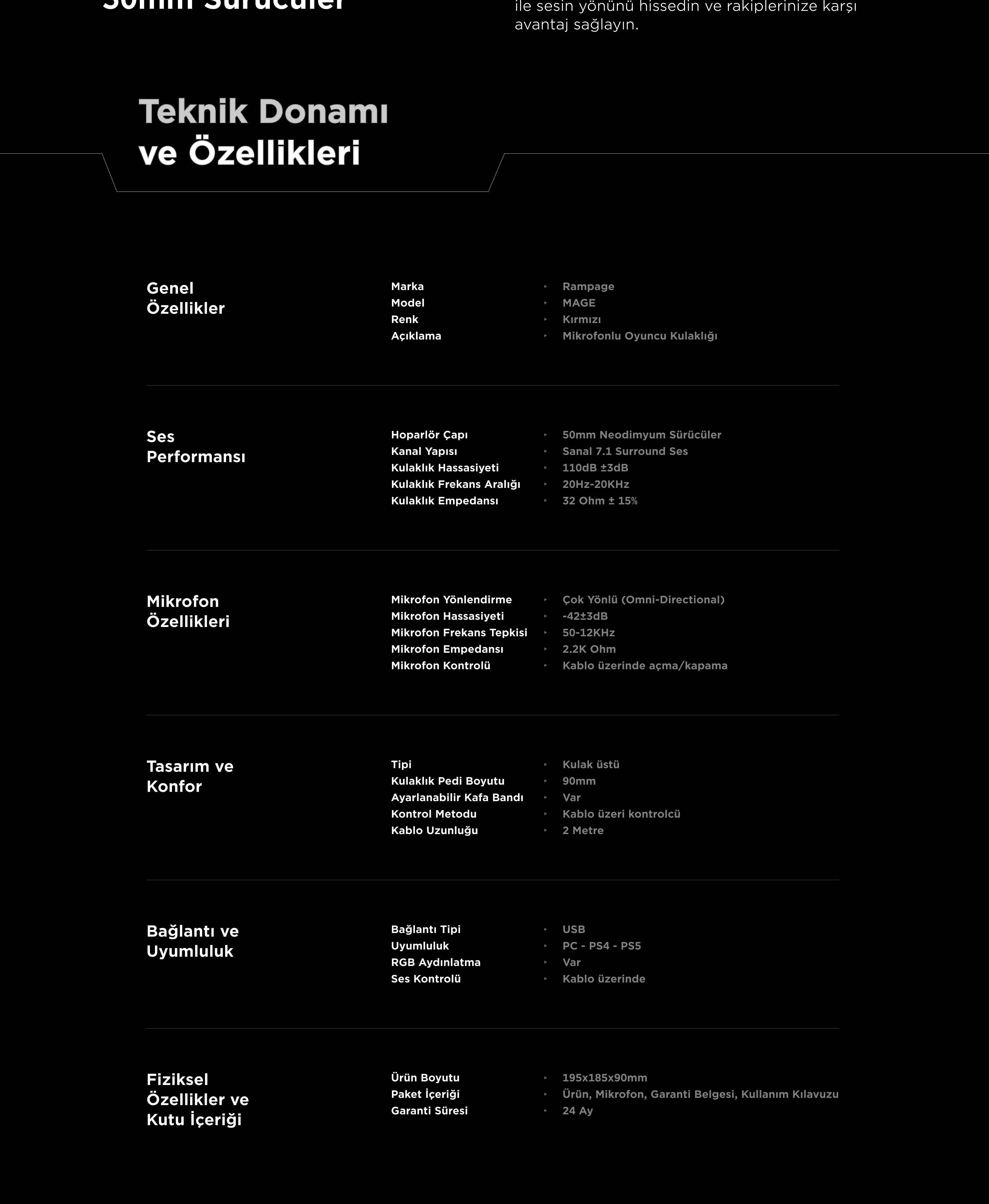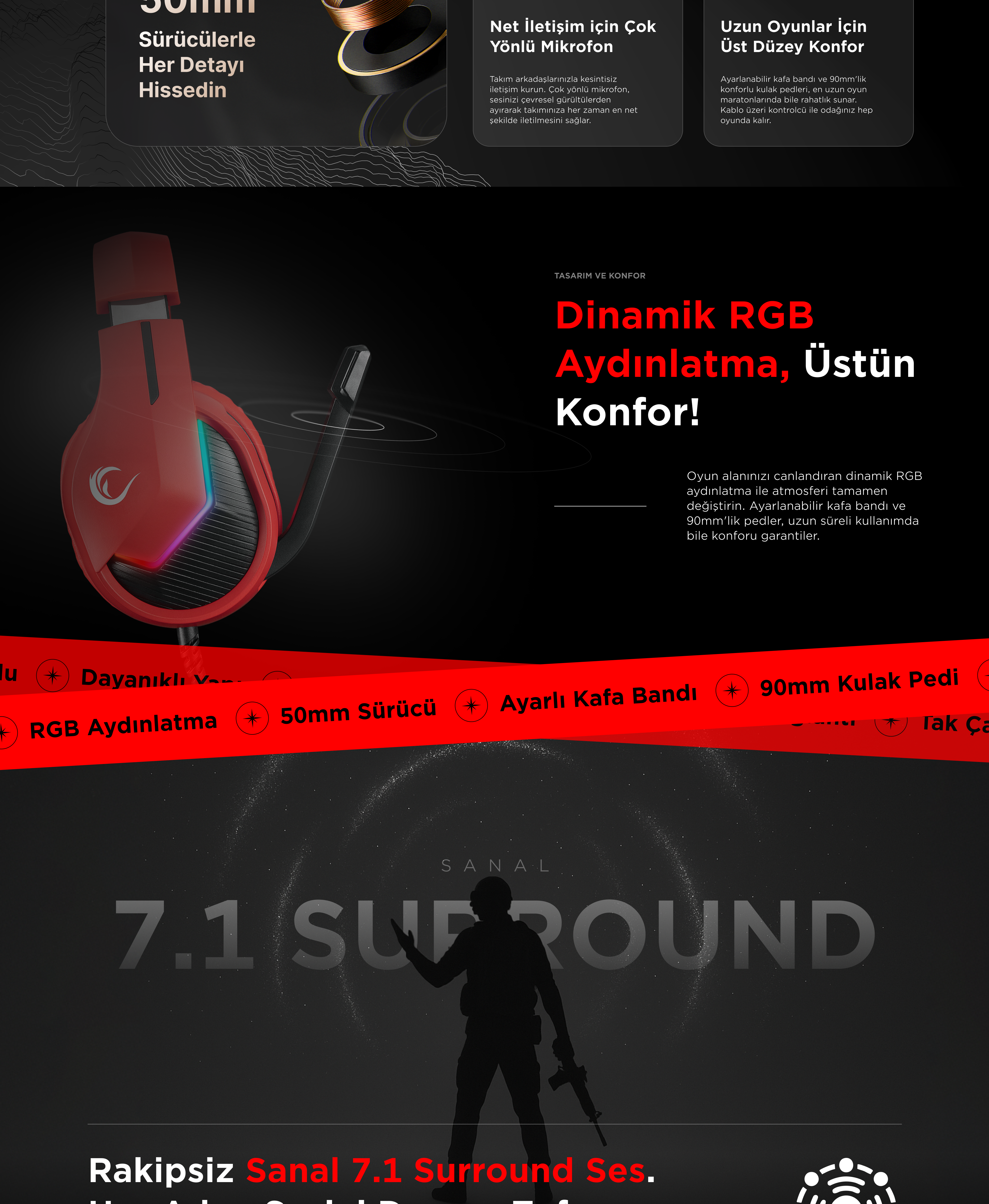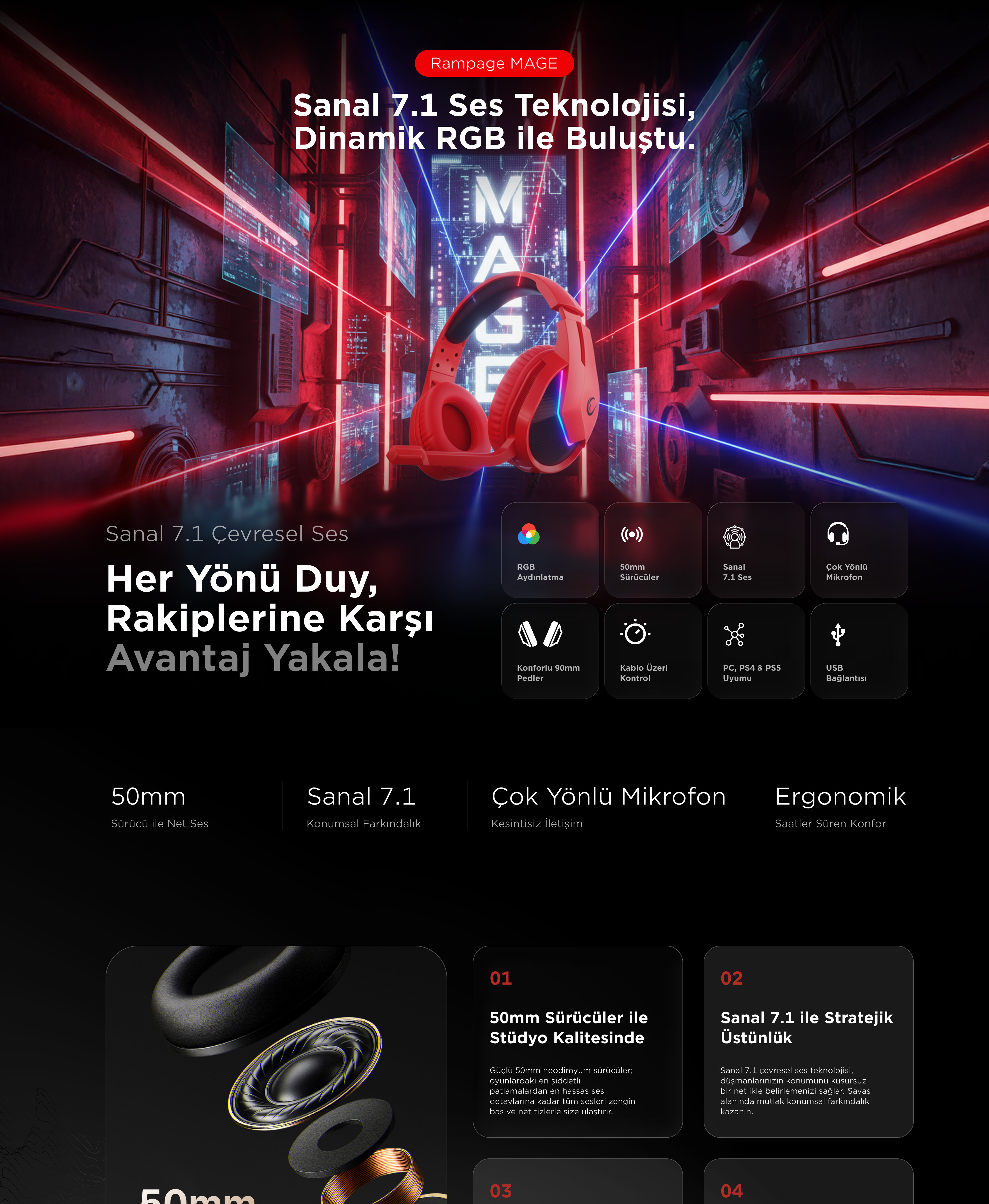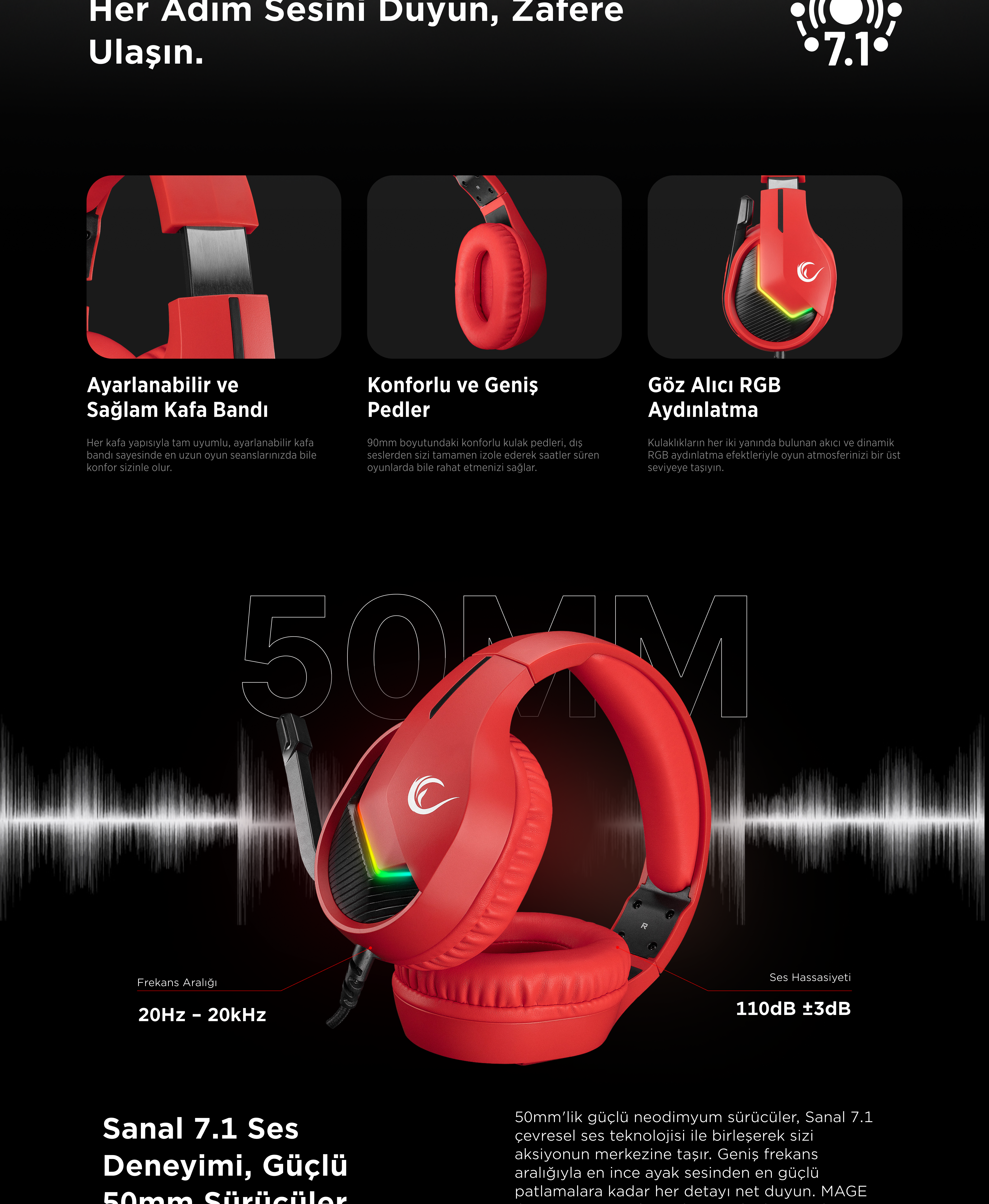 Mage RGB 7.1 Oyuncu Kulaklığı-Kırmızı
