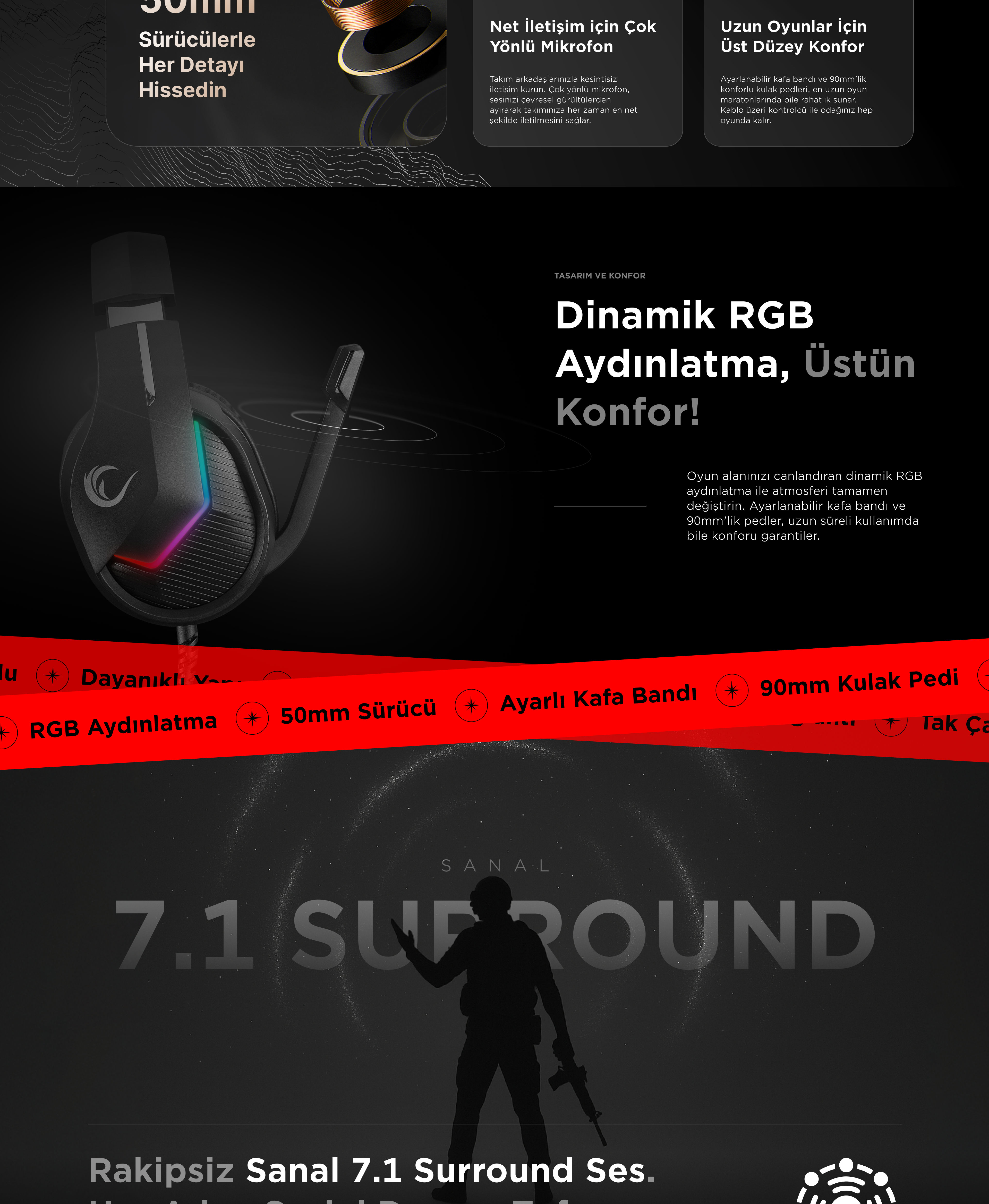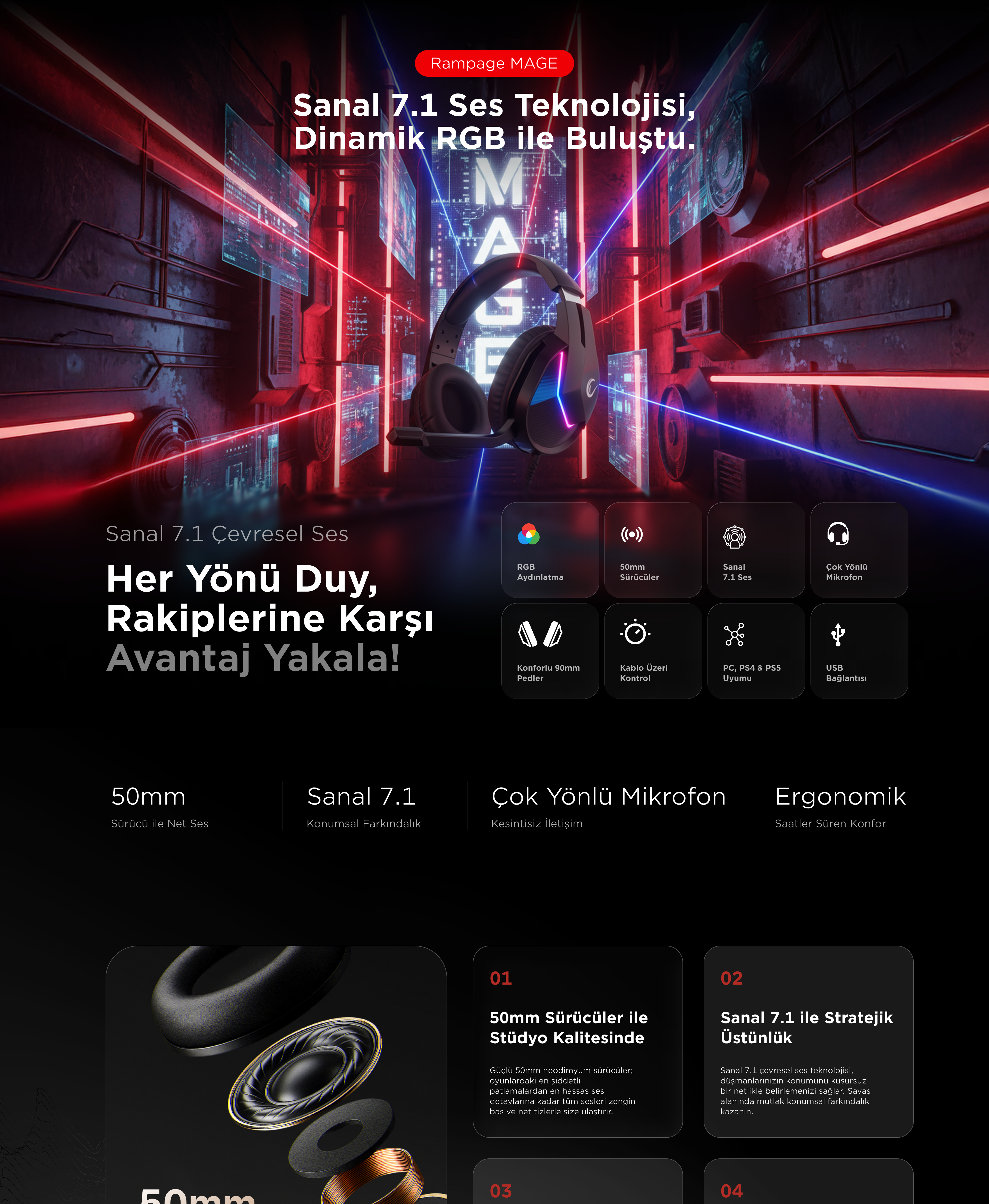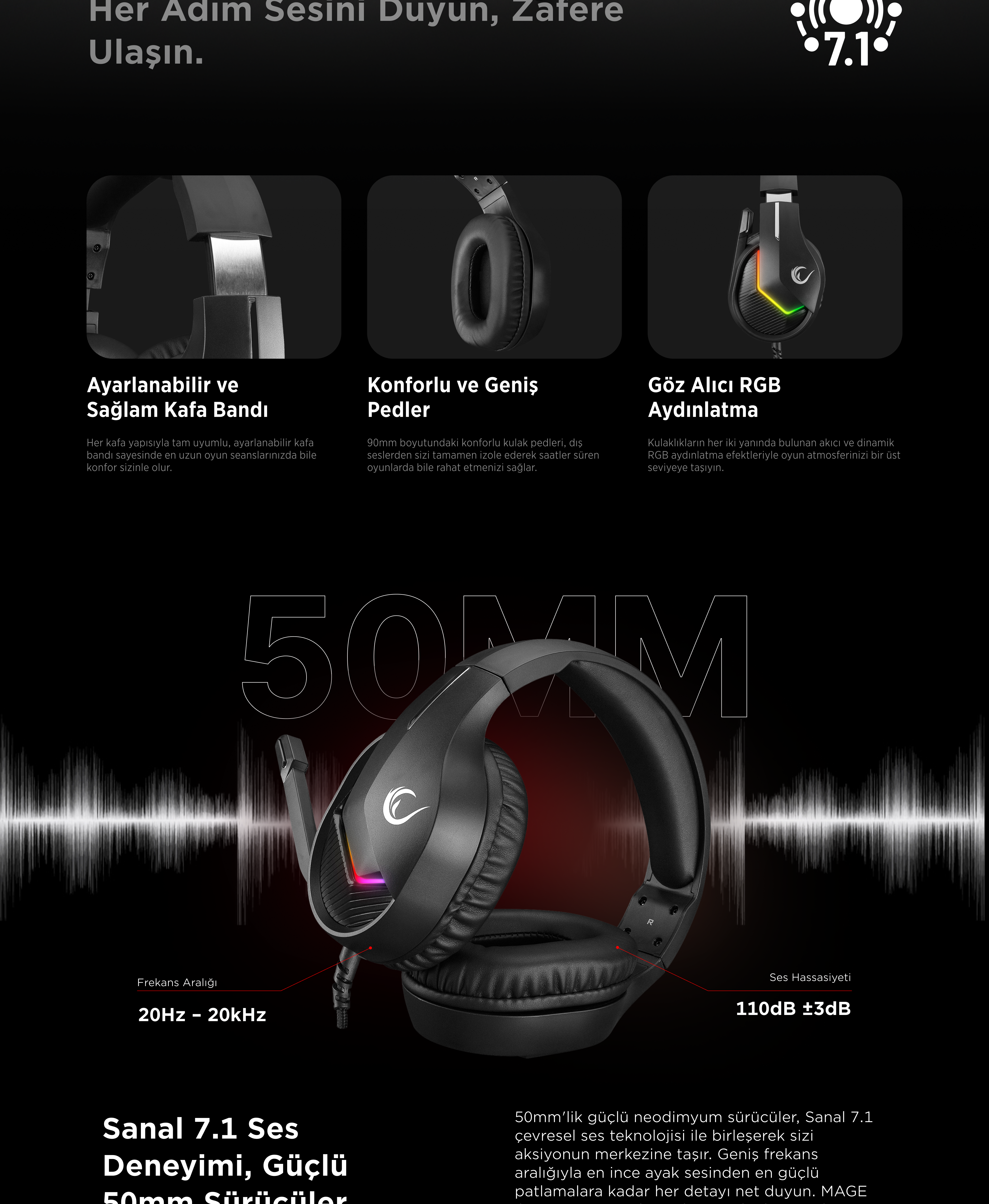 Mage RGB 7.1 Oyuncu Kulaklığı-Siyah
