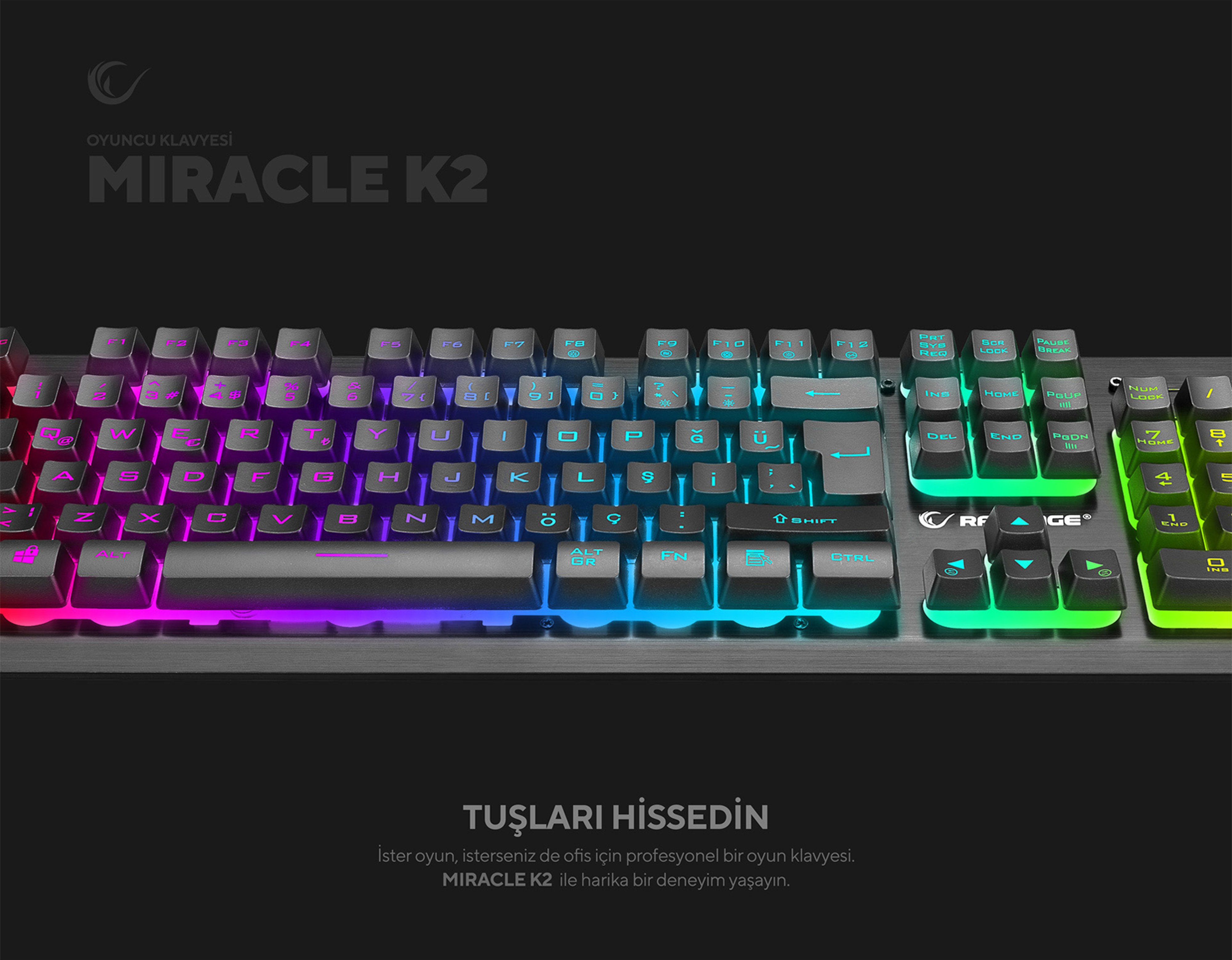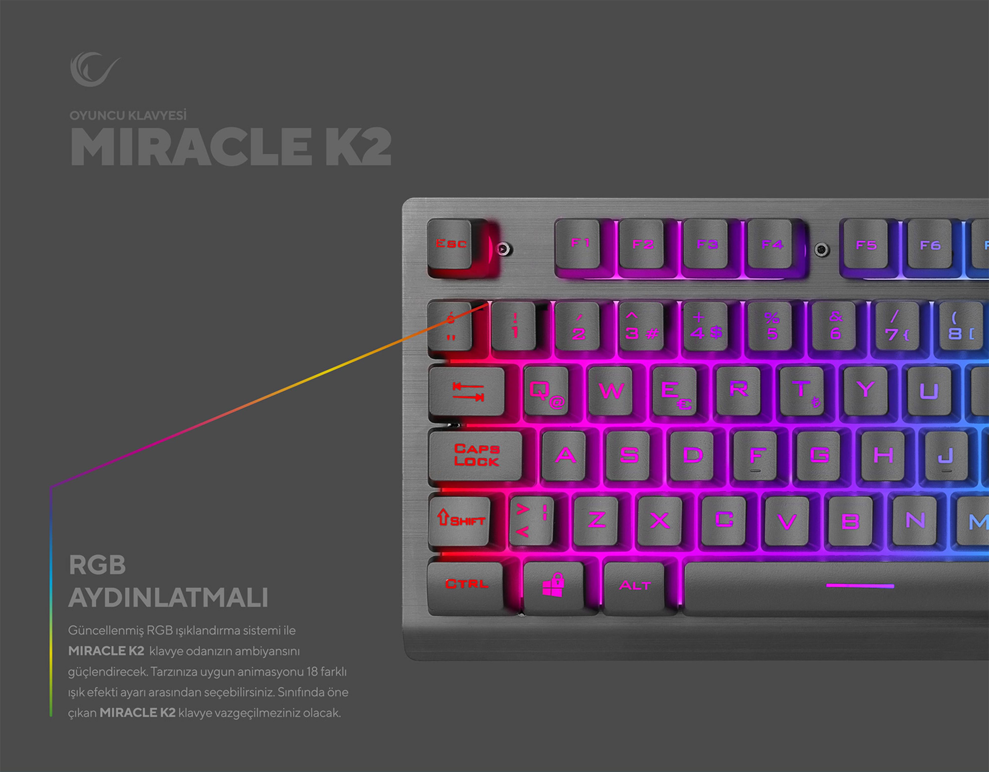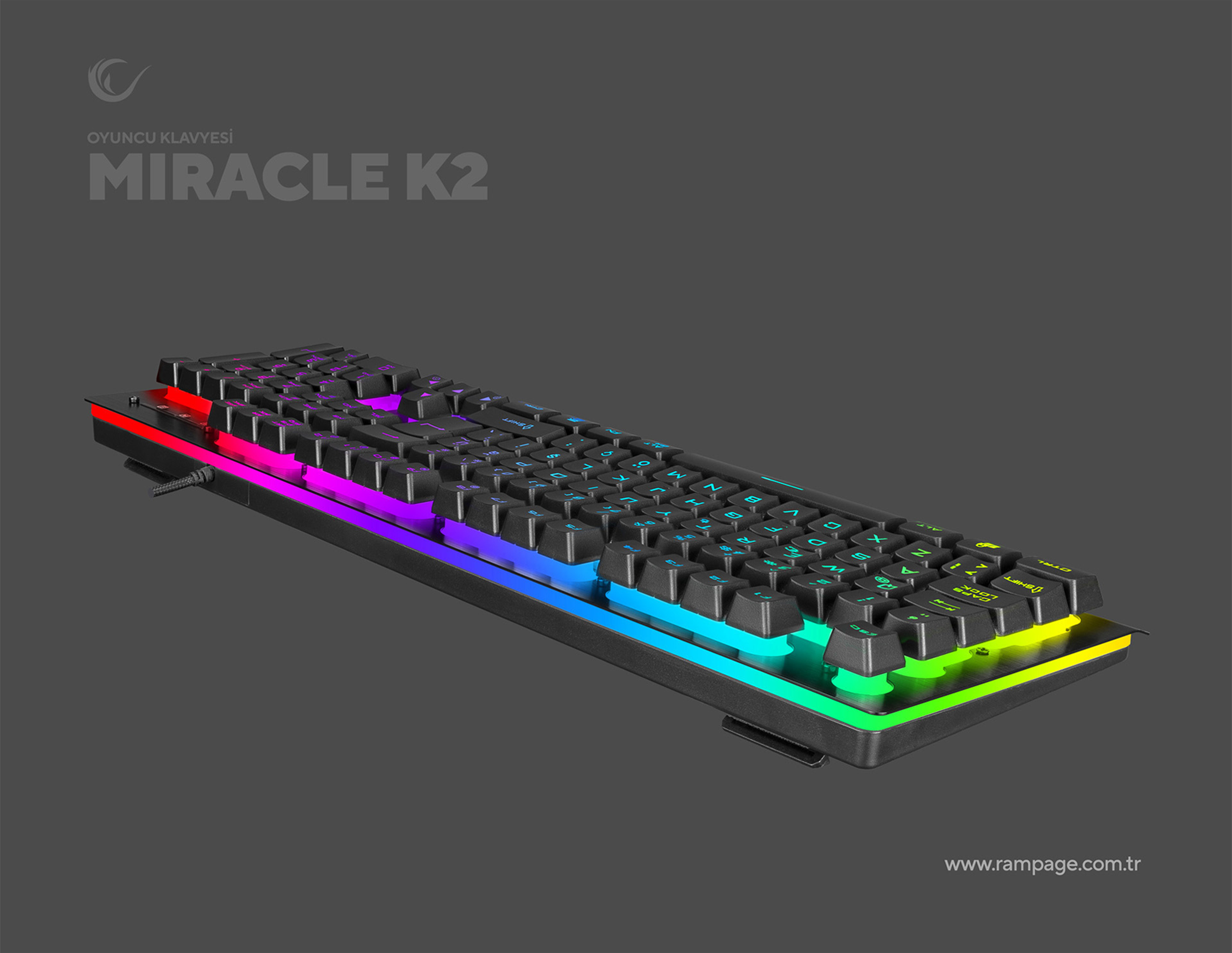 Miracle K2 RGB Mebrane Oyuncu Klavyesi-Siyah