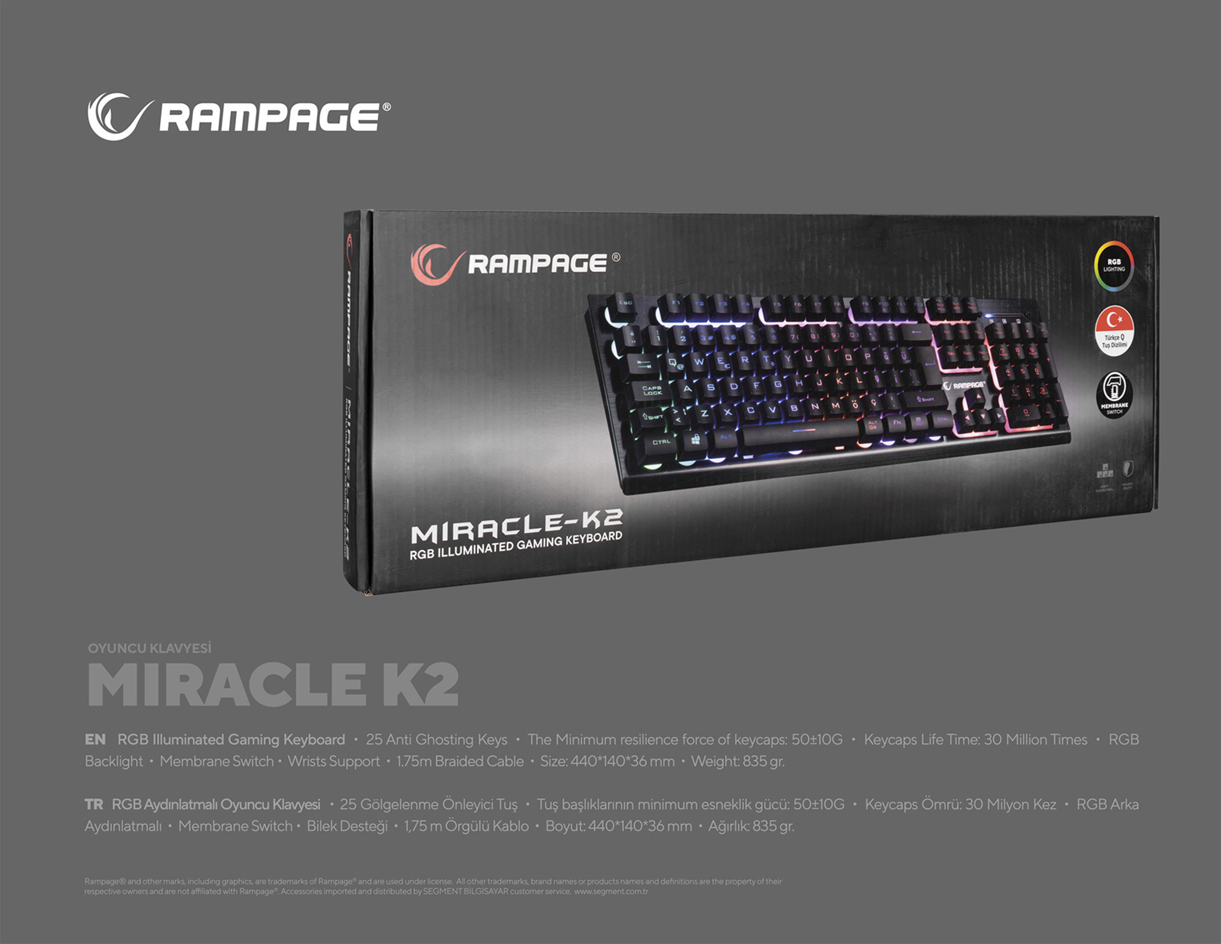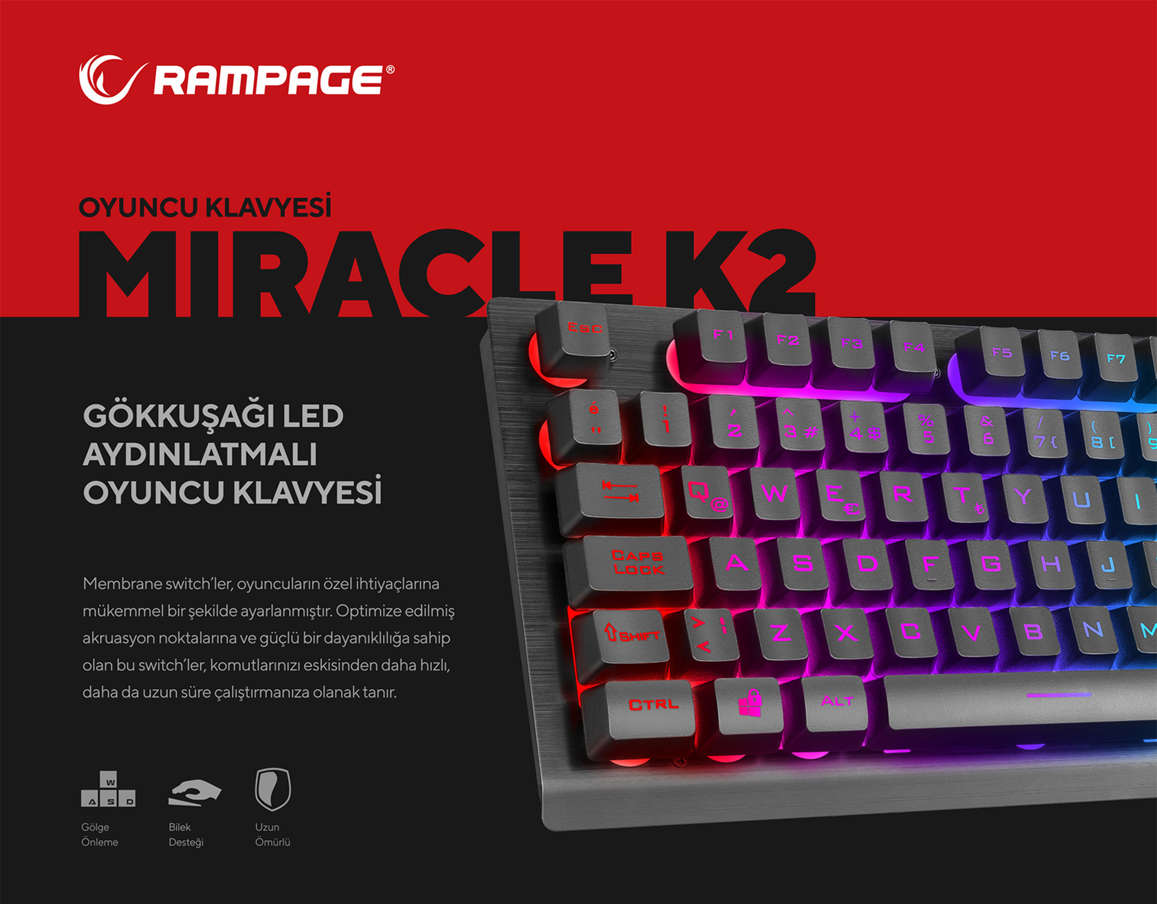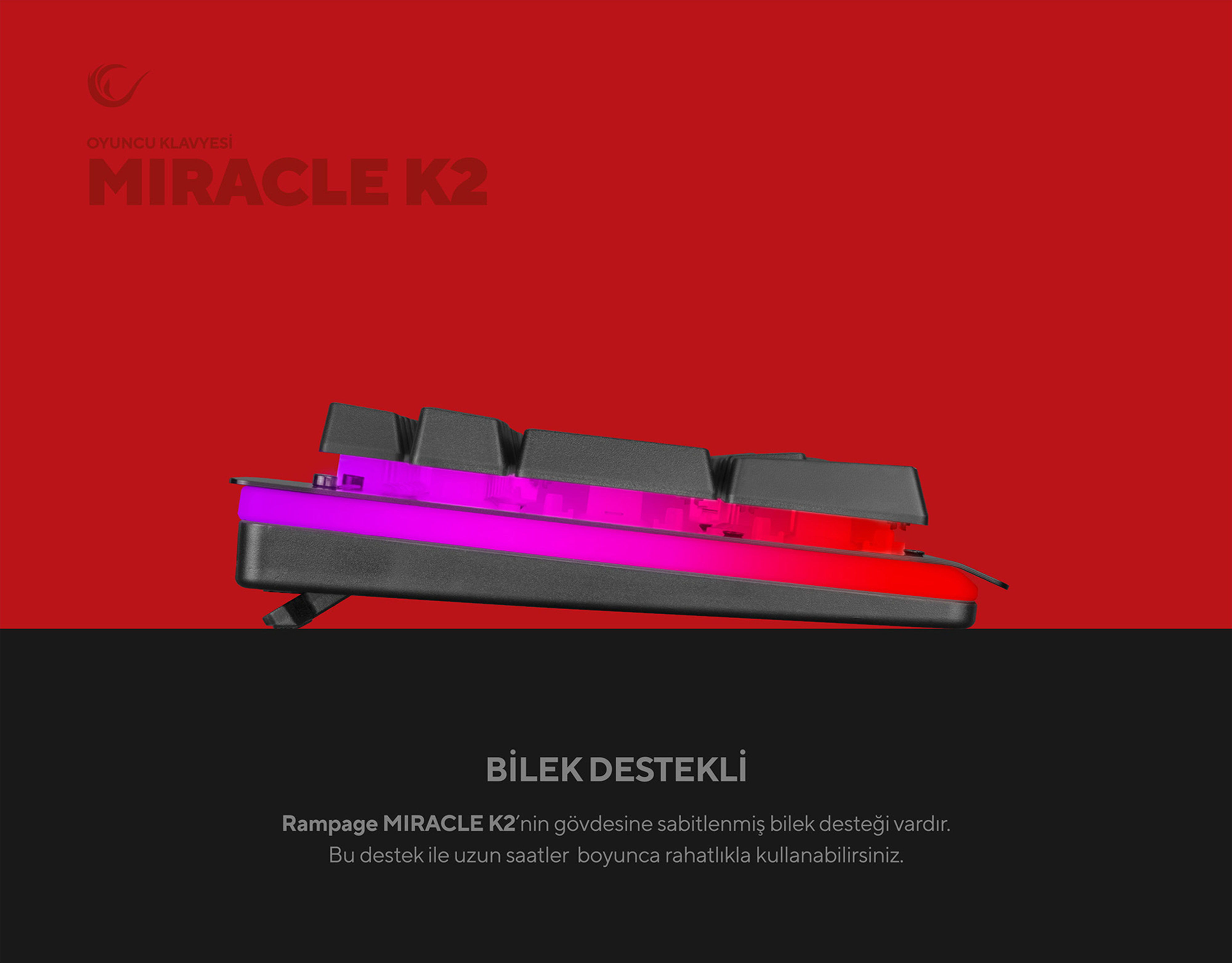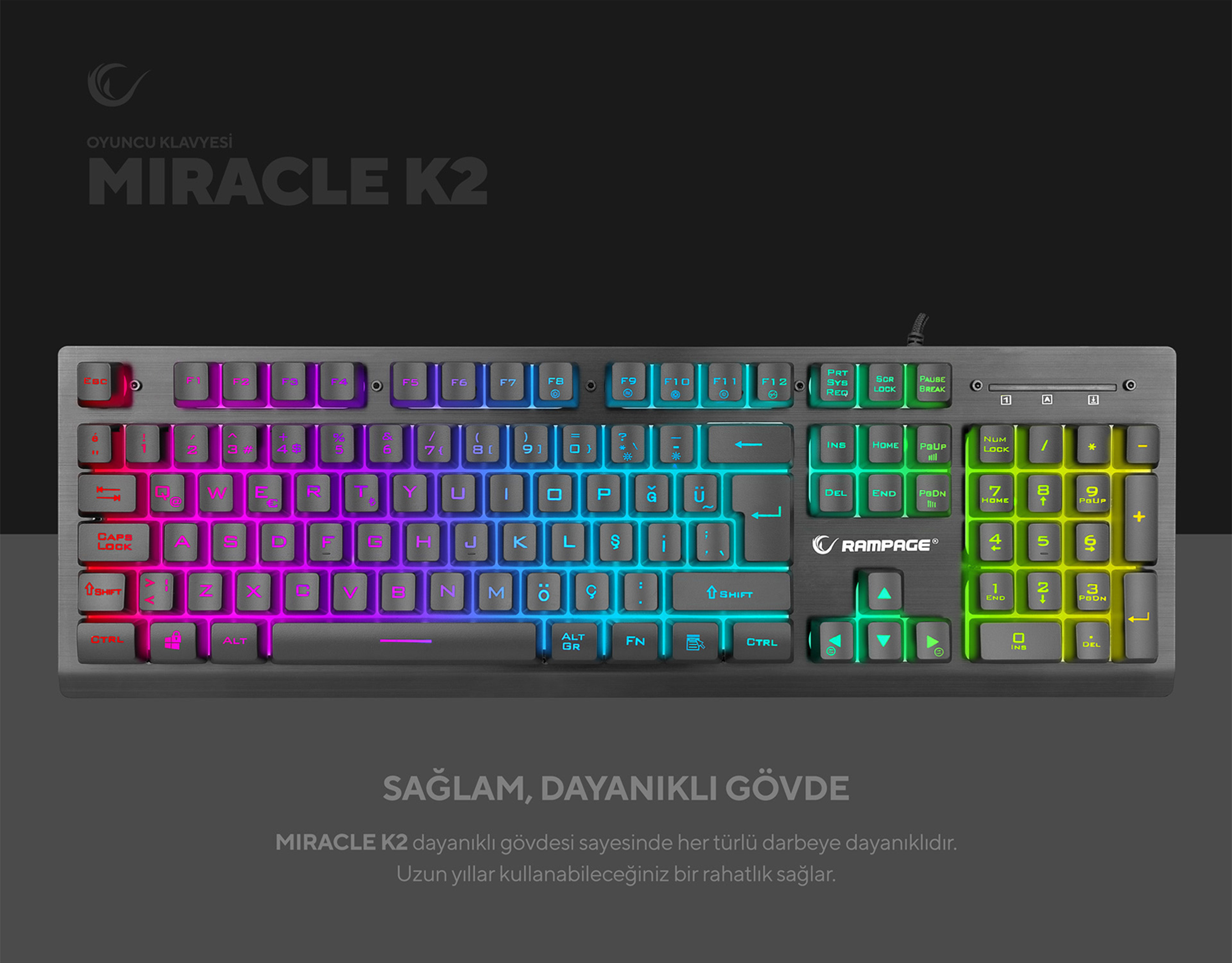 Miracle K2 RGB Mebrane Oyuncu Klavyesi-Siyah