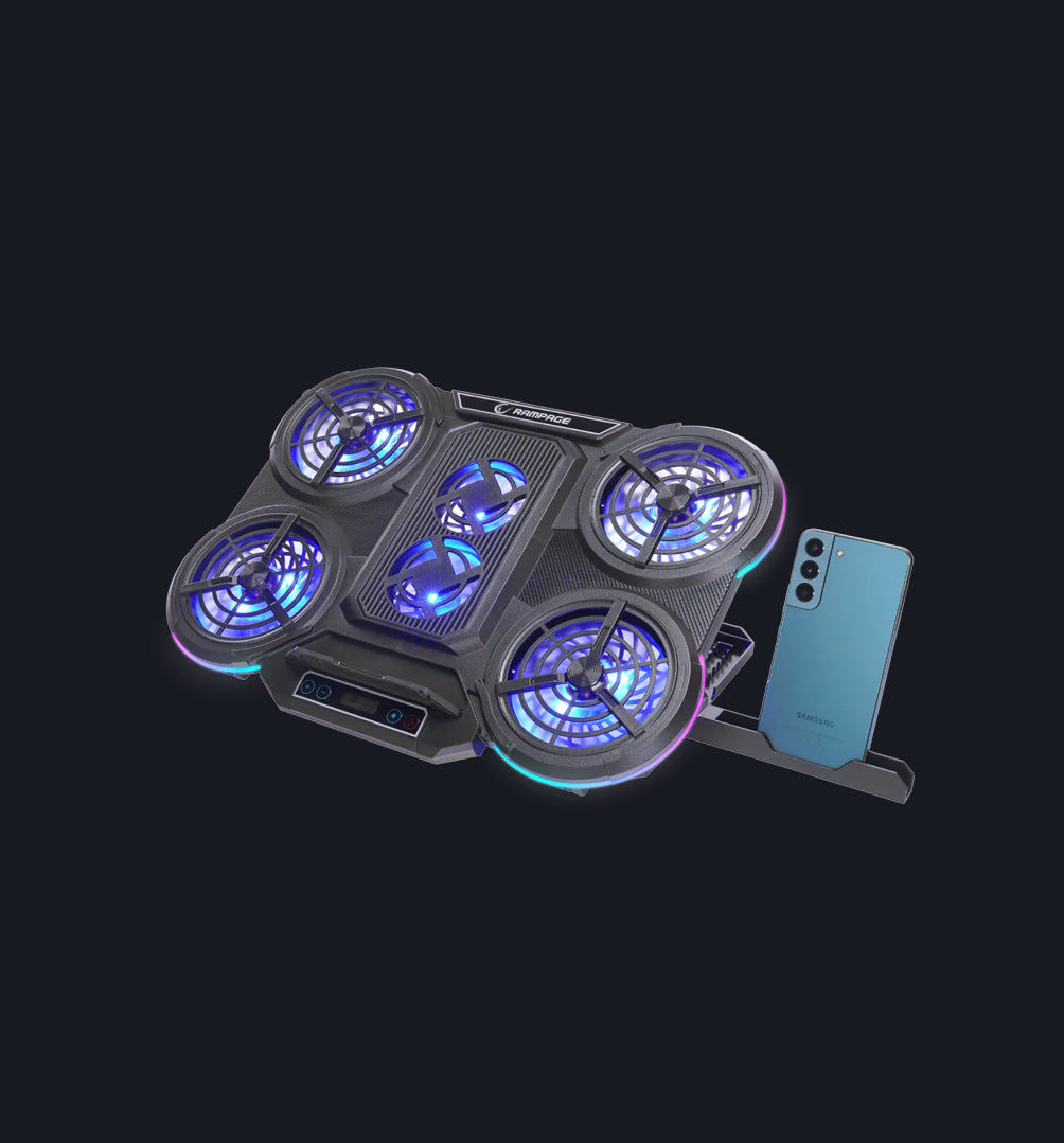 RGB 6 Fanlı Telefon Tutuculu 10-17 inç Notebook Soğutucu Stand