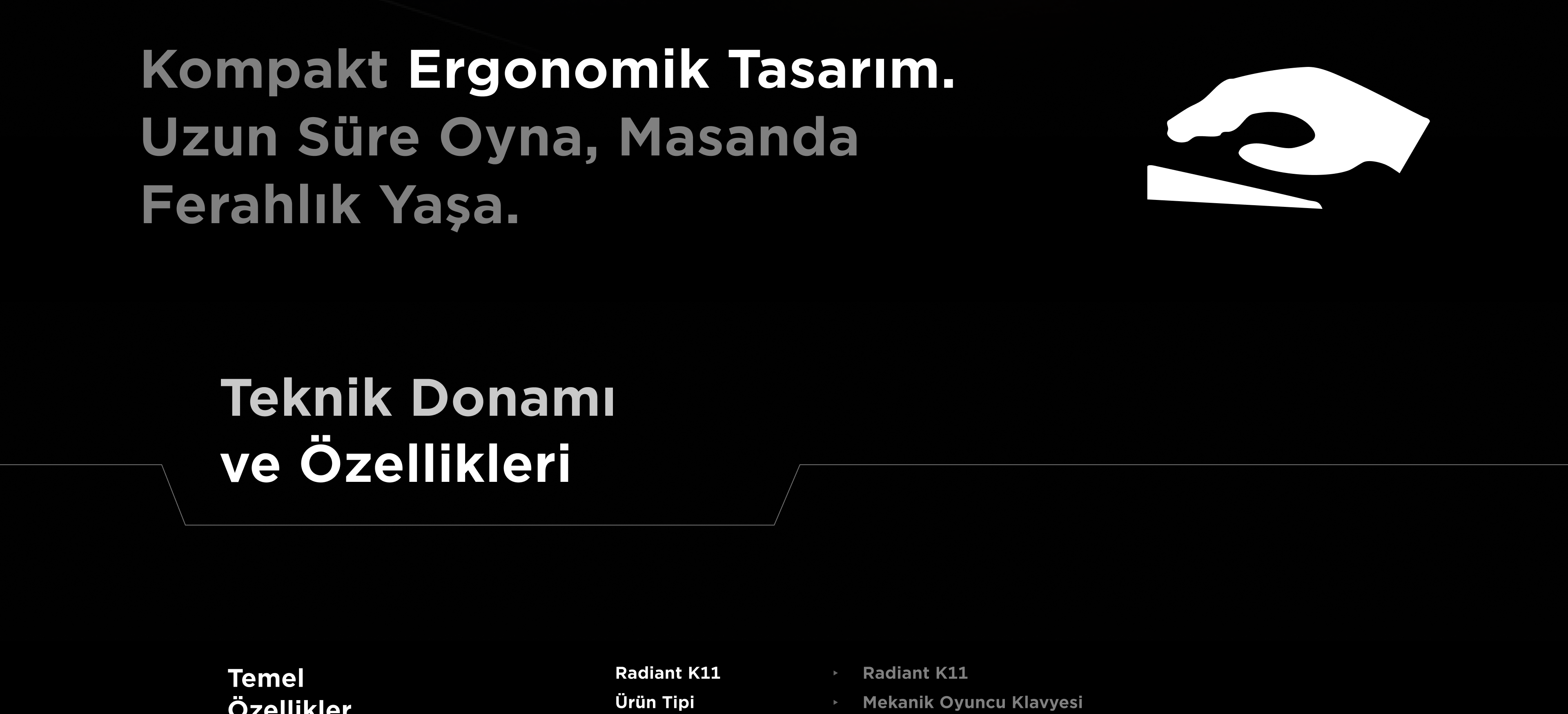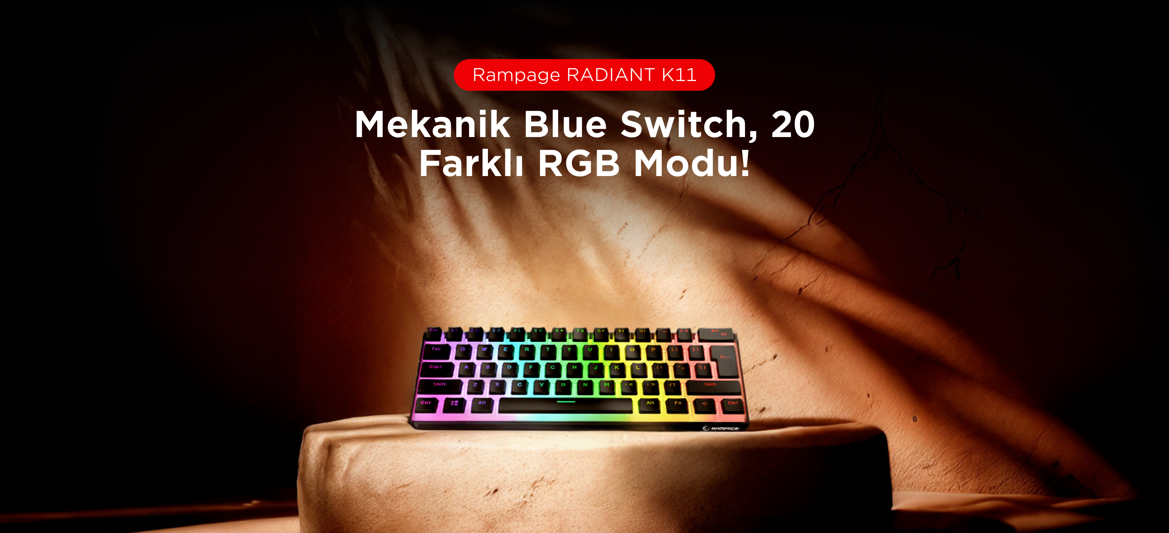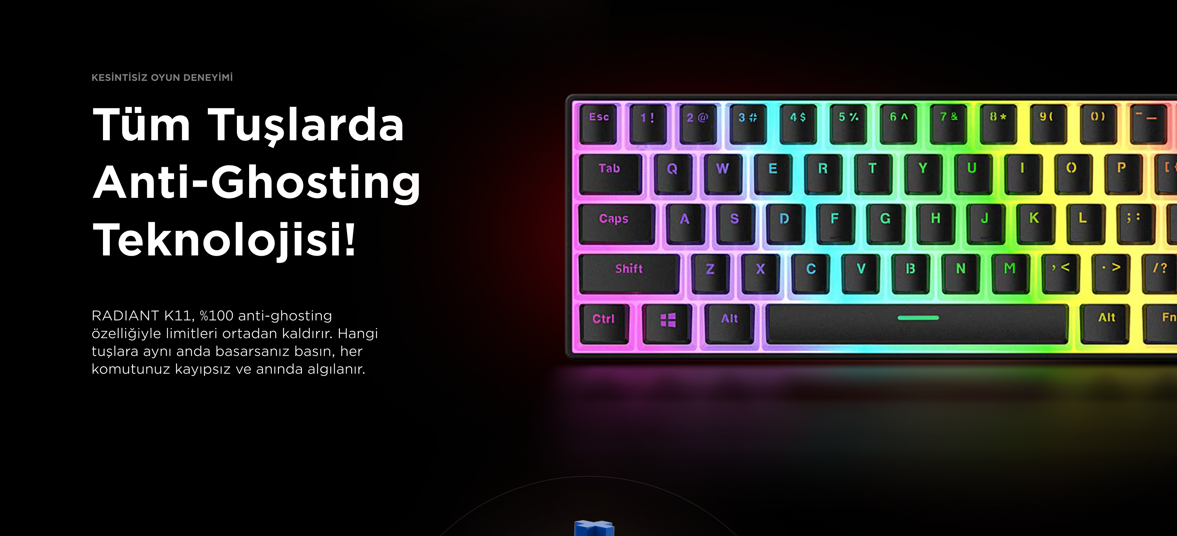 Radiant K11 Type-C / Puding Tuşlu US Layout Blue Switch Gaming Oyuncu Klavye-Siyah