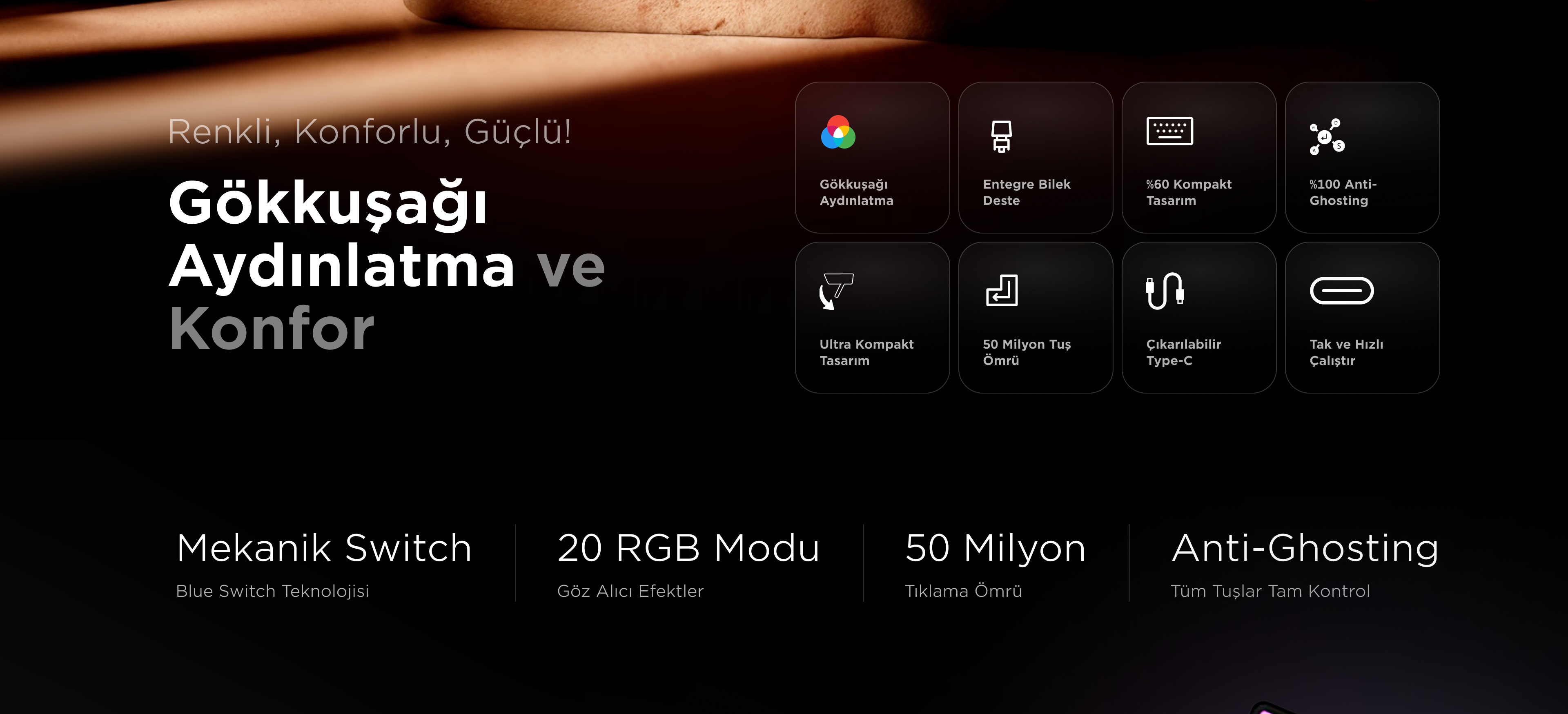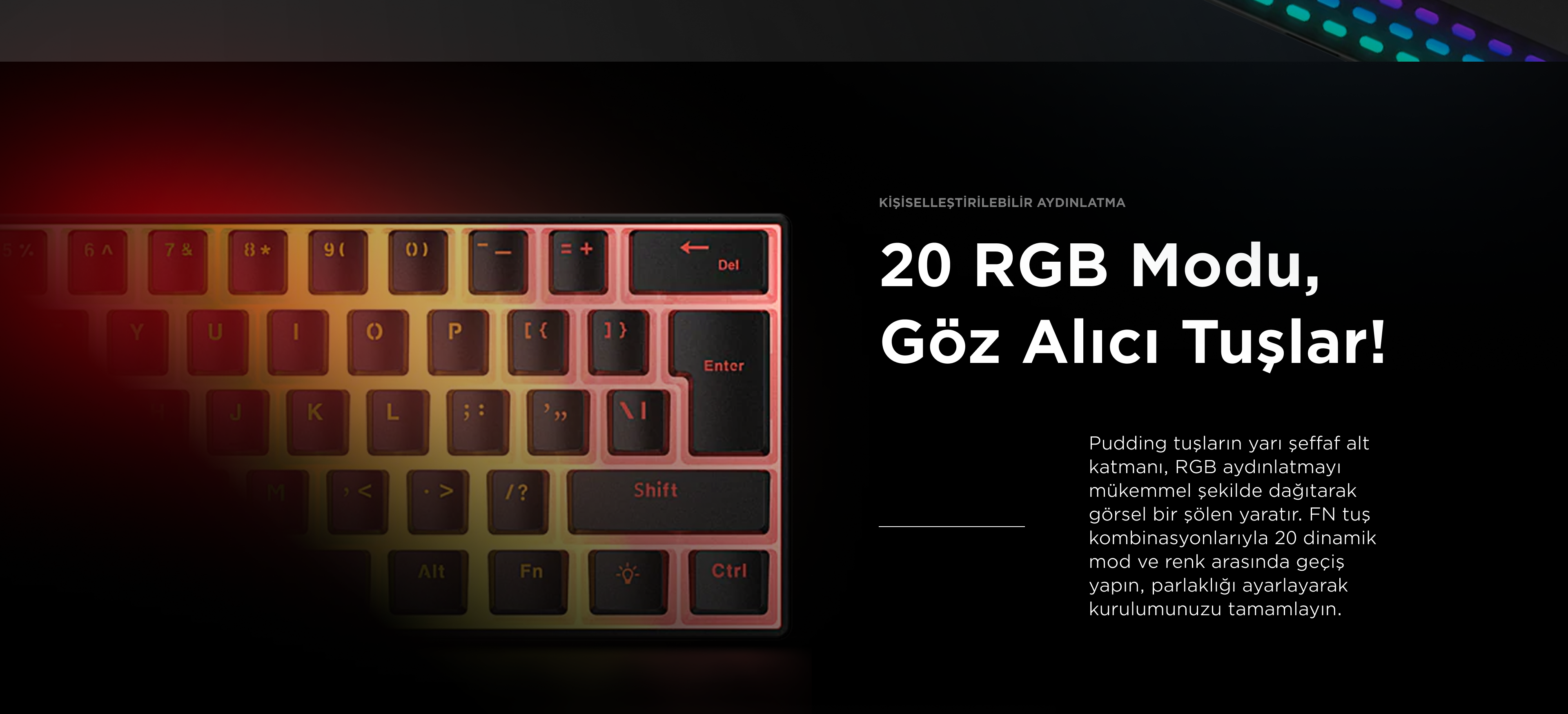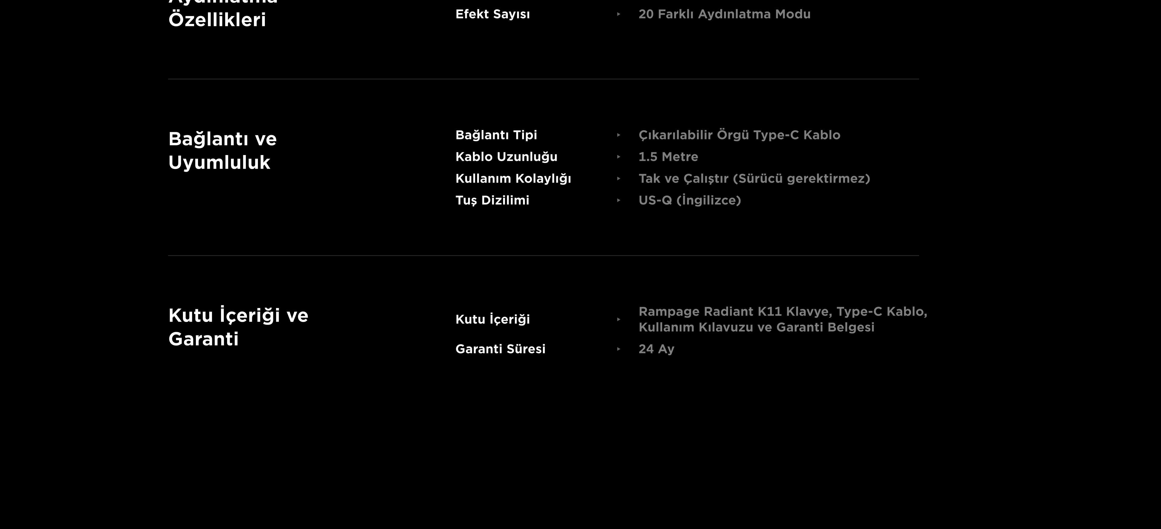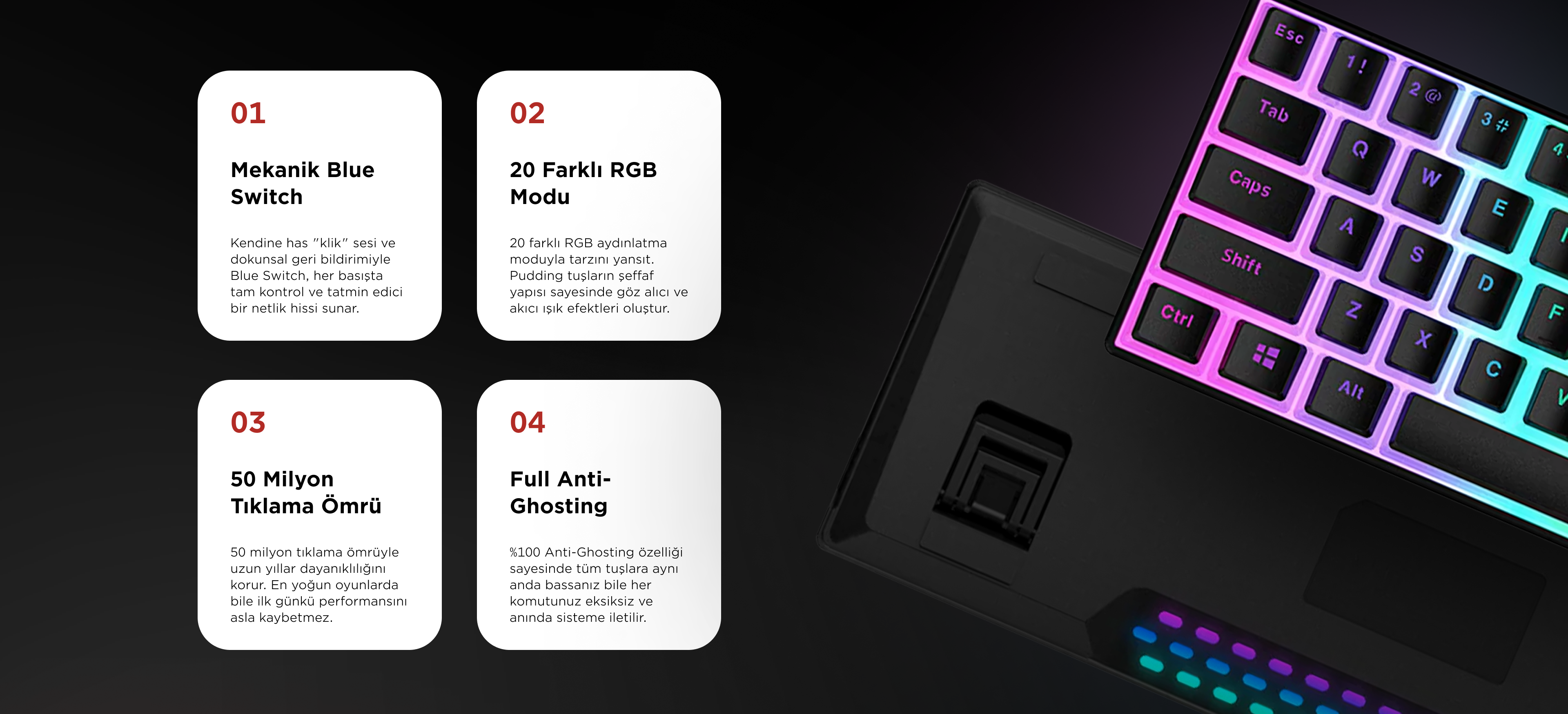 Radiant K11 Type-C / Puding Tuşlu US Layout Blue Switch Gaming Oyuncu Klavye-Siyah