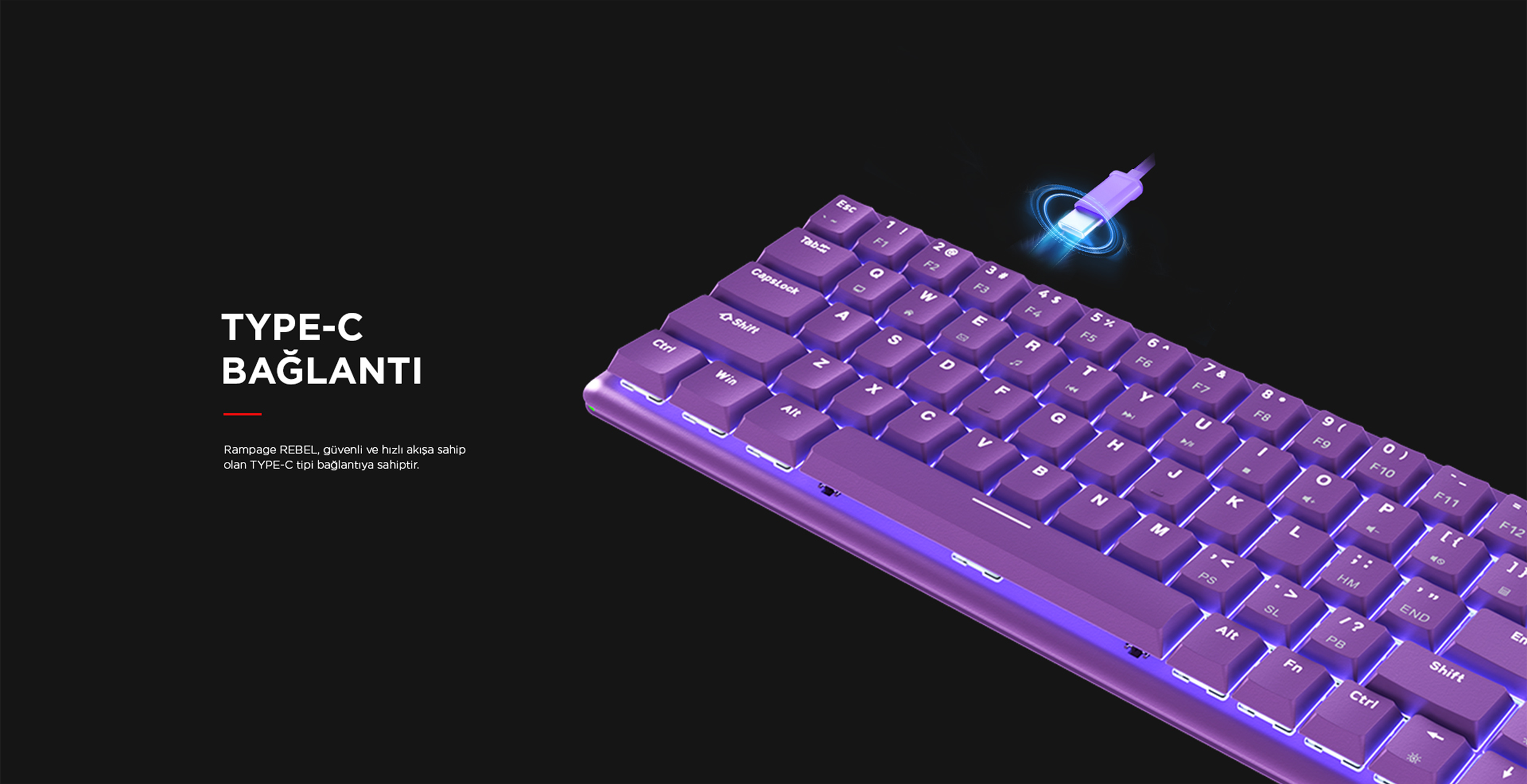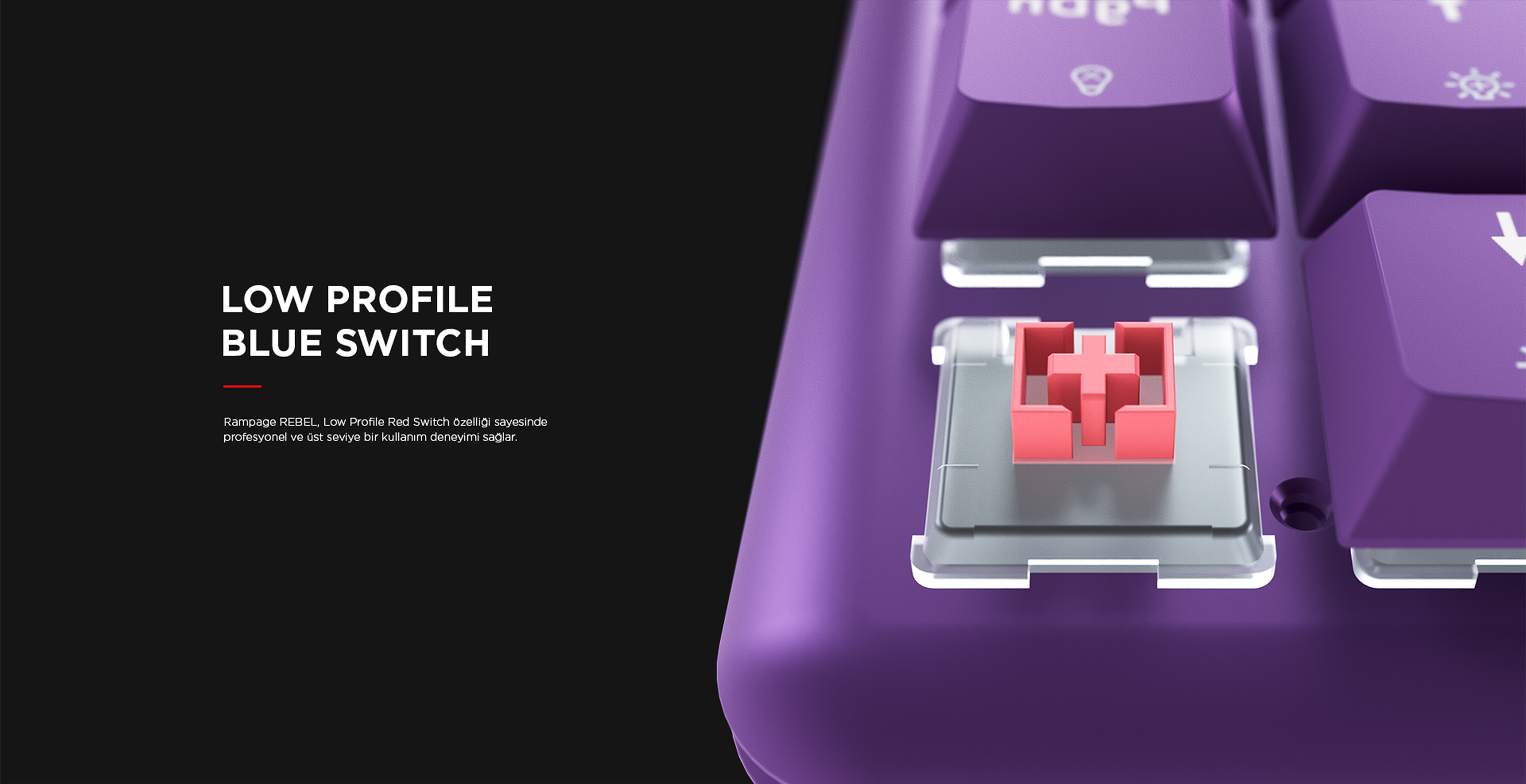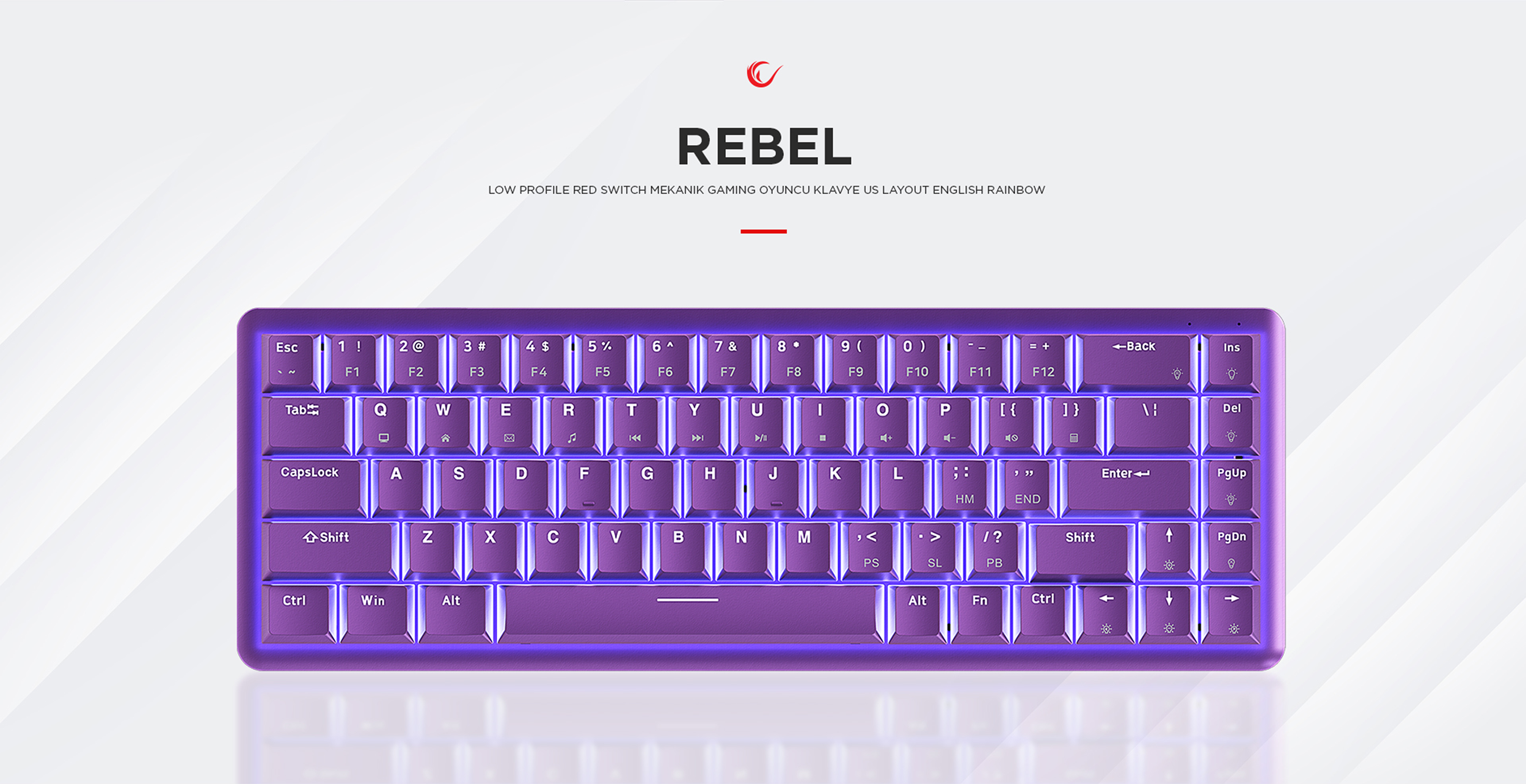 Rebel Low Profile Rainbow US Layout Red Switch Mekanik Oyuncu Klavyesi-Mor