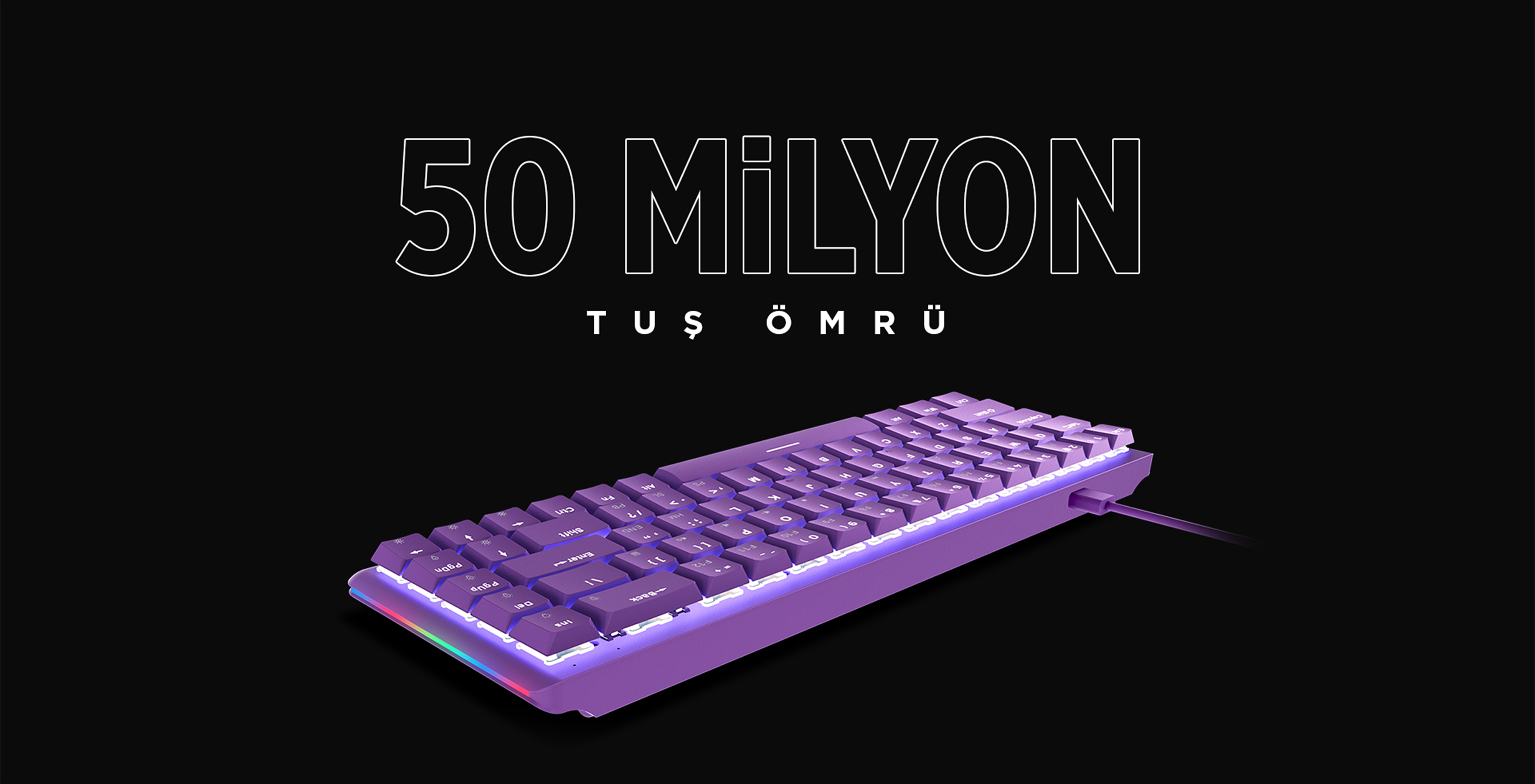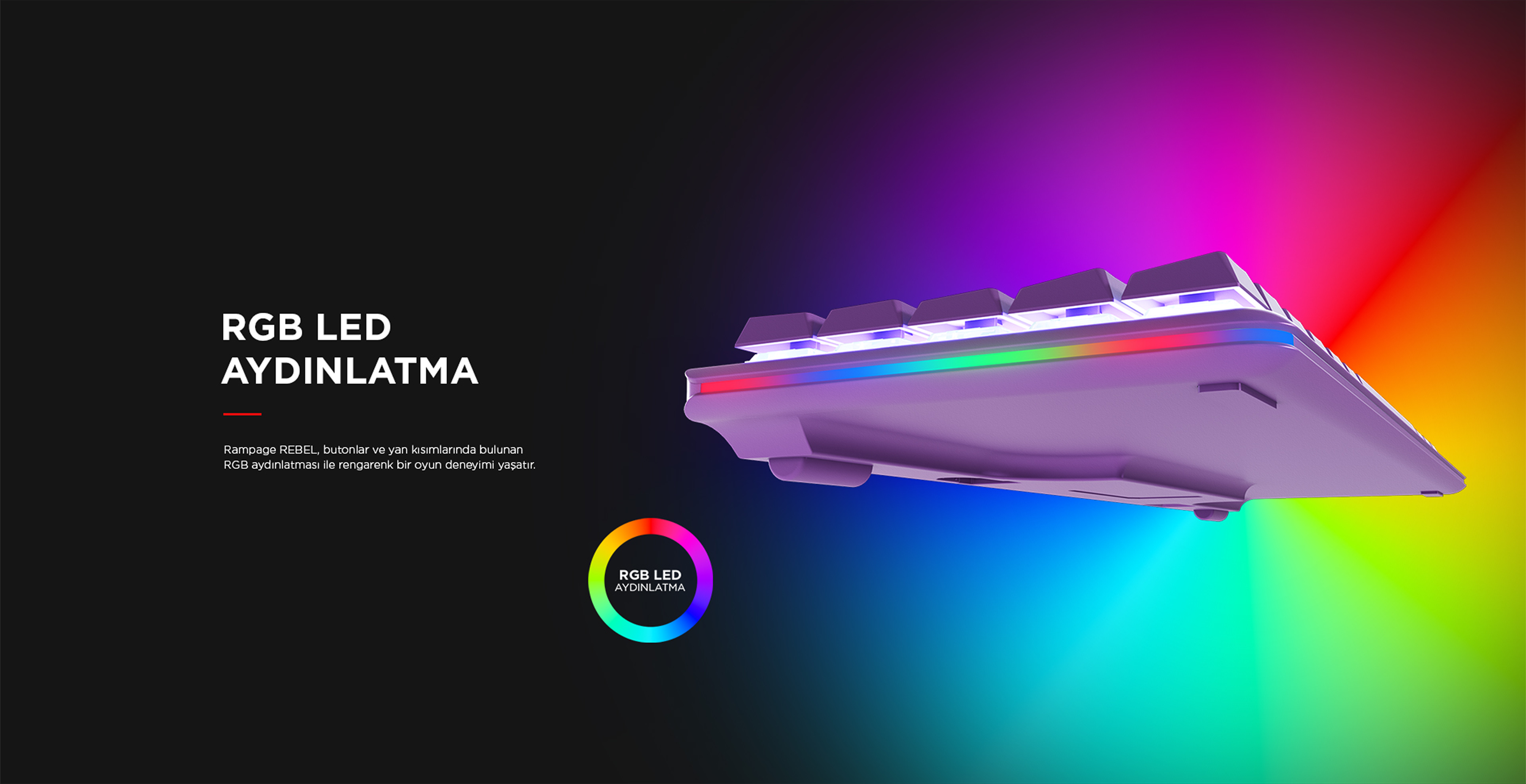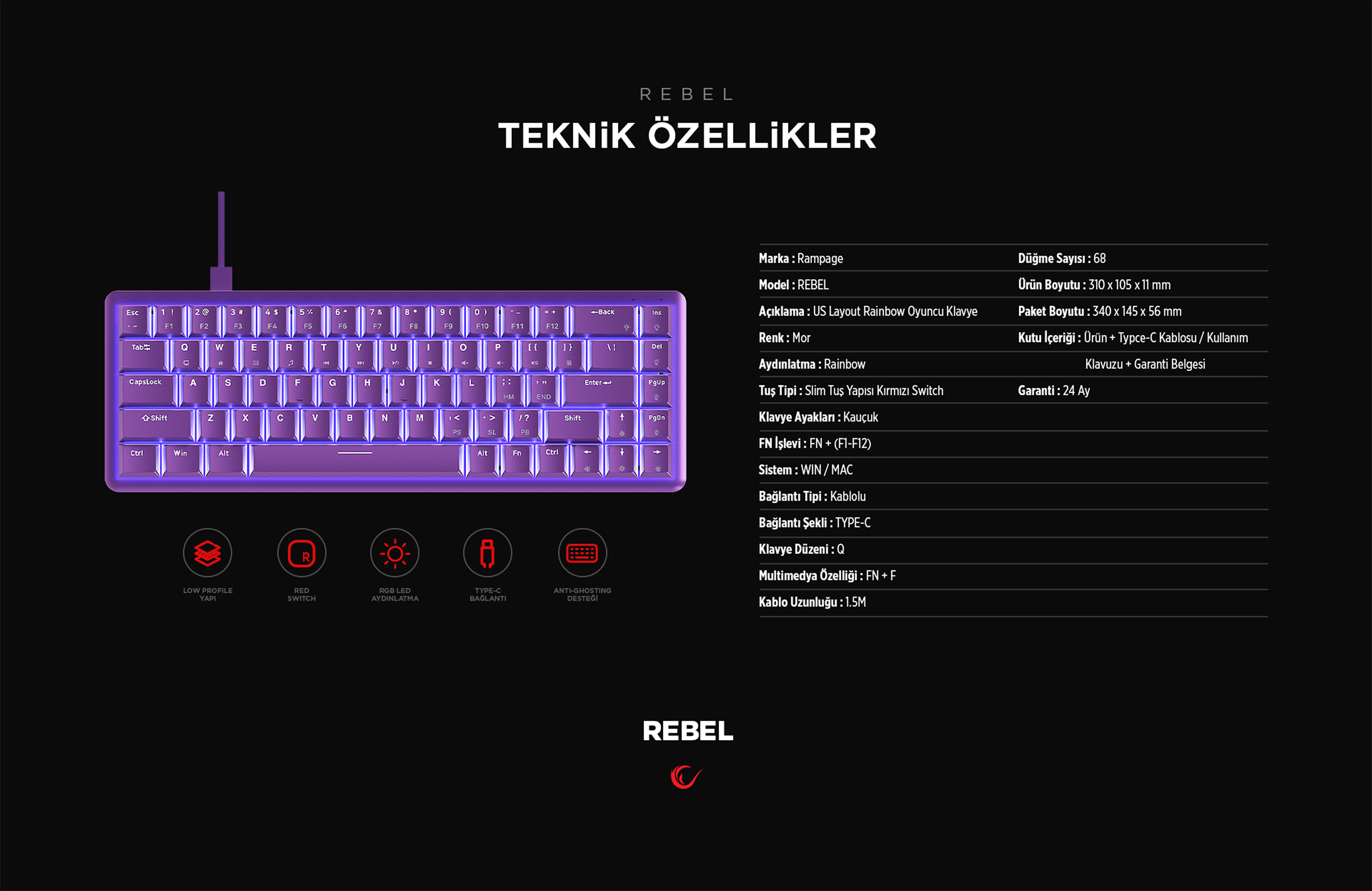 Rebel Low Profile Rainbow US Layout Red Switch Mekanik Oyuncu Klavyesi-Mor