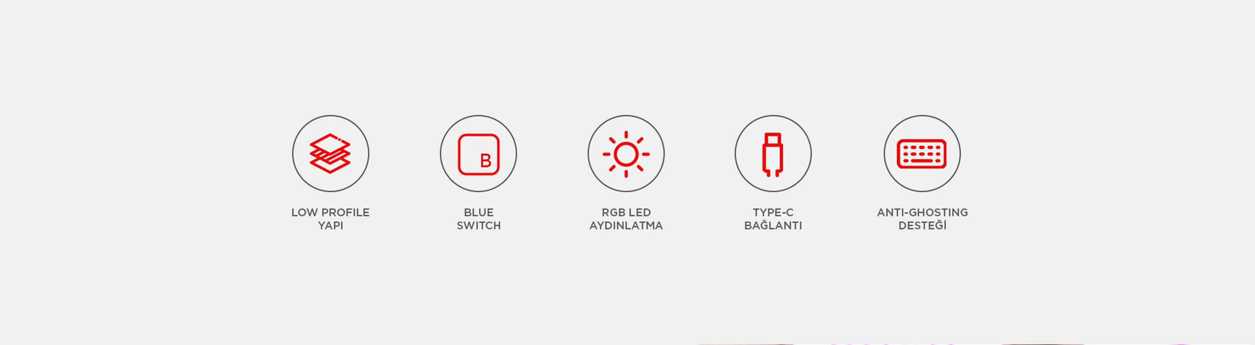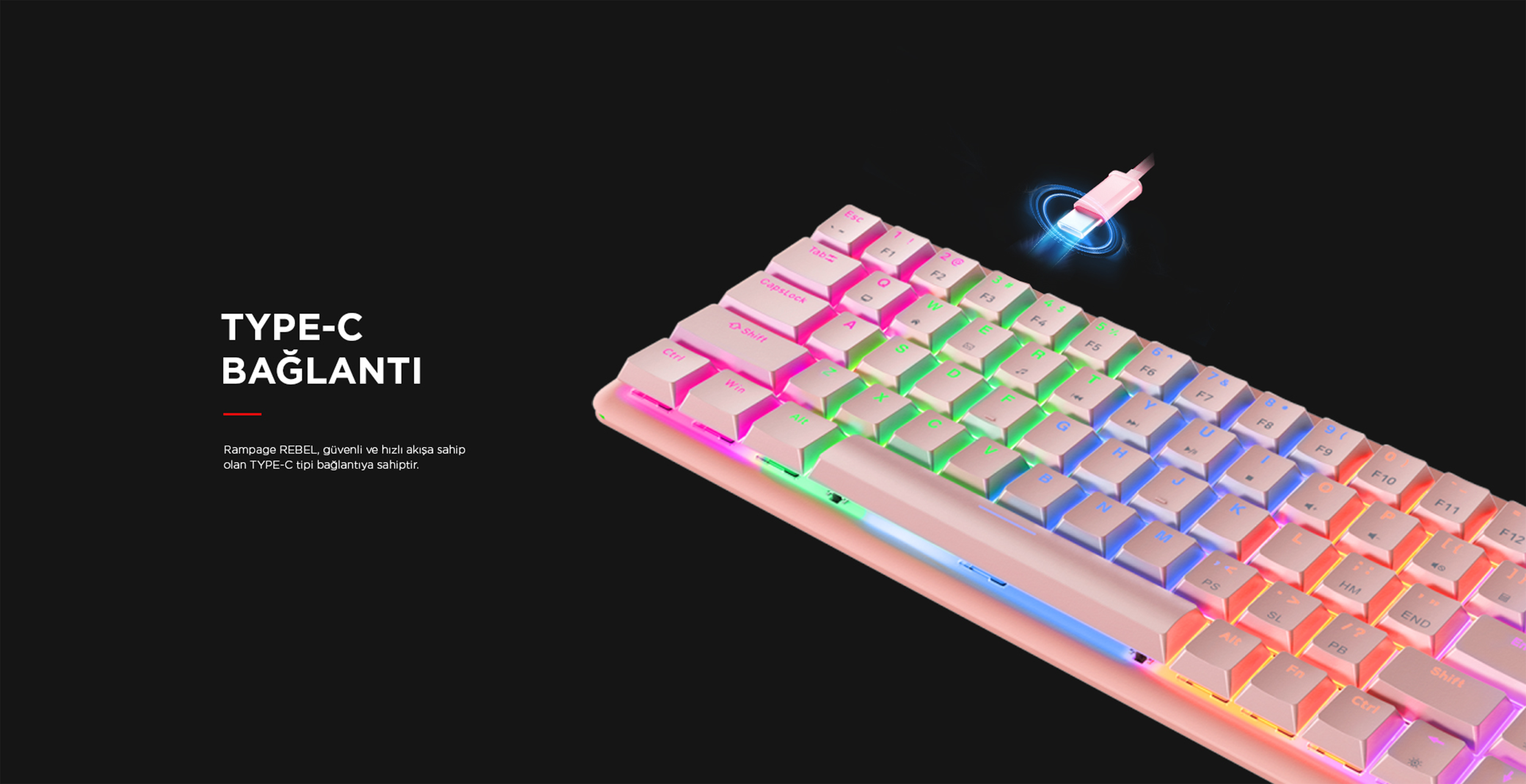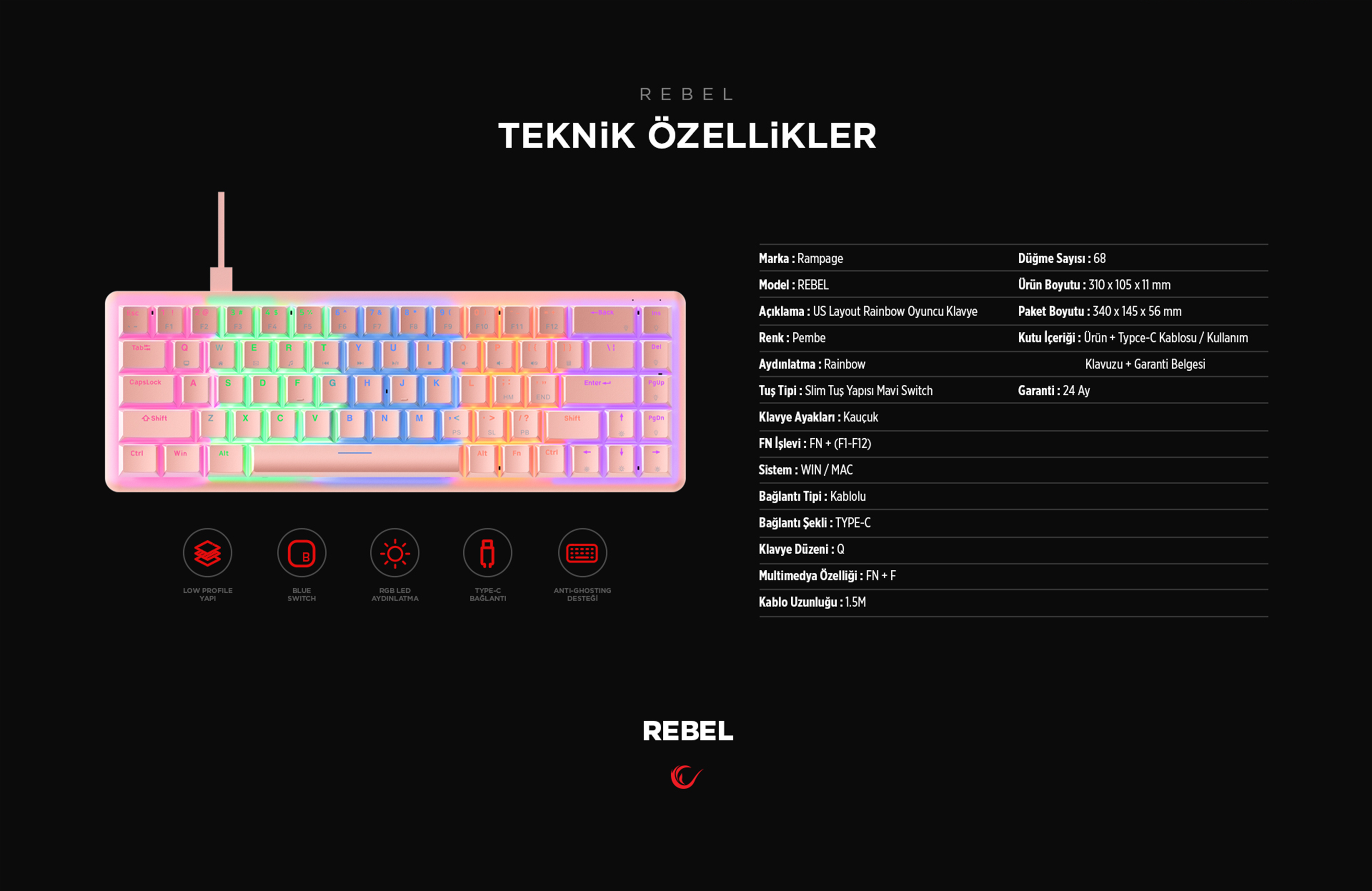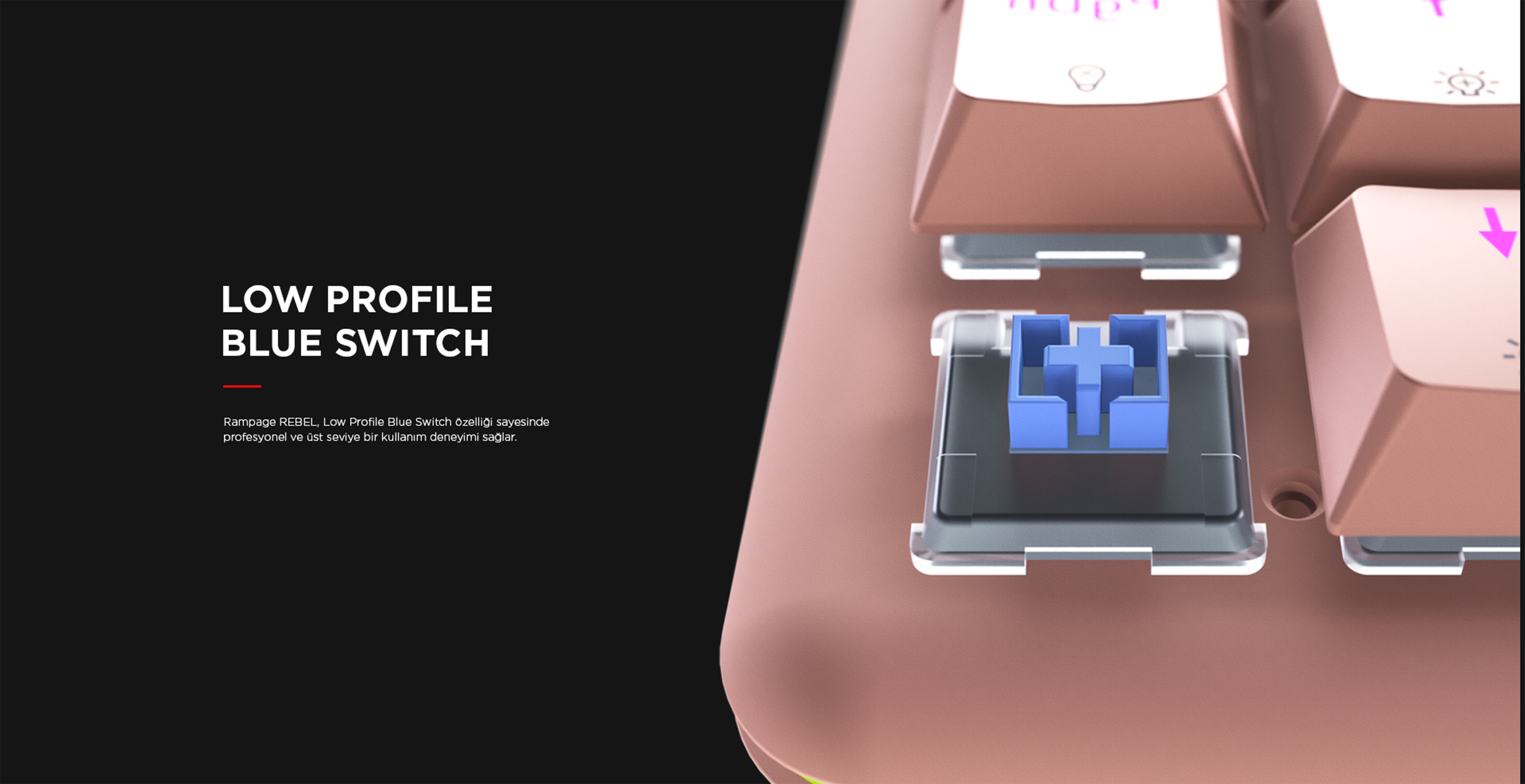 Rebel Low Profile US Layout Rainbow Blue Switch Mekanik Oyuncu Klavyesi-Pembe
