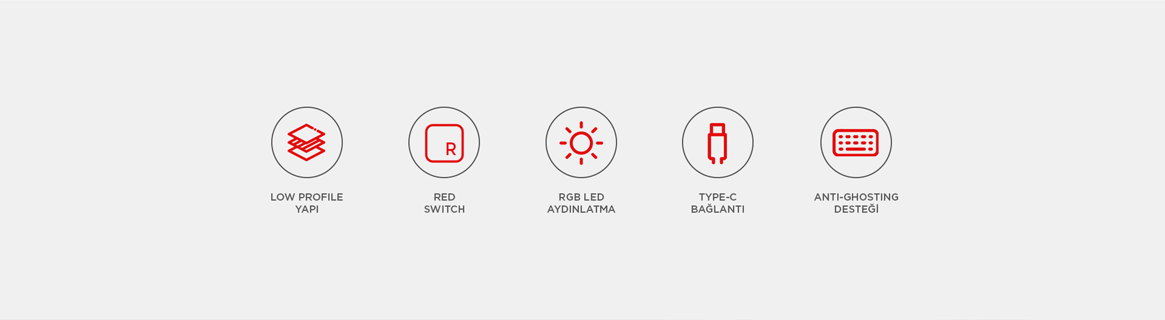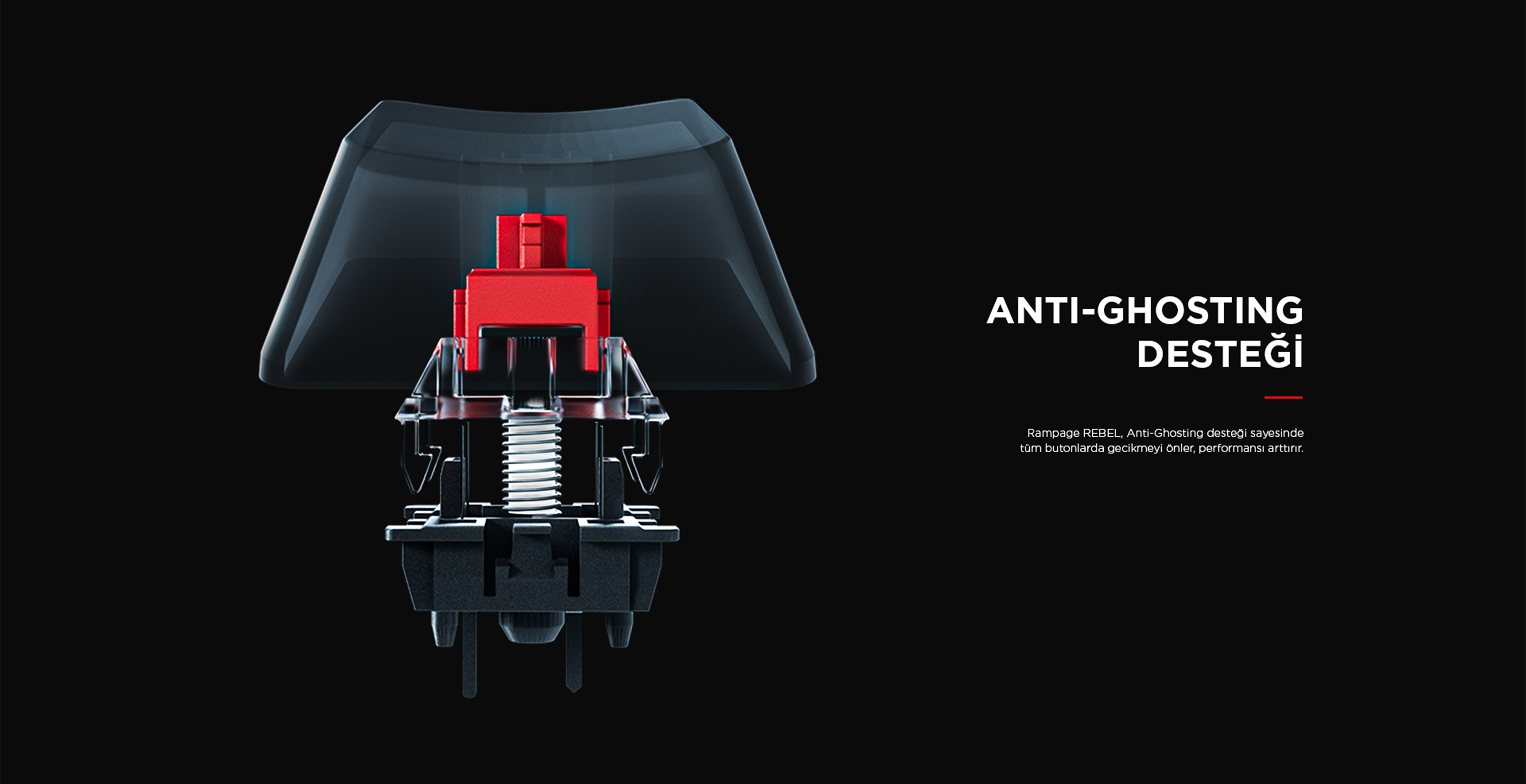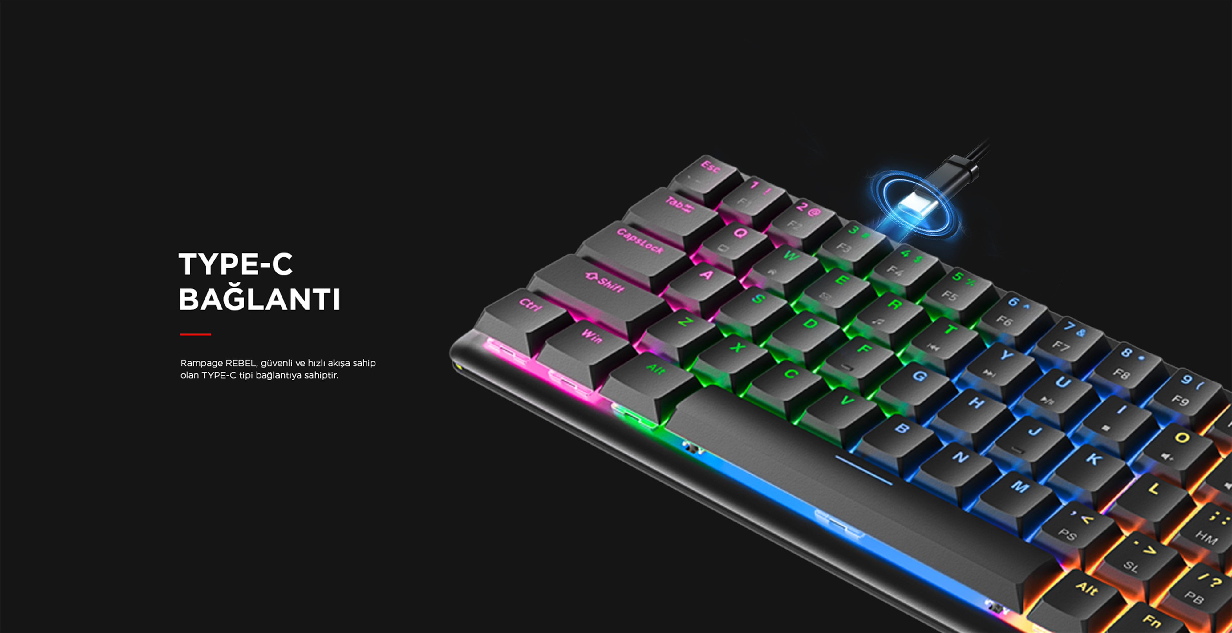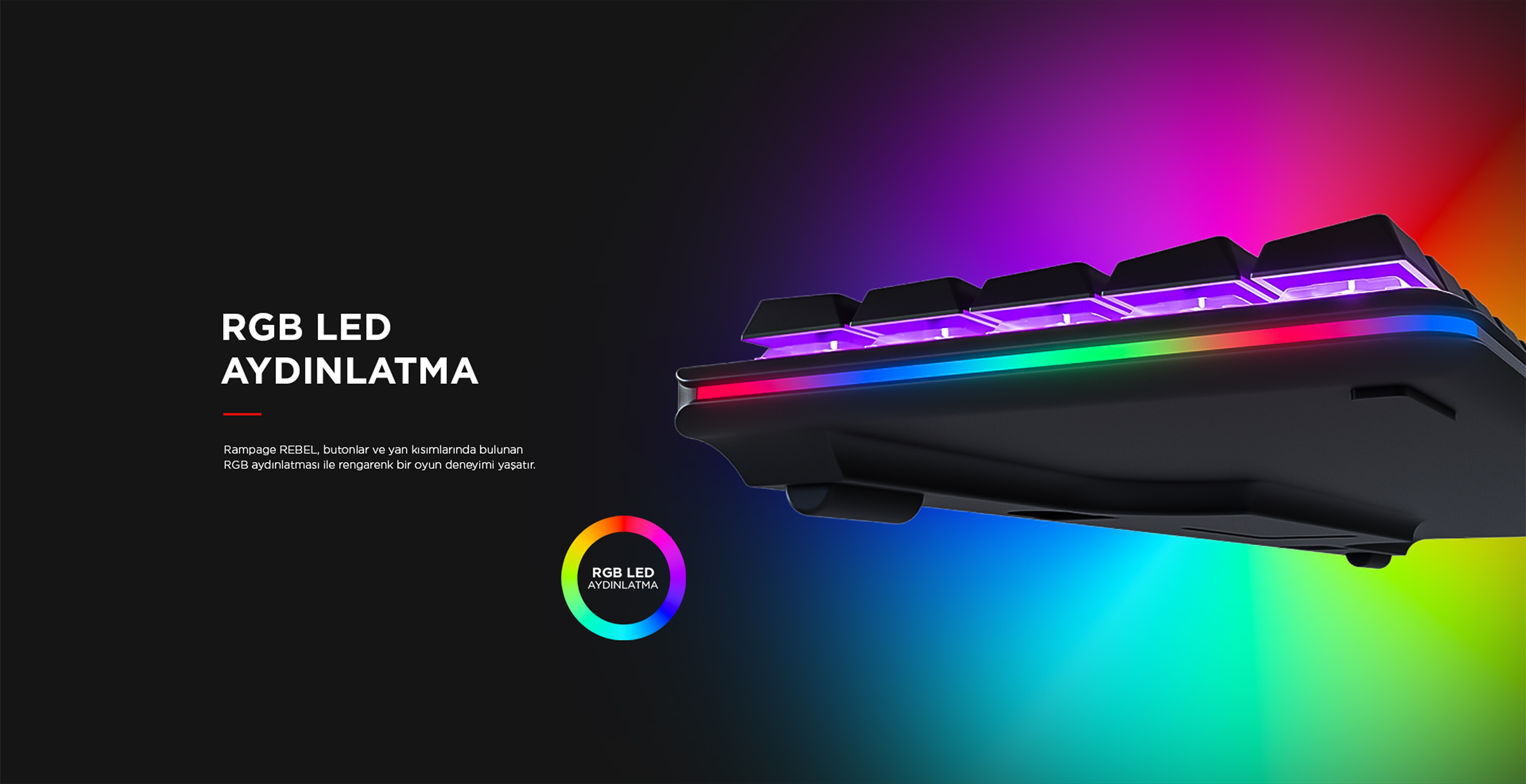 Rebel Low Profile Rainbow US Layout Red Switch Mekanik Oyuncu Klavyesi-Siyah