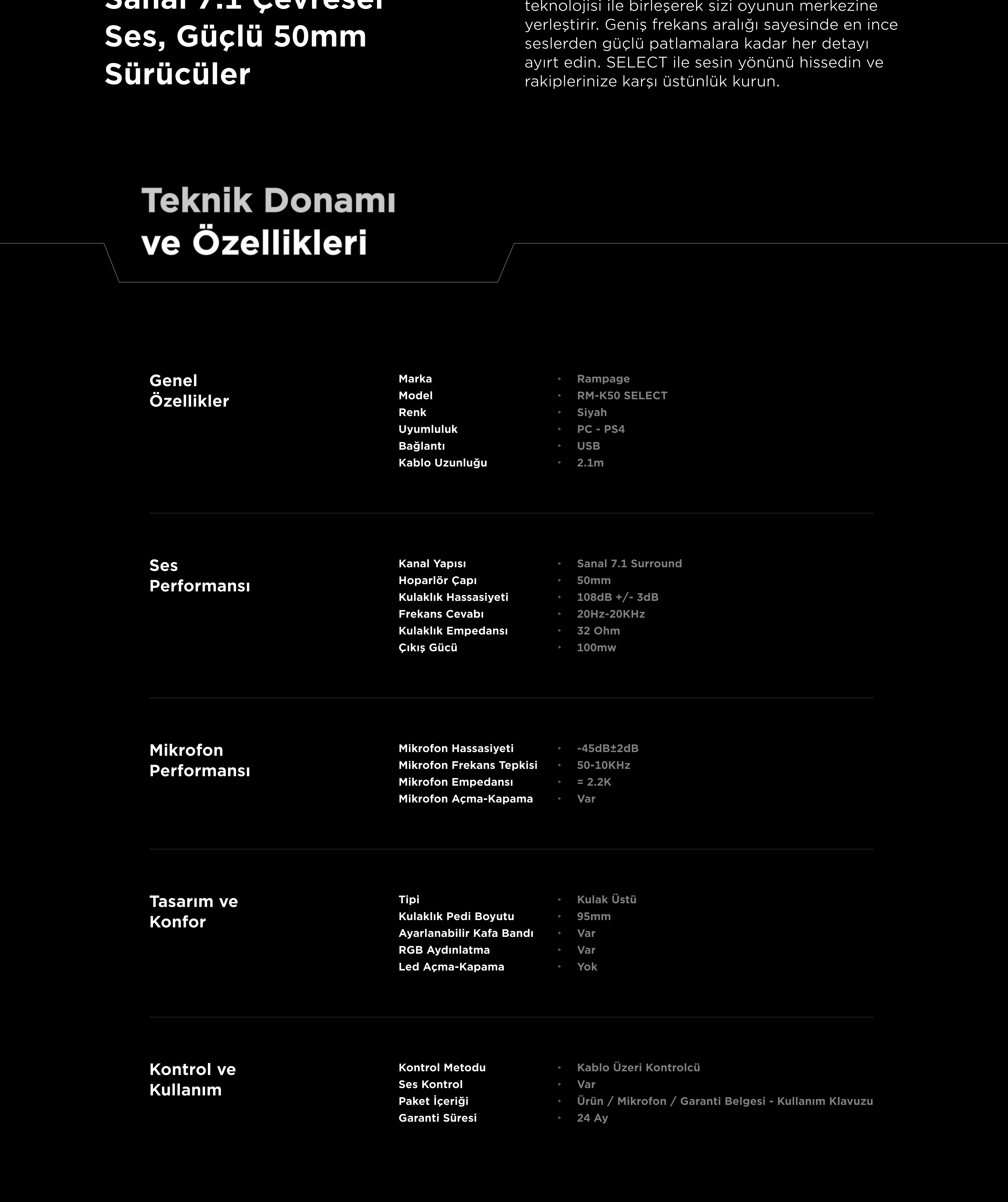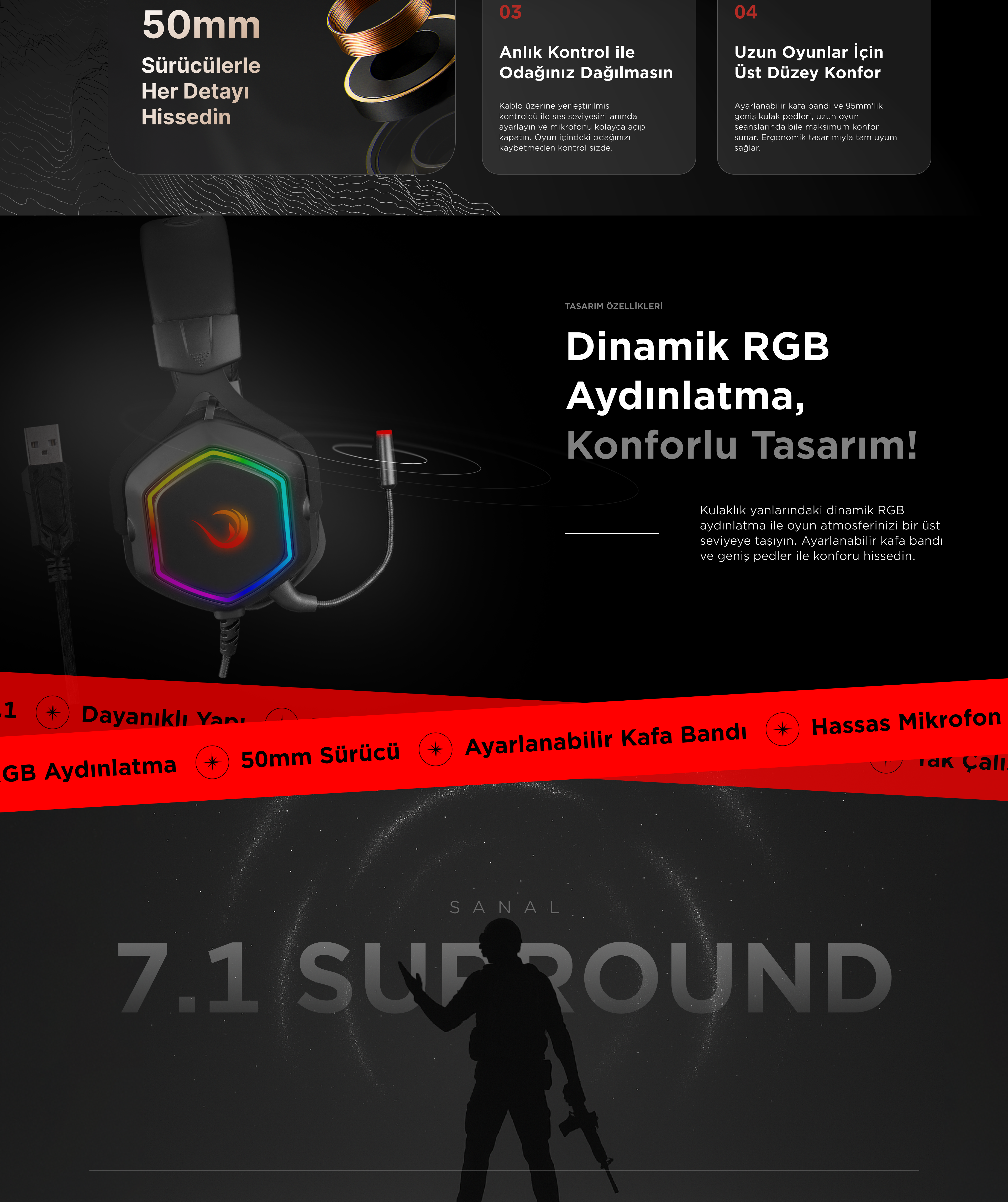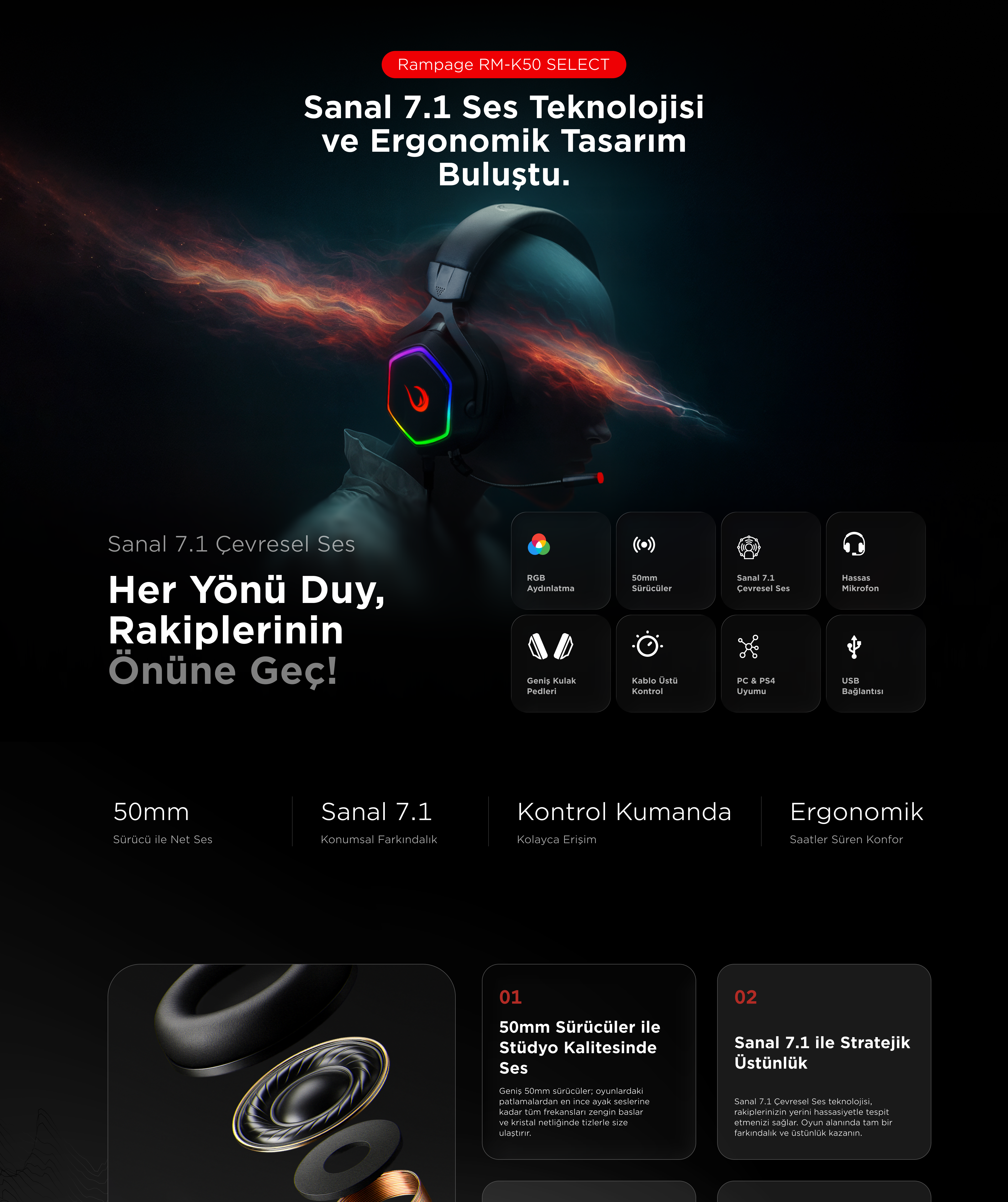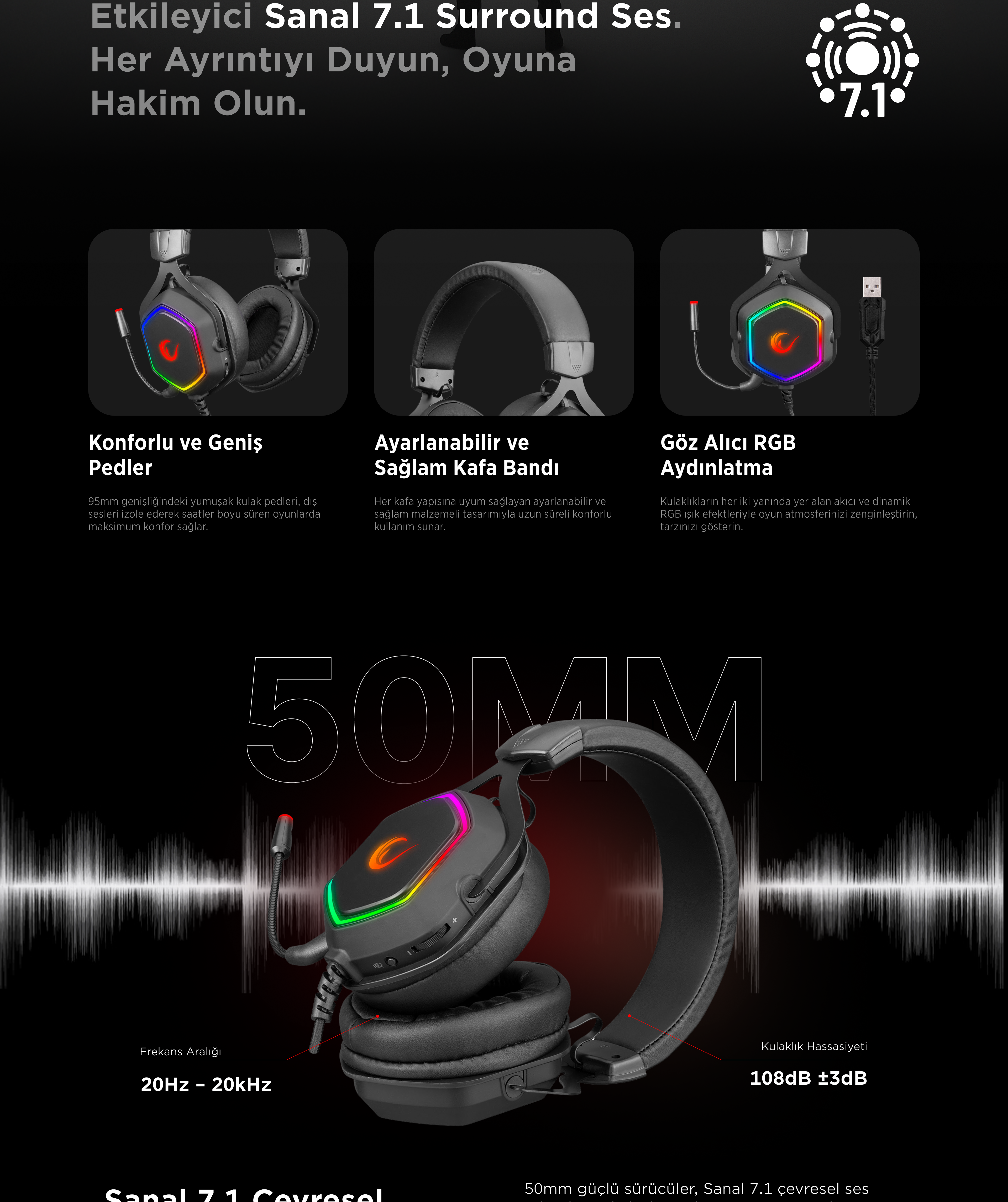 Rm-K50 Select RGB 7.1 Oyuncu Kulaklığı