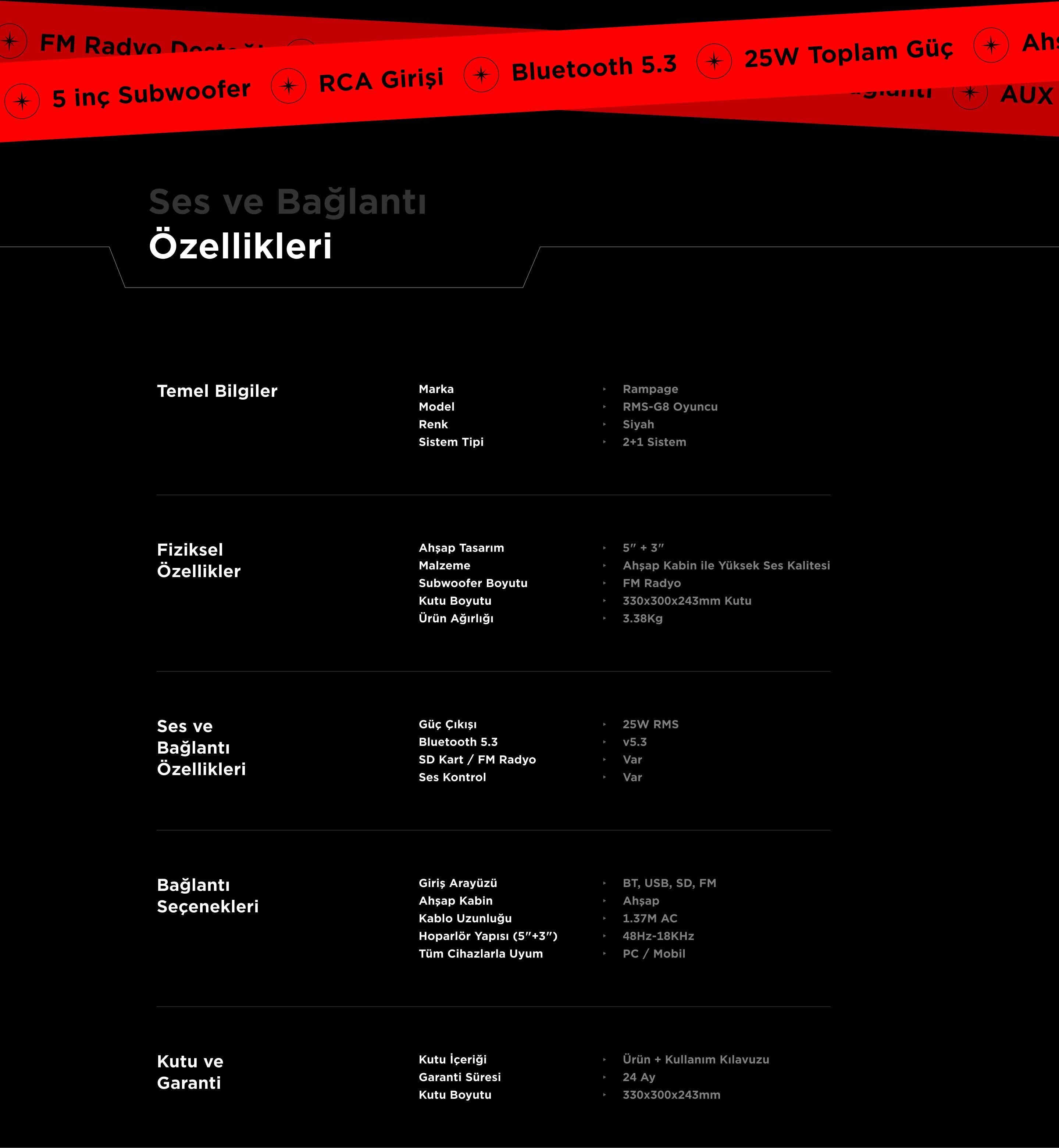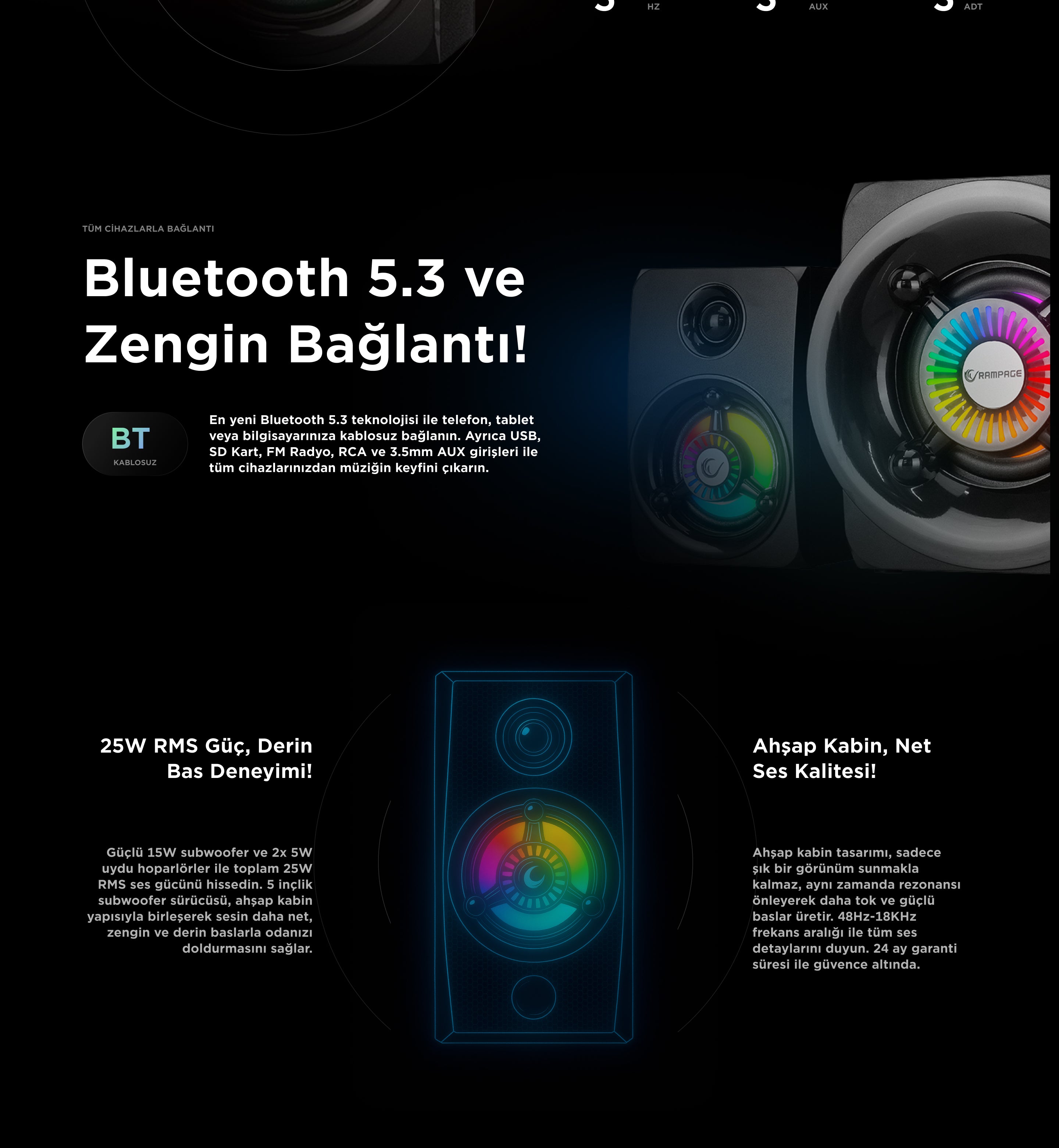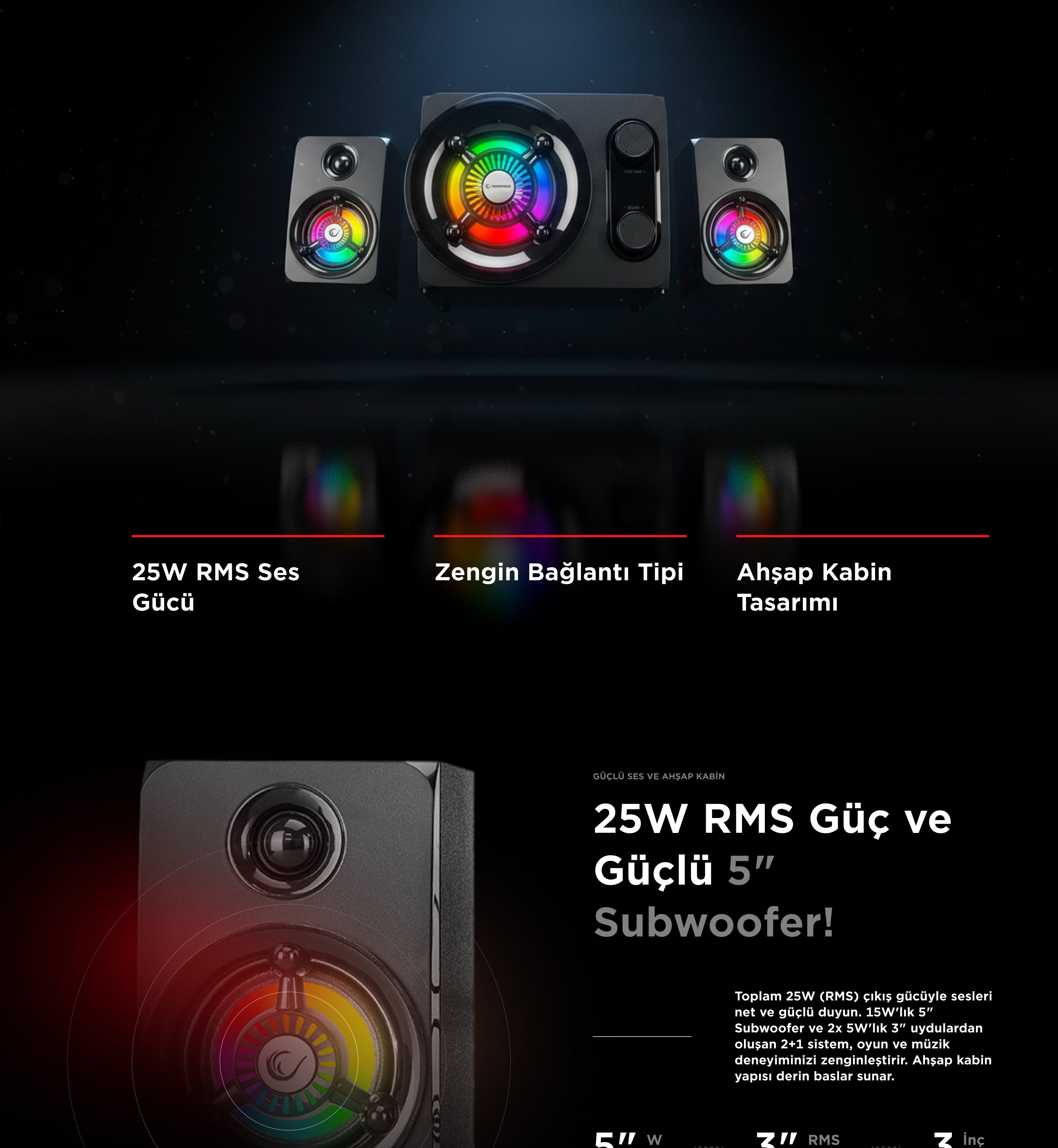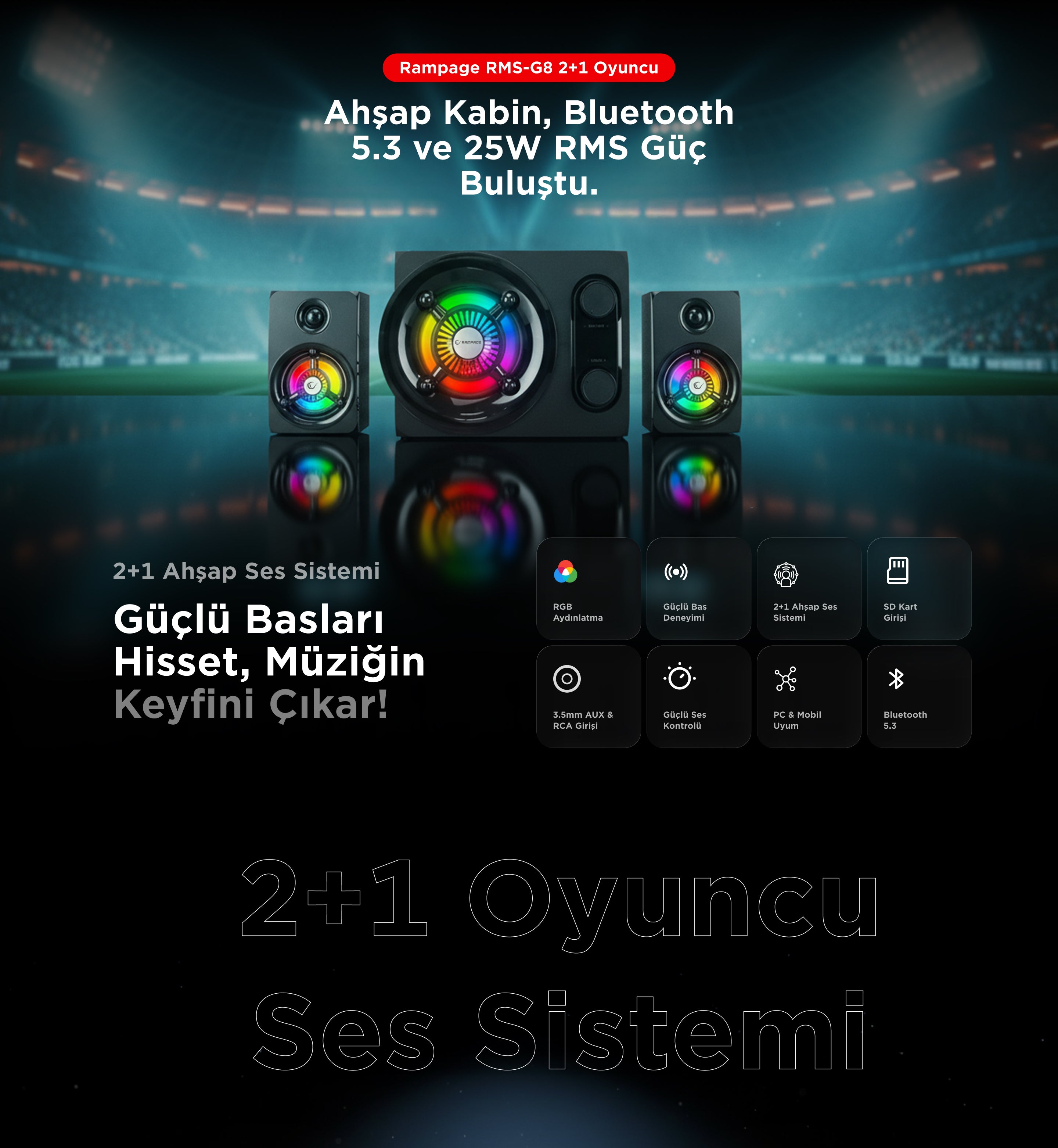 Rms-G8 Antares 2+1 25W Bluetooth+Usb Rainbow Oyuncu Speaker Hoparlör-Siyah