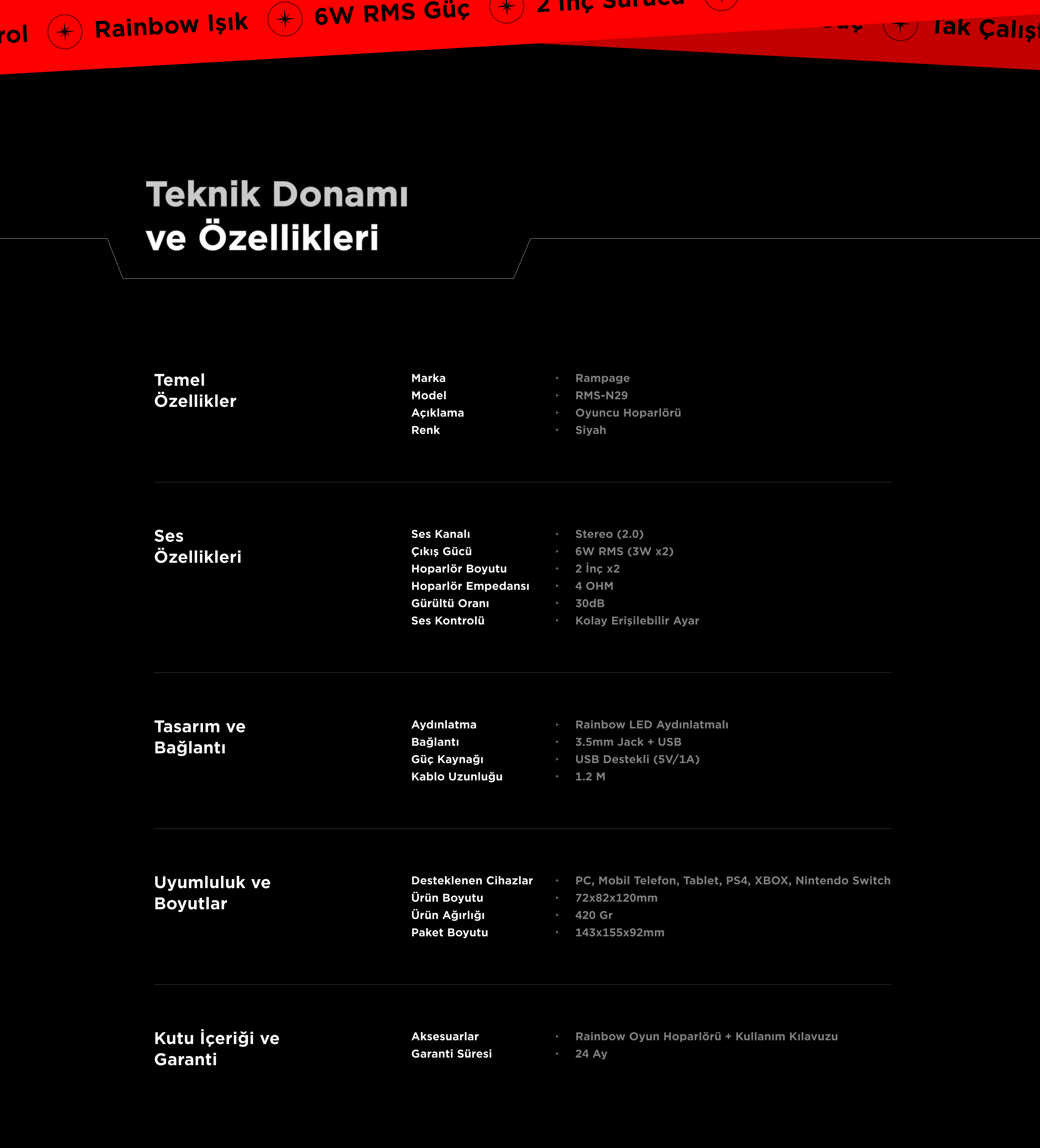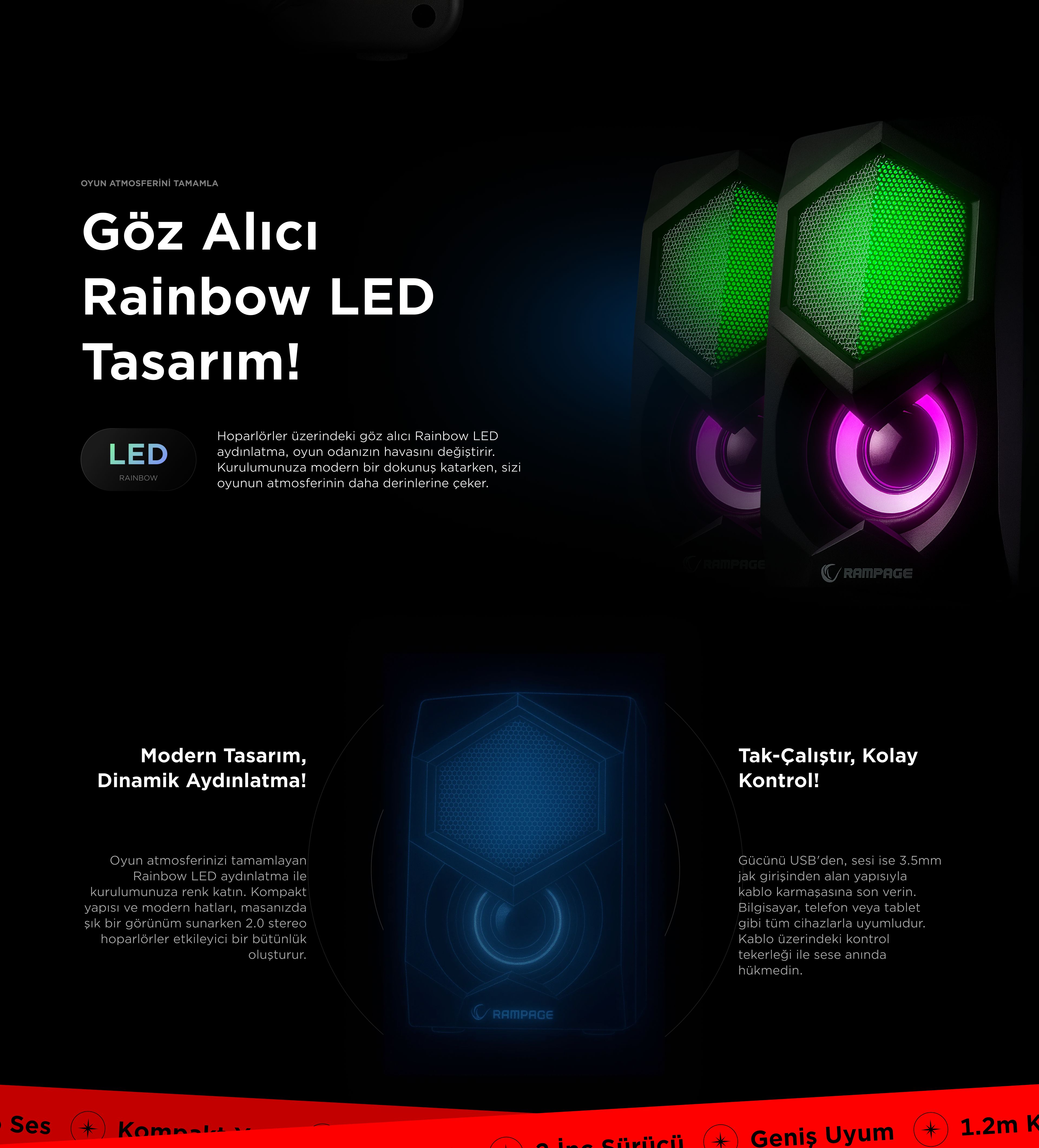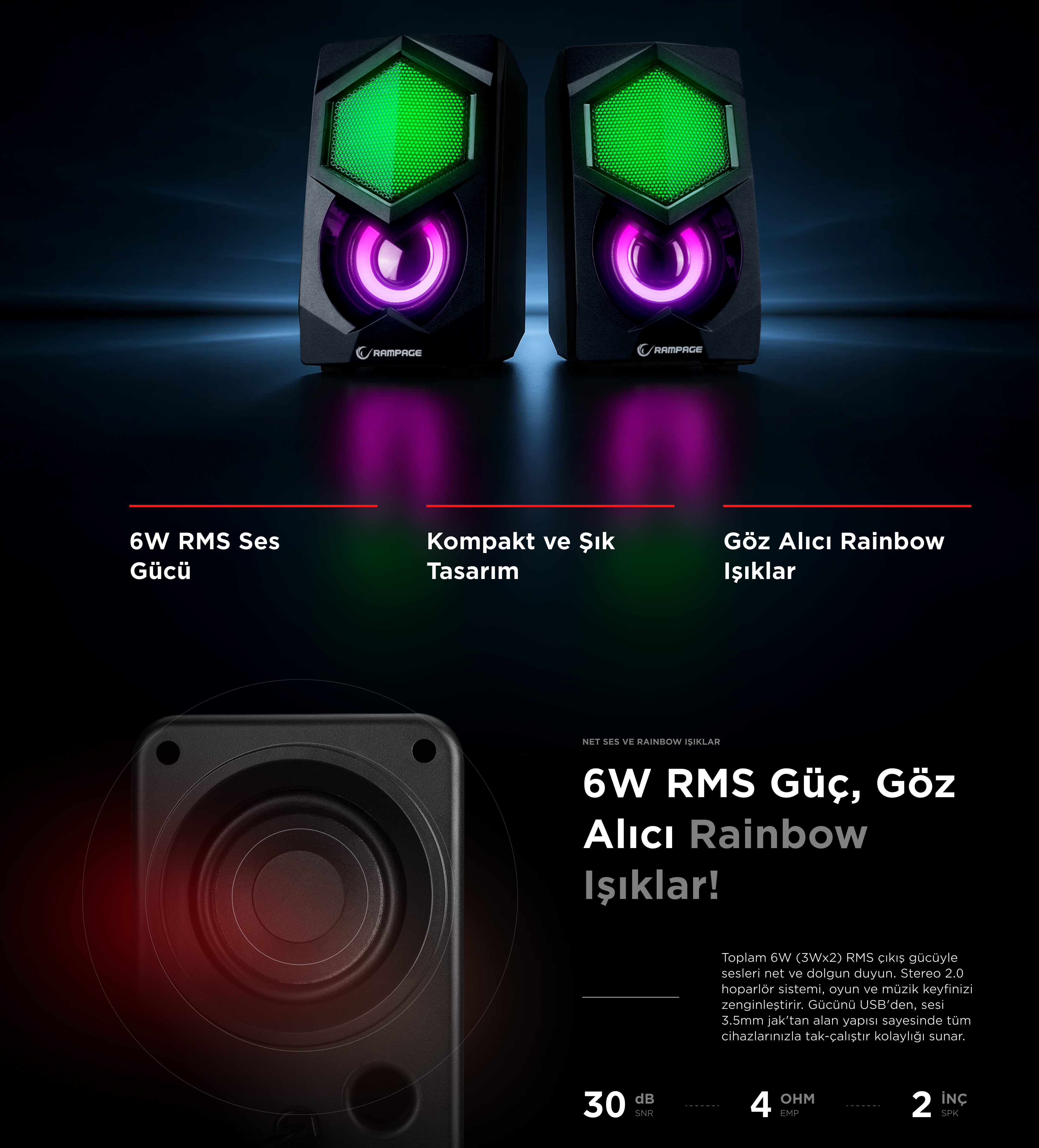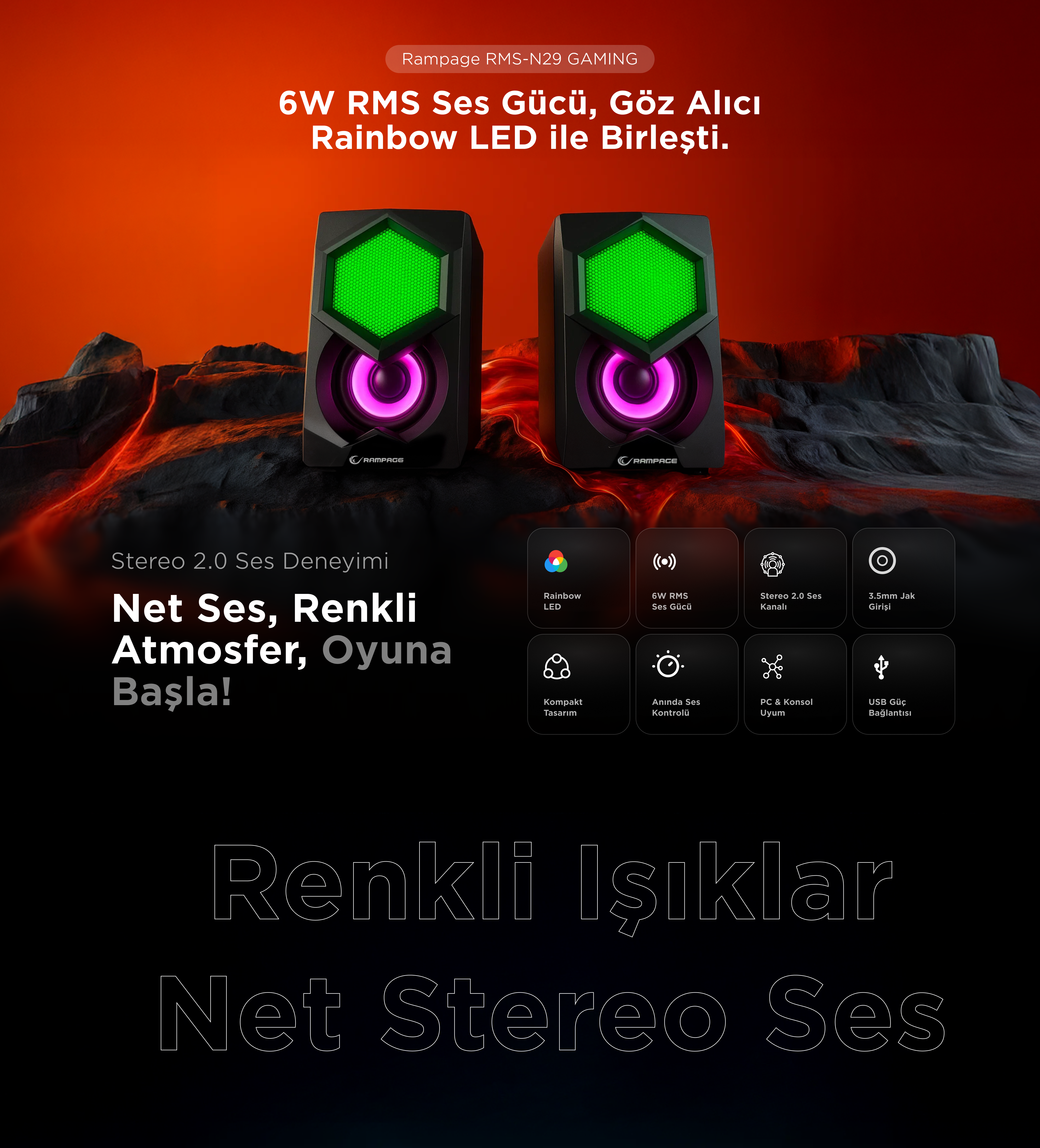Rms-N29 2.0 2x3W Usb 5V Rainbow Oyuncu Speaker Hoparlör