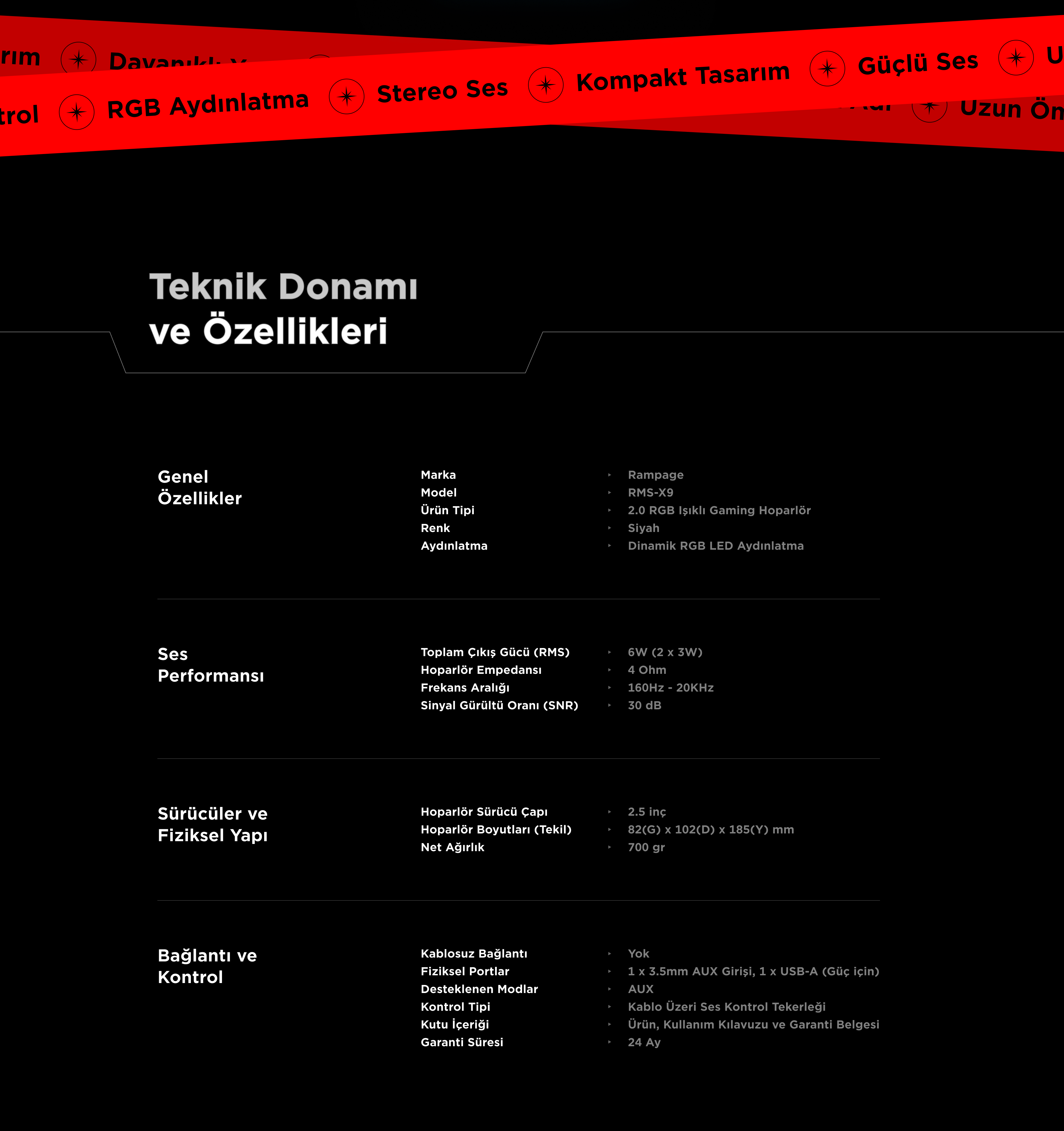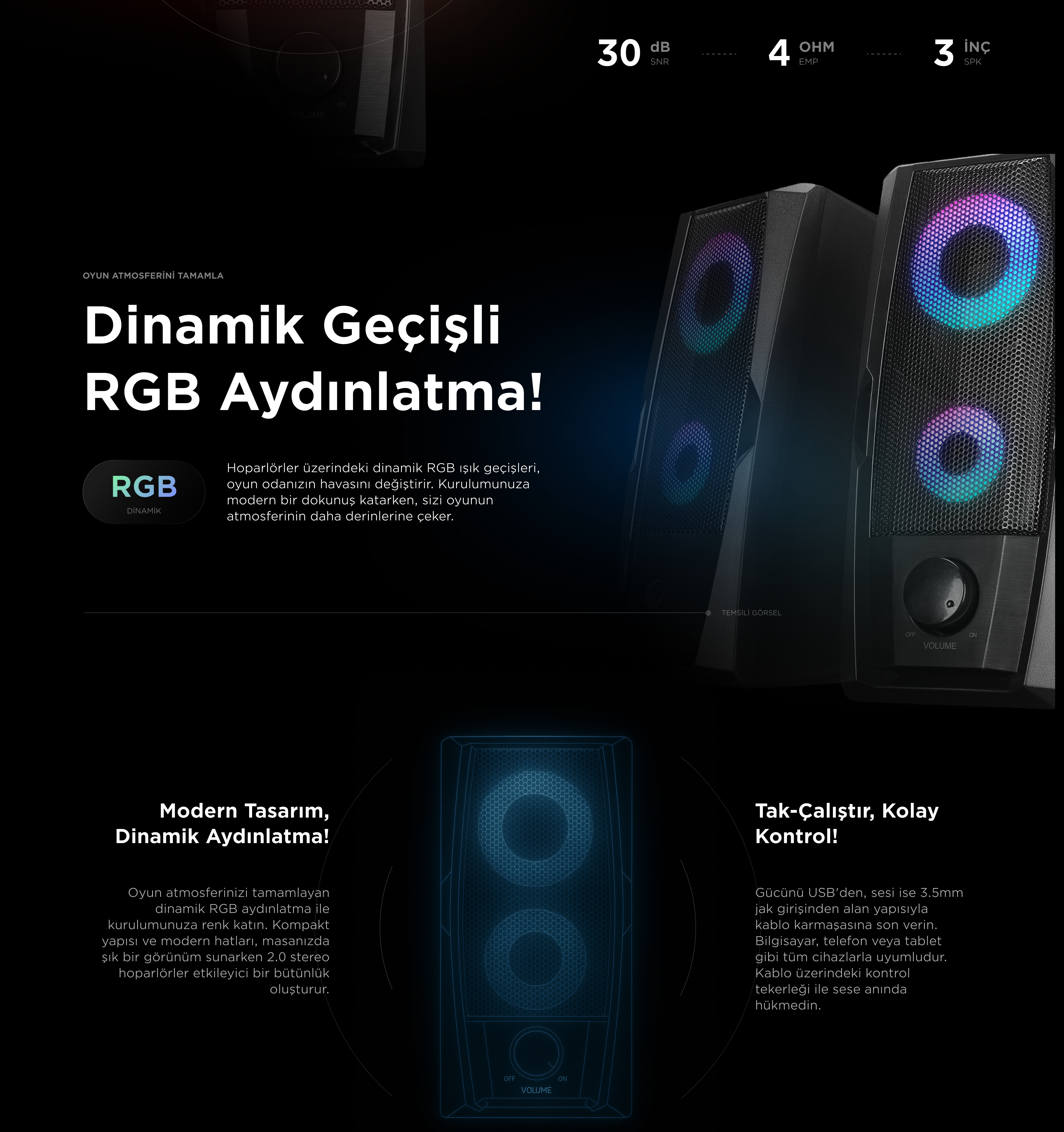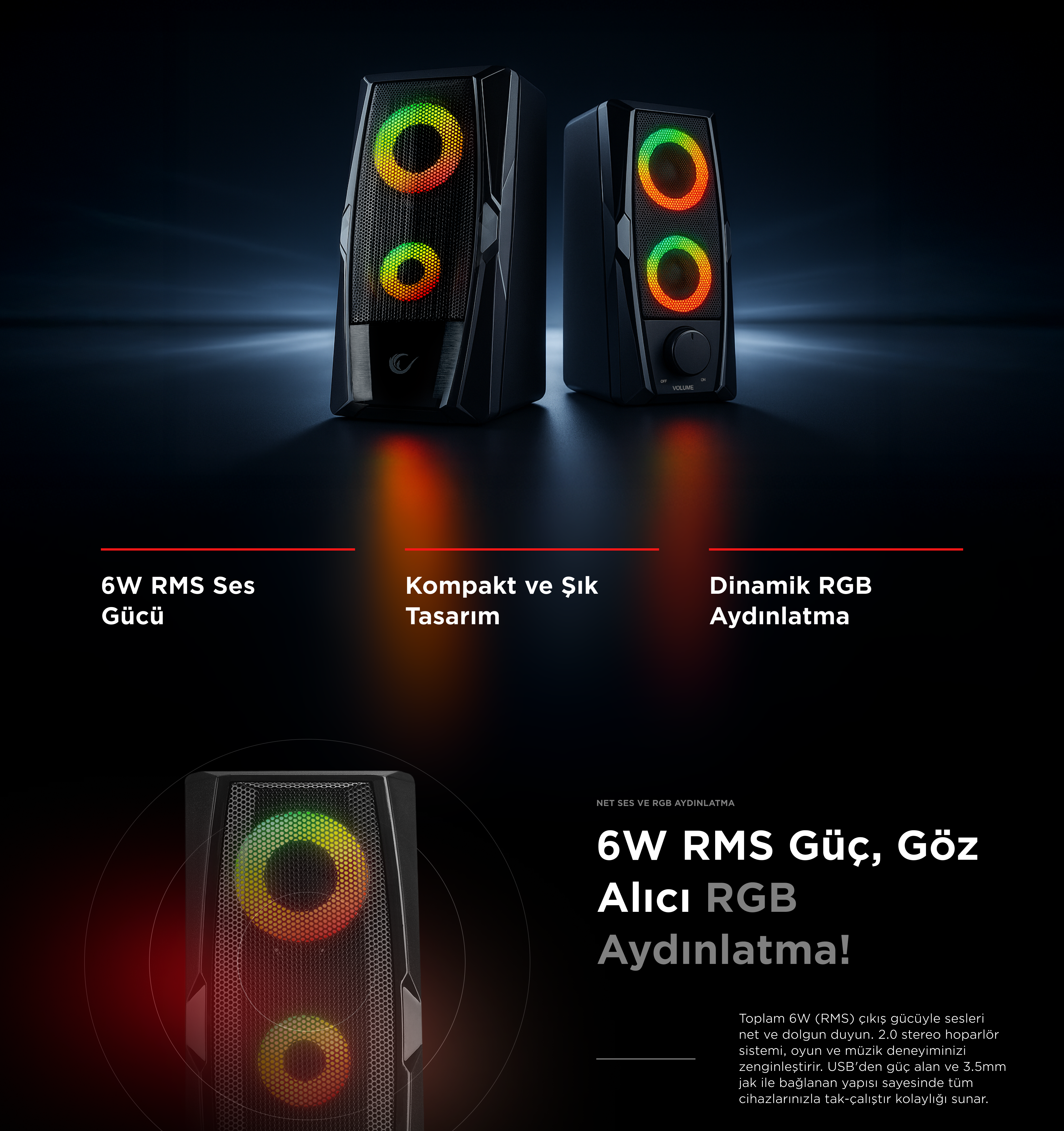 RMS-X9 2.0 RGB Multimedia 5V Oyuncu Speaker