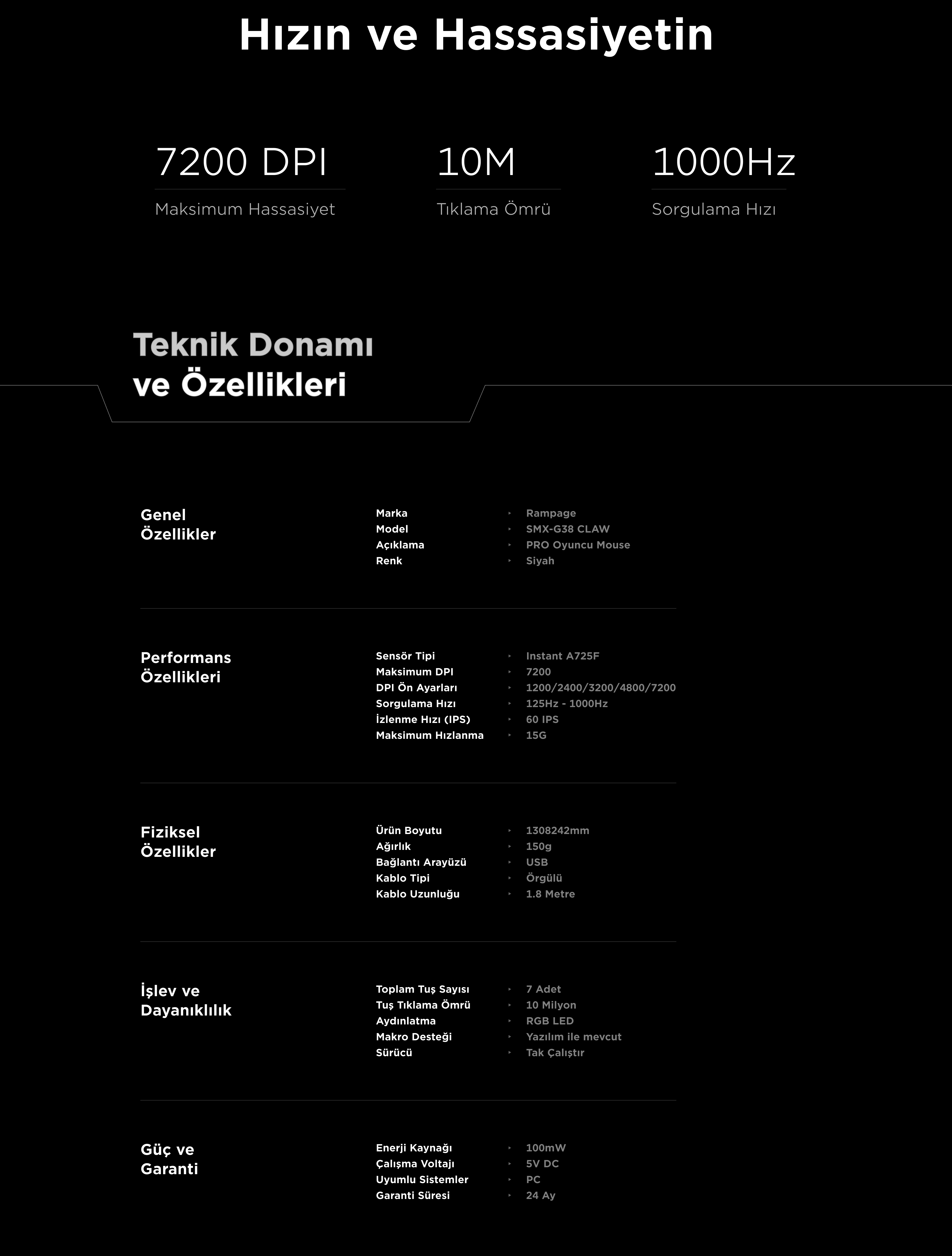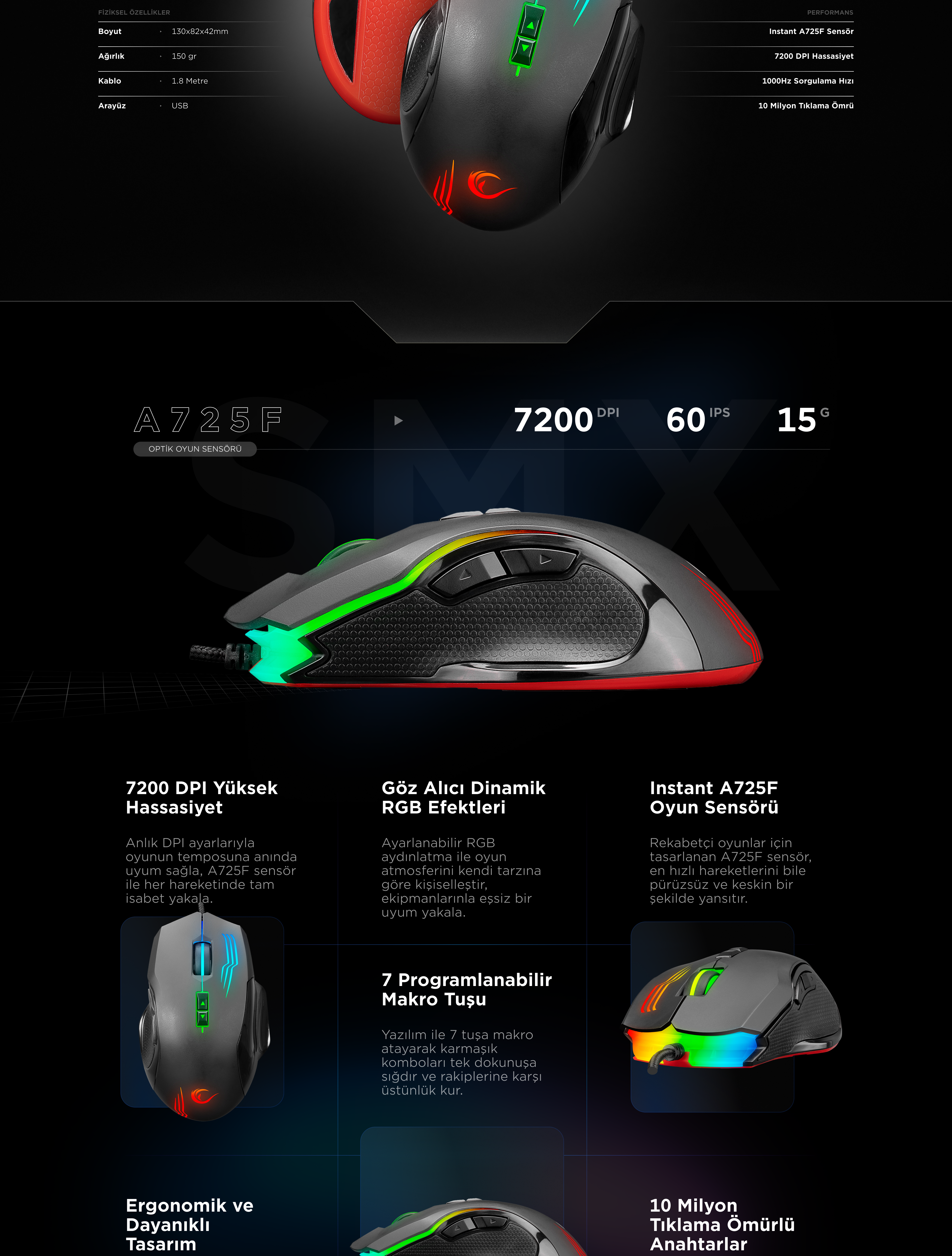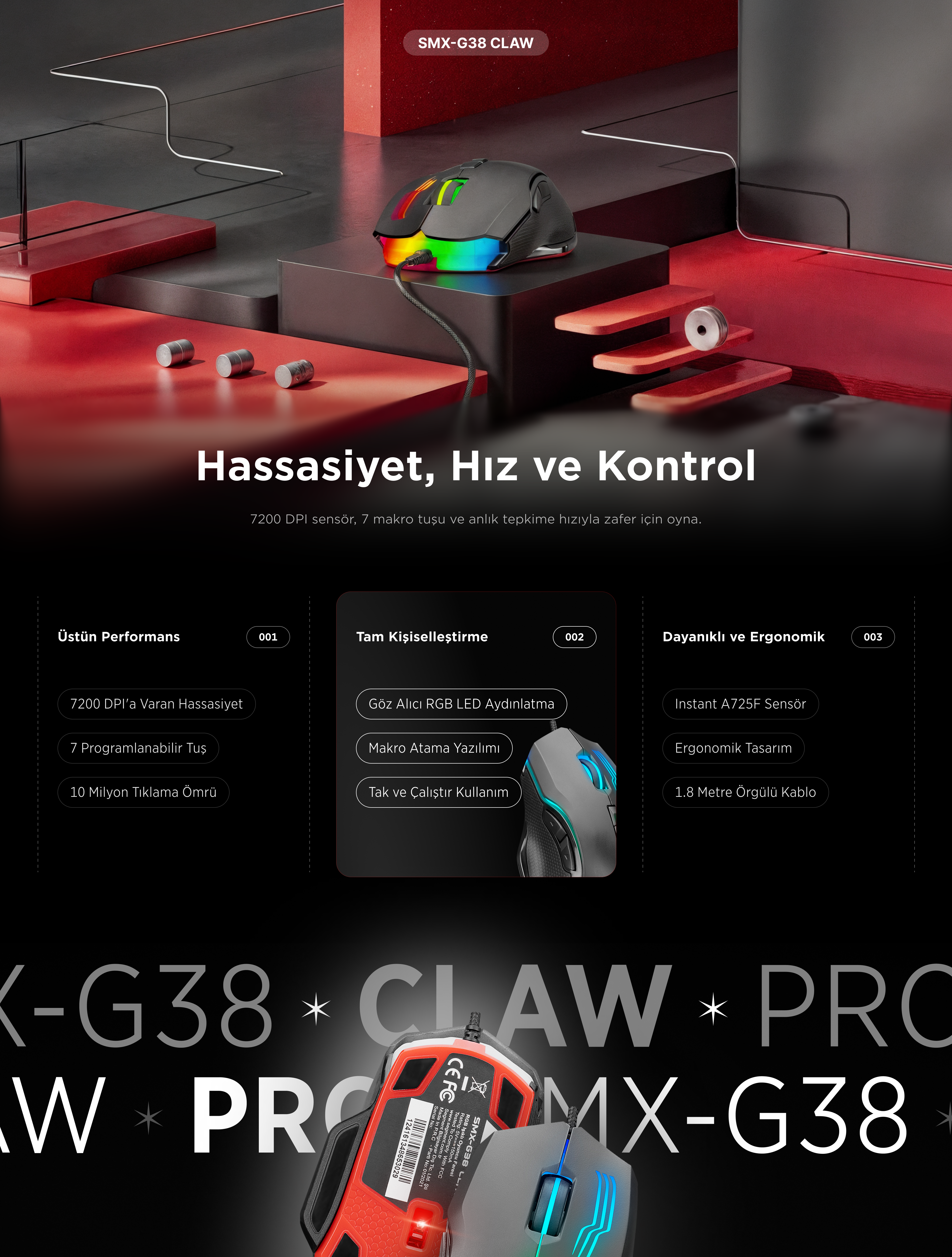 Smx-G38 Claw 7 Makro Tuşlu RGB 12800 Dpi Oyuncu Mouse