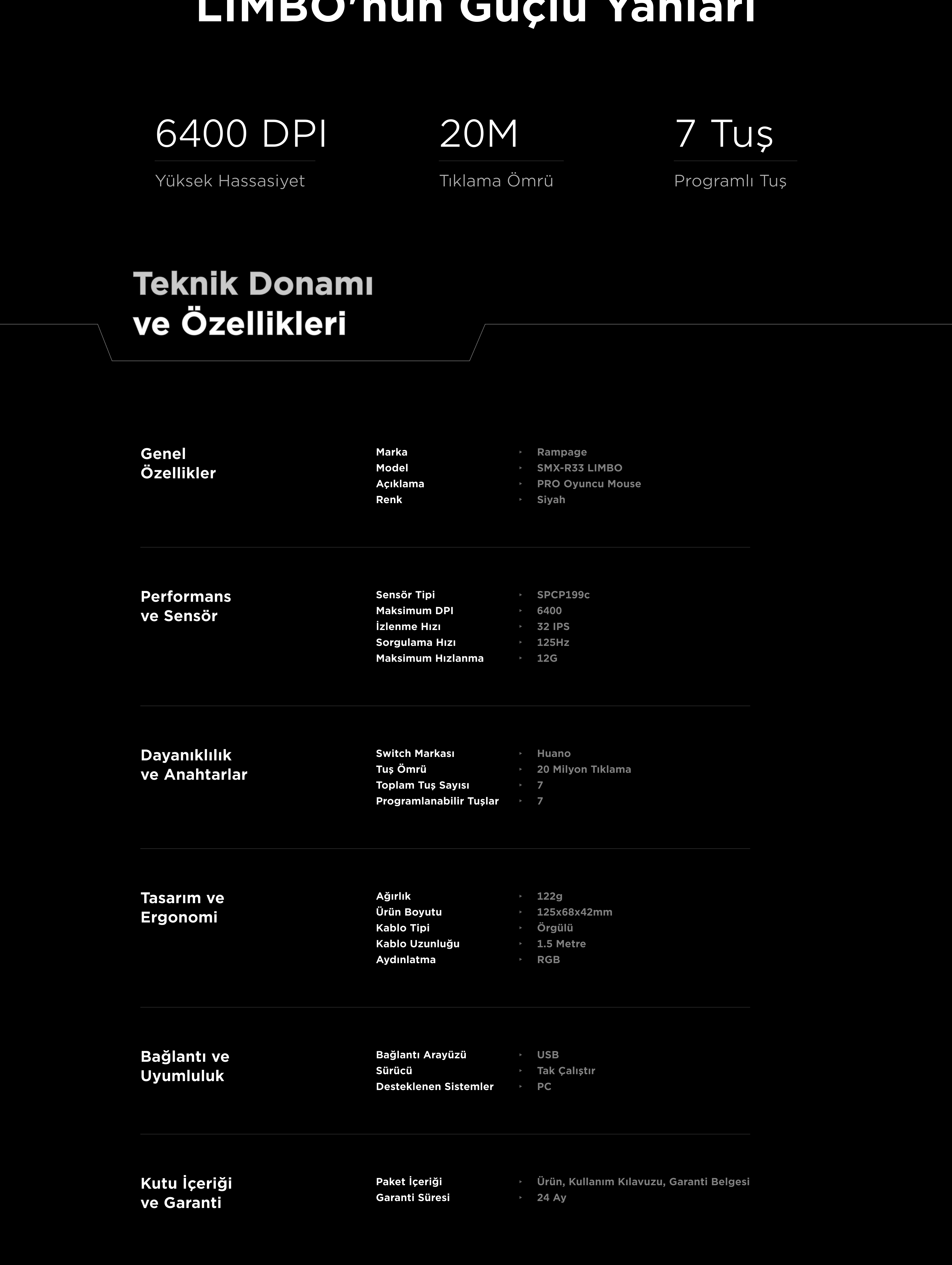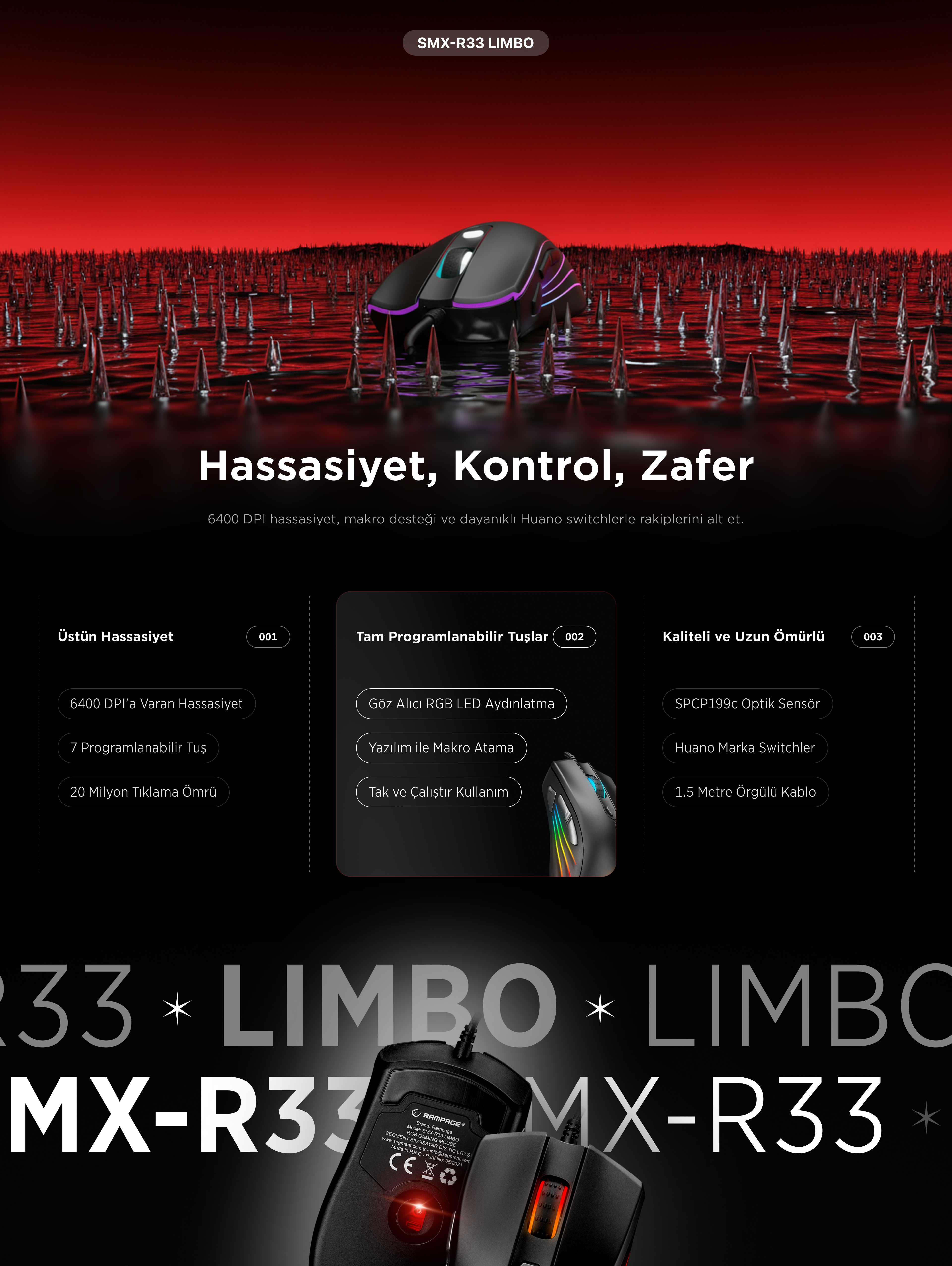 Smx-R33 Limbo Makrolu 6400dpi RGB Oyuncu Mouse-Siyah
