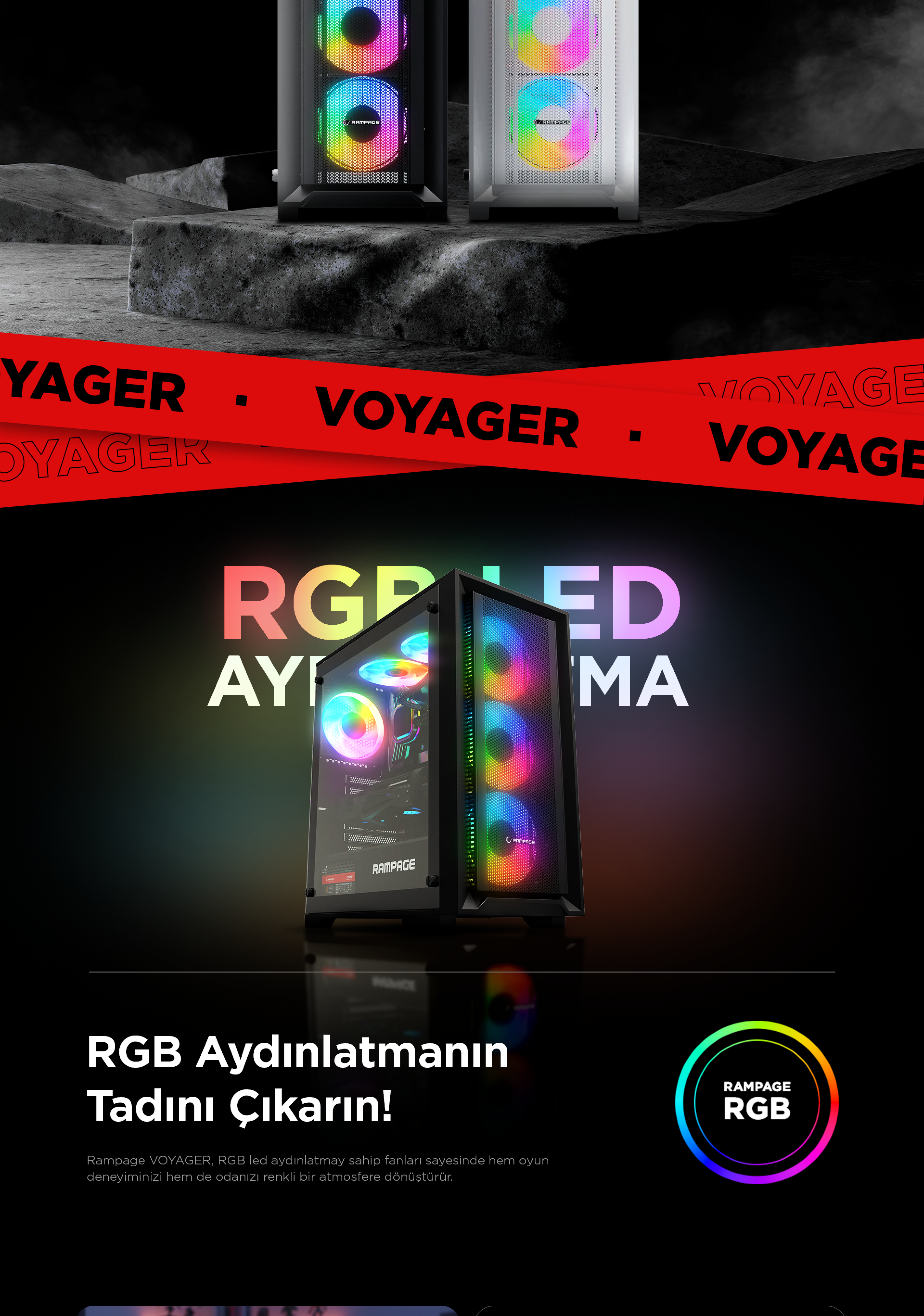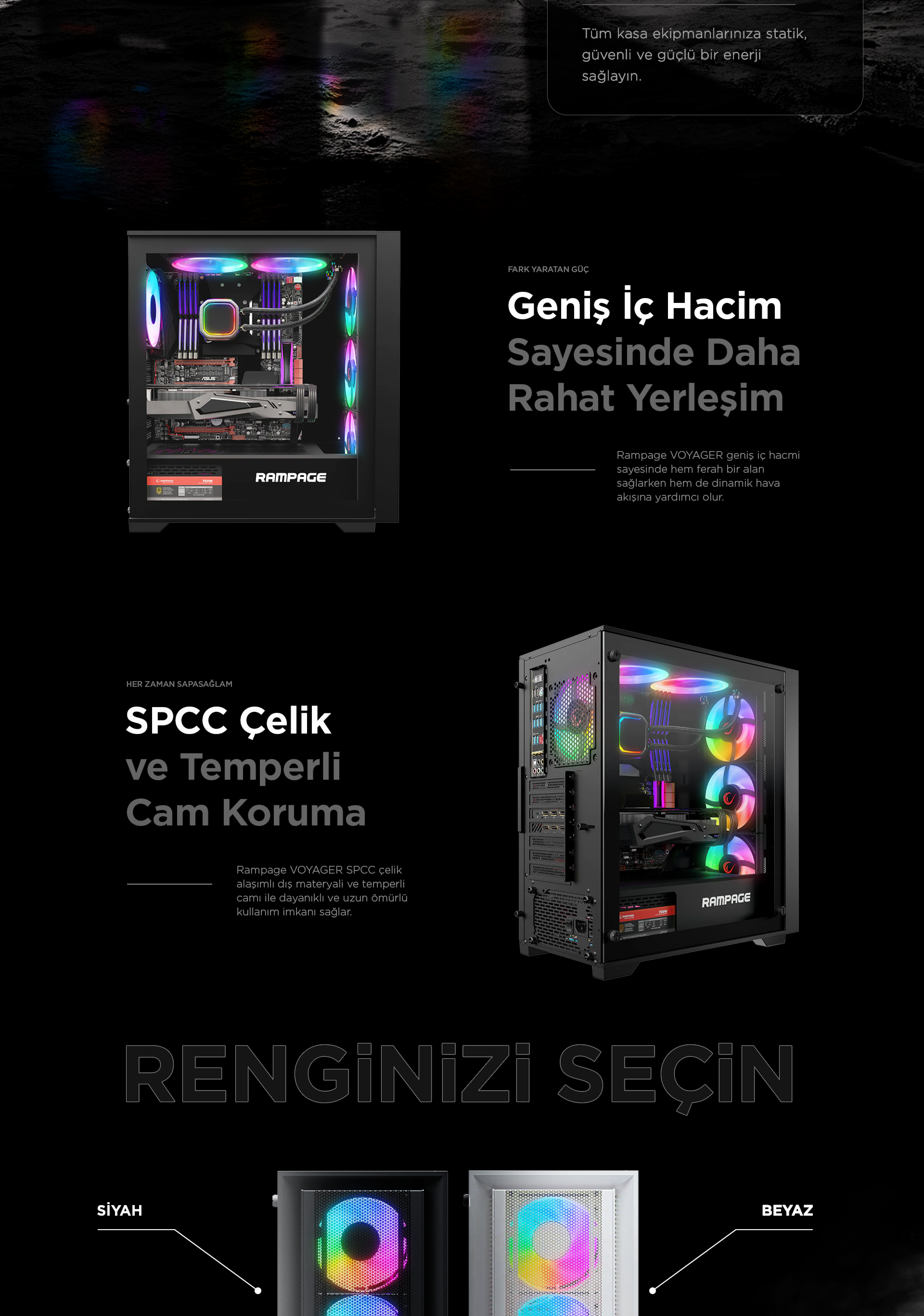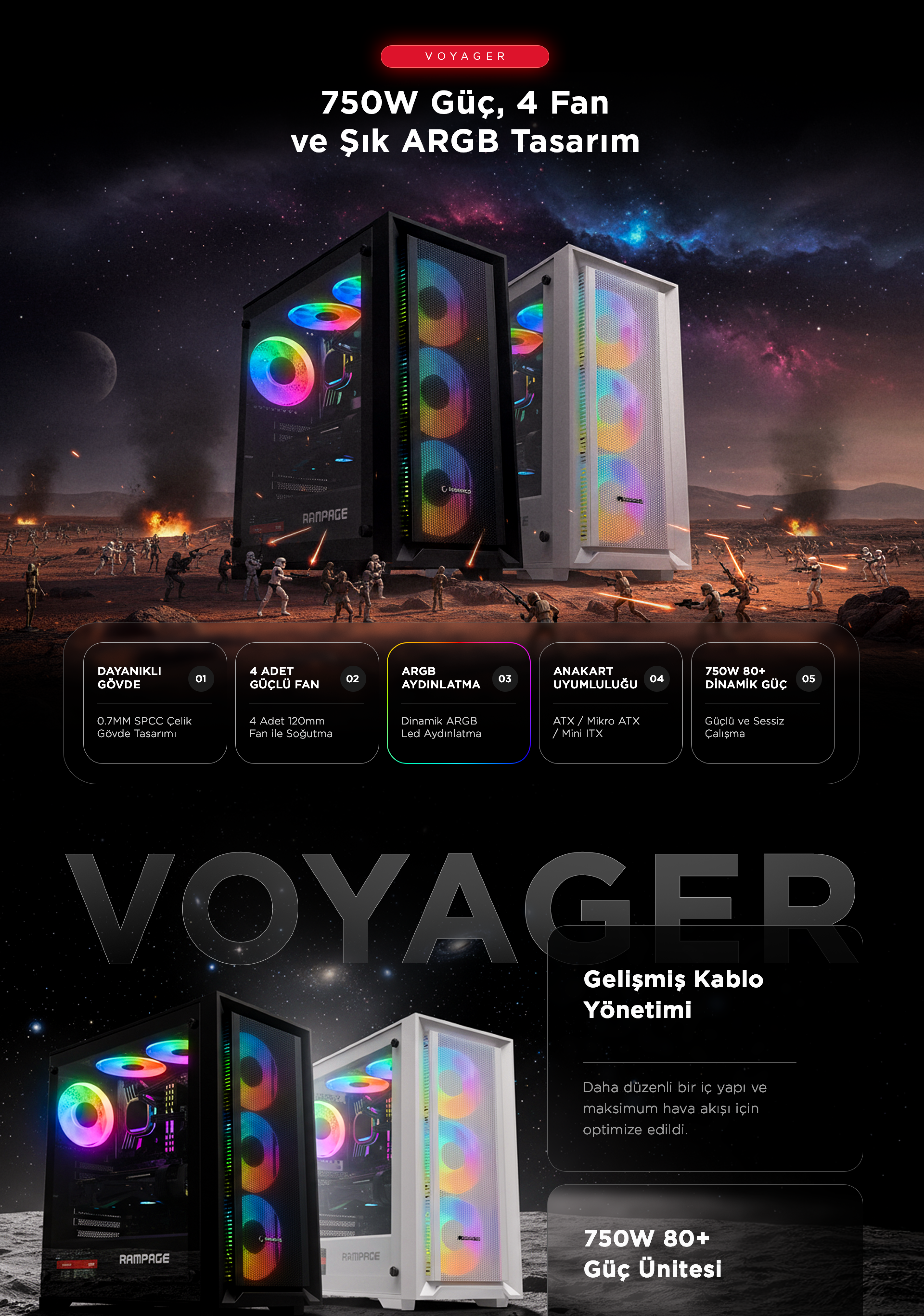 Voyager 750W 80+ Bronze 4xRGB Auto Fan Atx Mid-T Oyuncu Kasası-Siyah