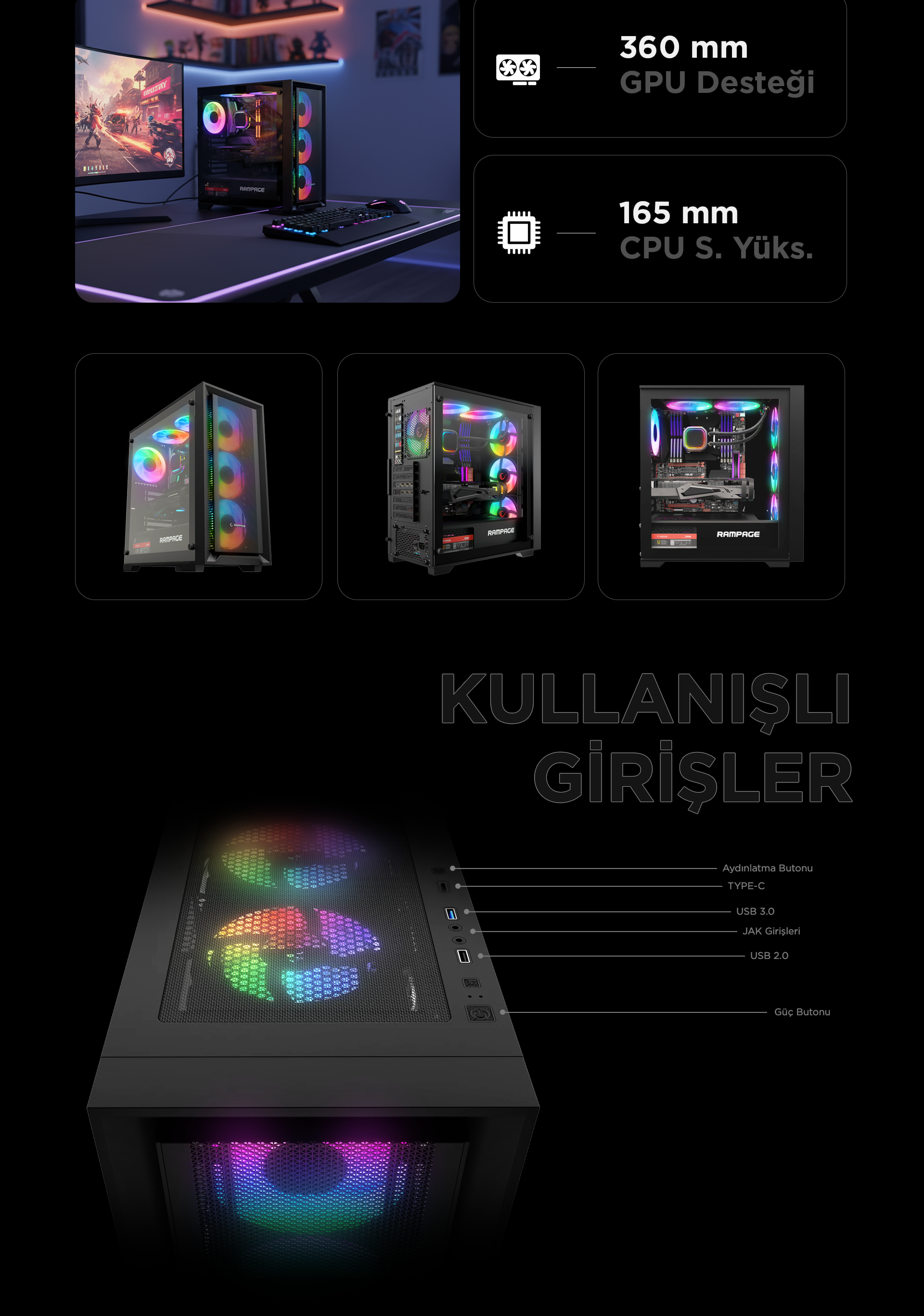 - ATX / Mikro ATX / Mini ITX Anakart Uyumlu