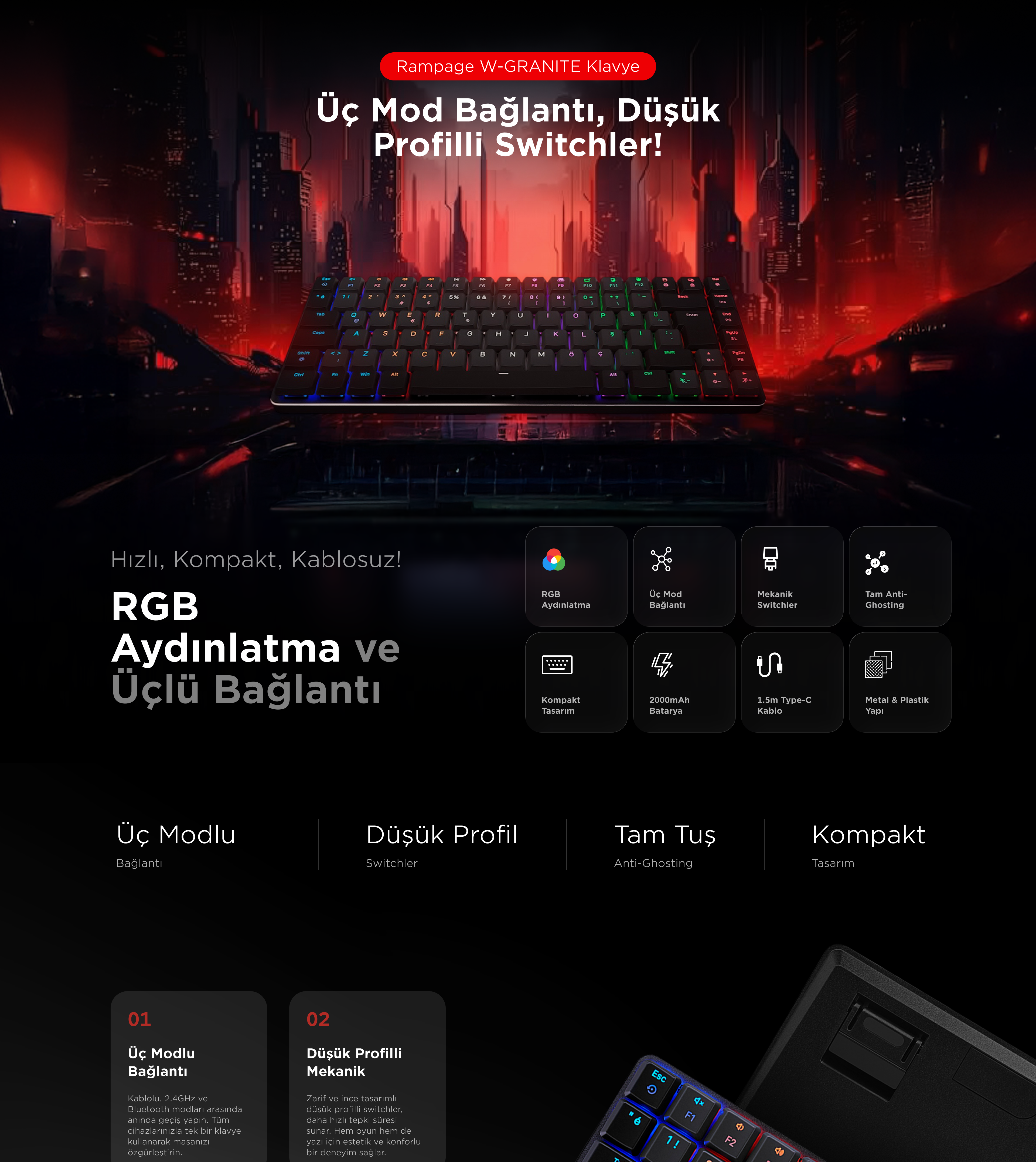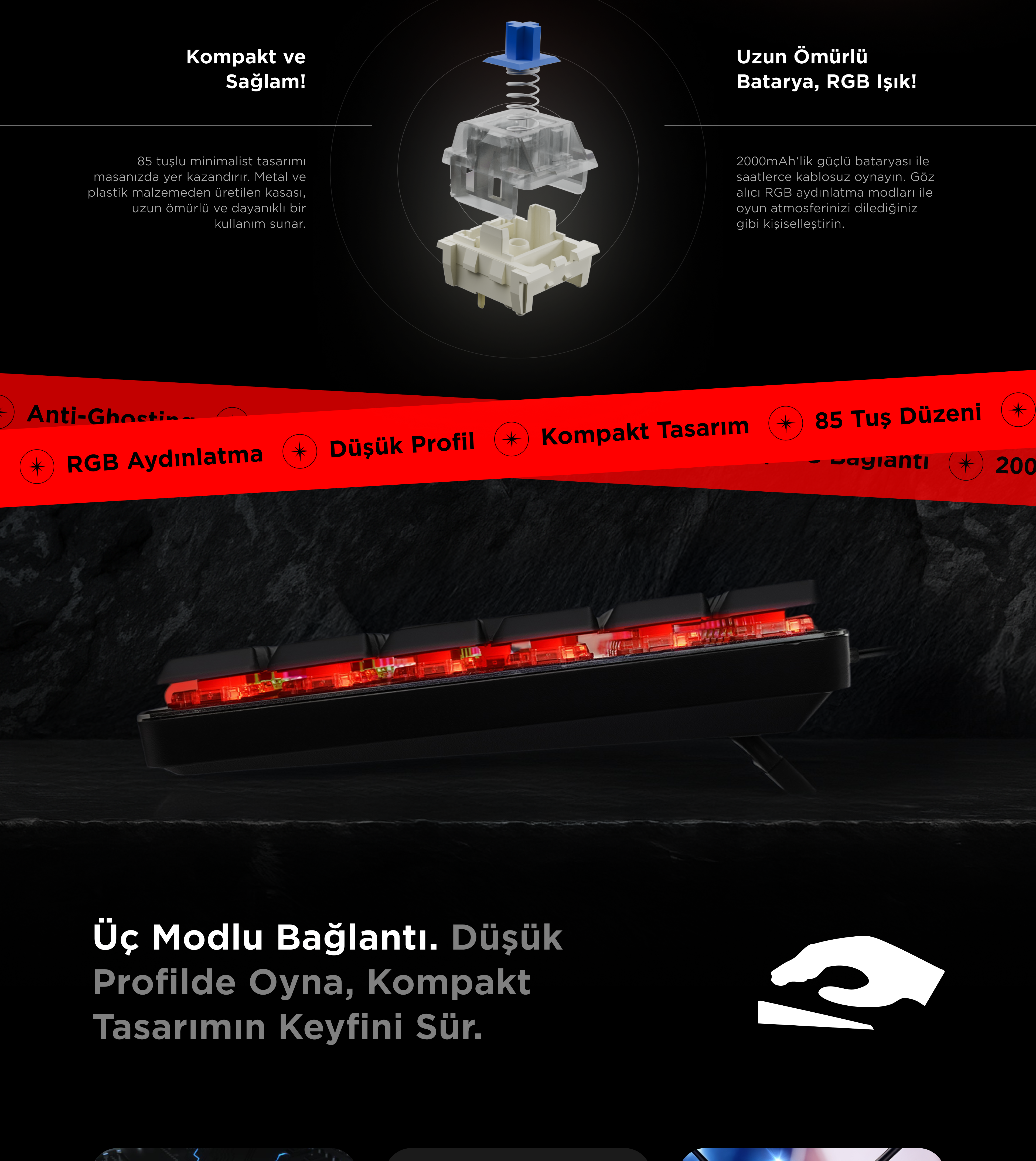 - 2.4 GHz + v5.0 Bluetooth + Kablolu Bağlantı