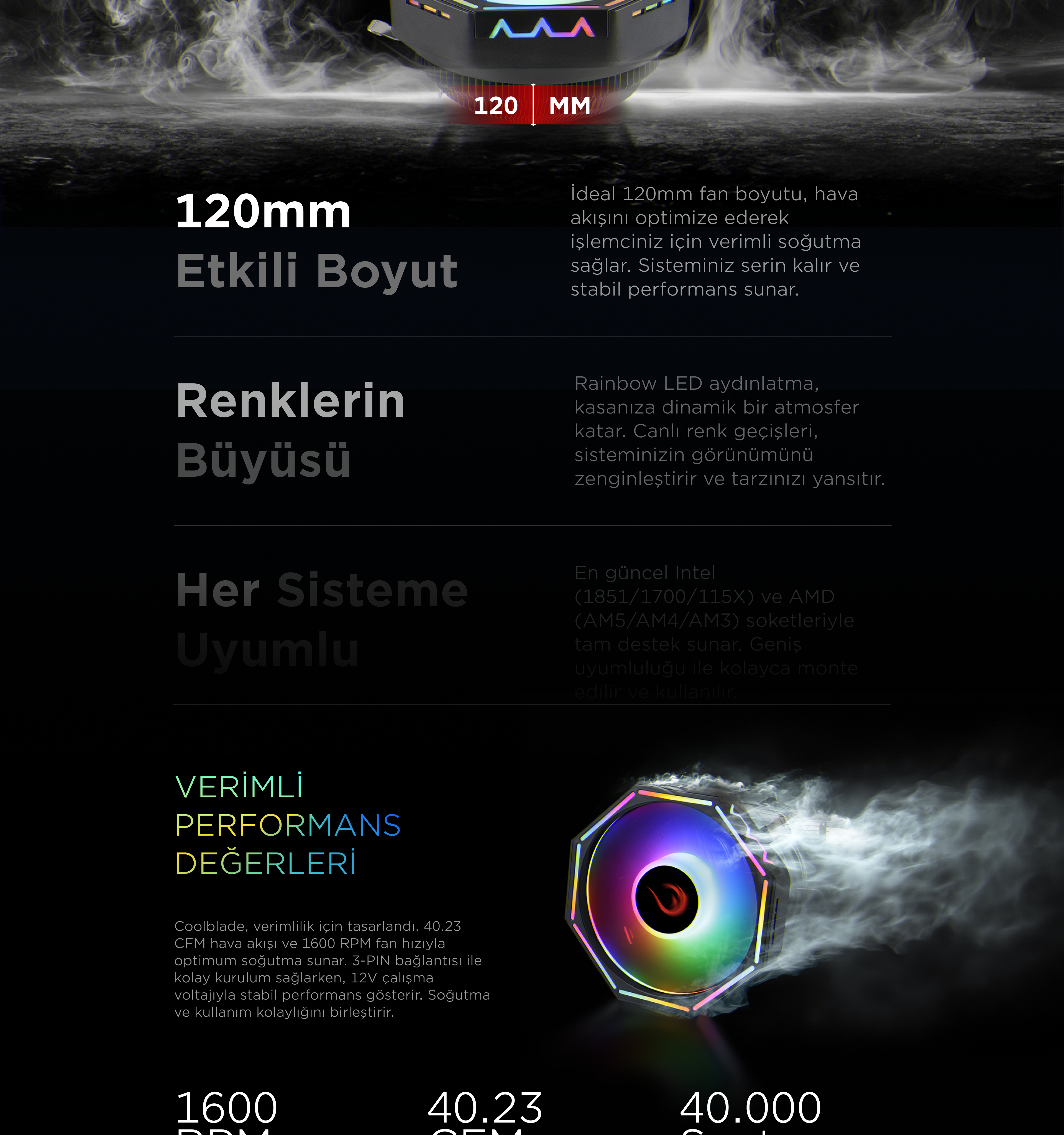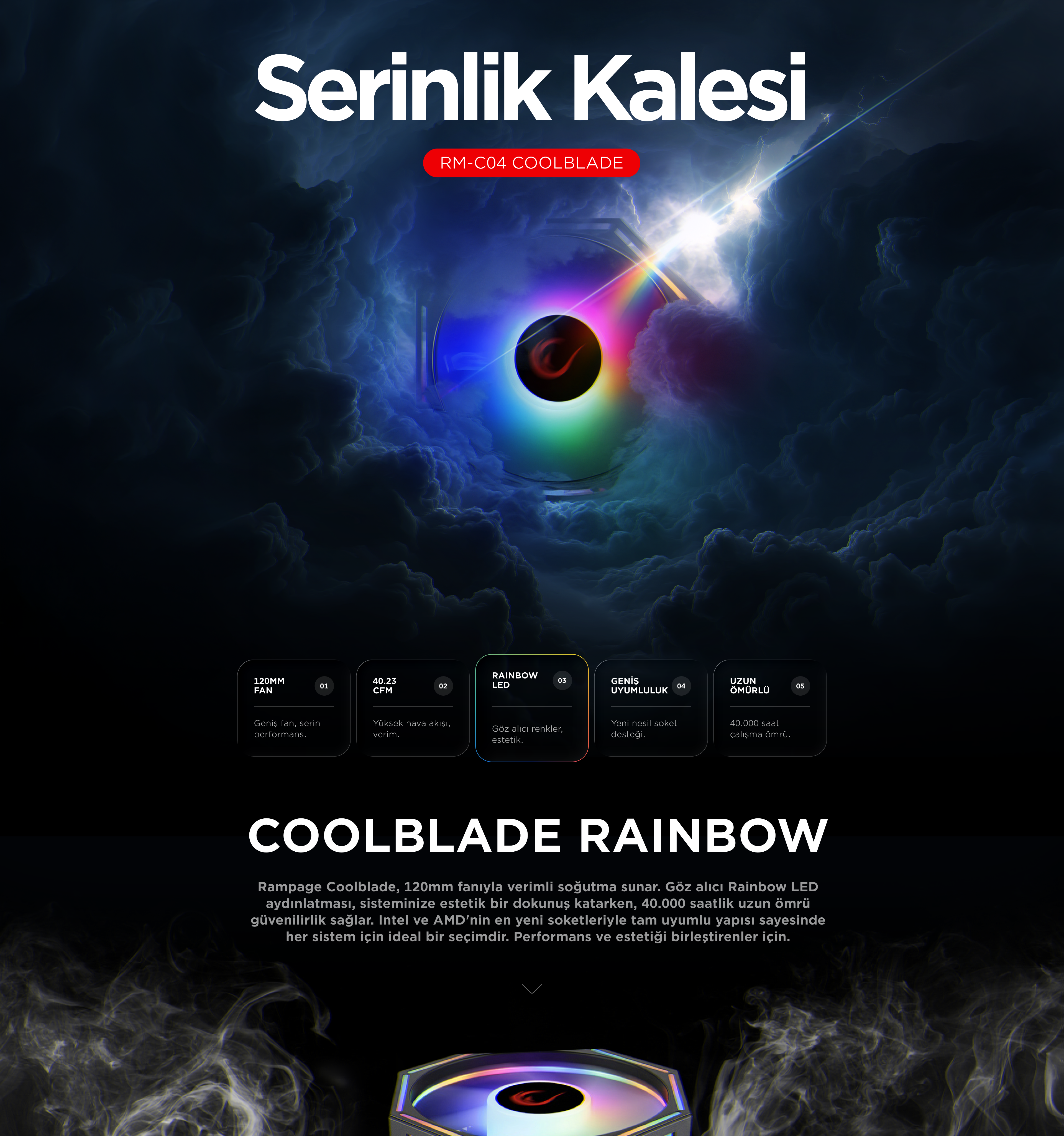 Rm-C04 Coolblade Rainbow LGA1851/1700/AM5 Uyumlu Hava Soğutmalı Cpu Fan