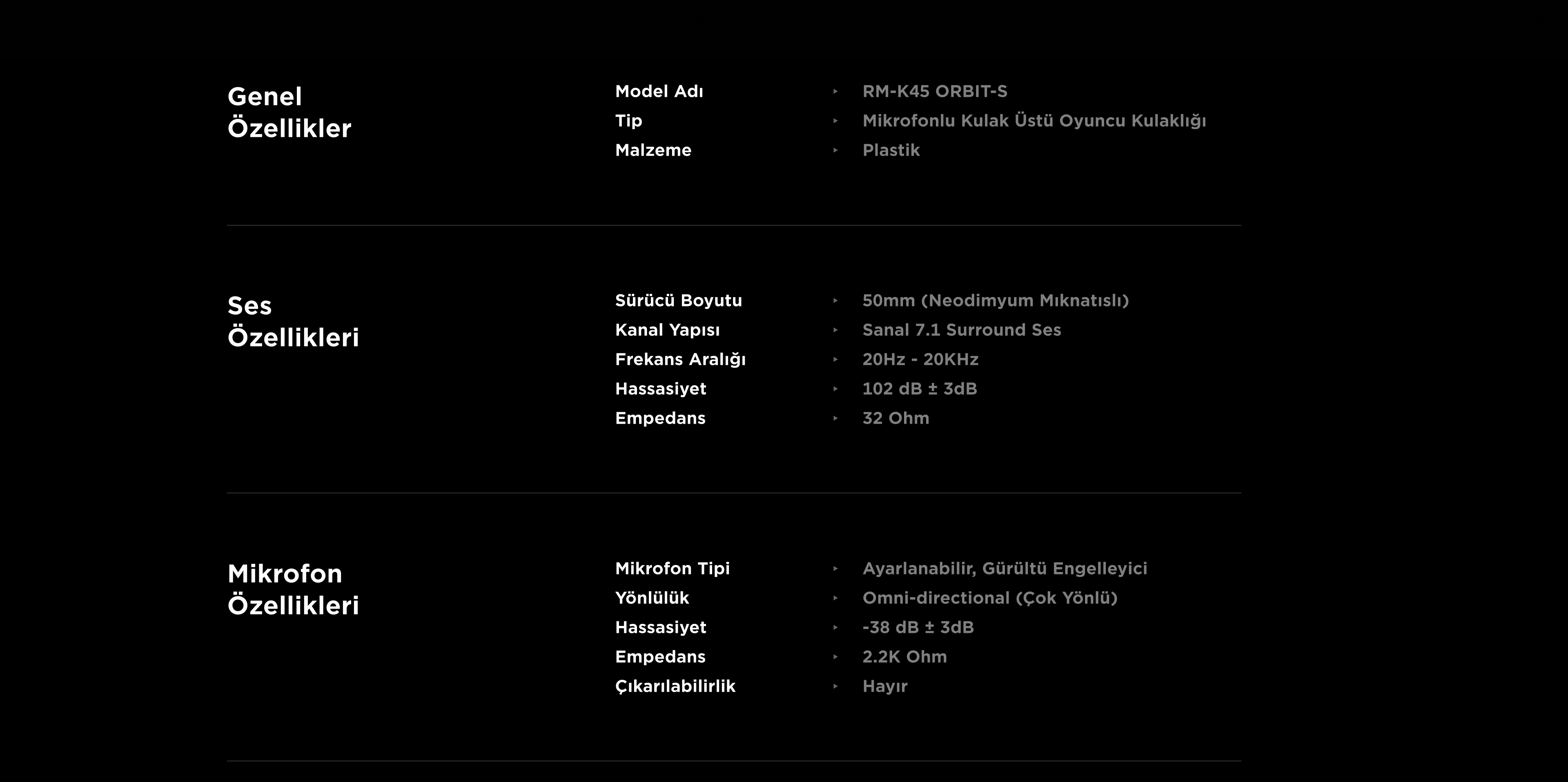 Rm-K45 Orbit-S RGB 7.1 Oyuncu Kulaklığı