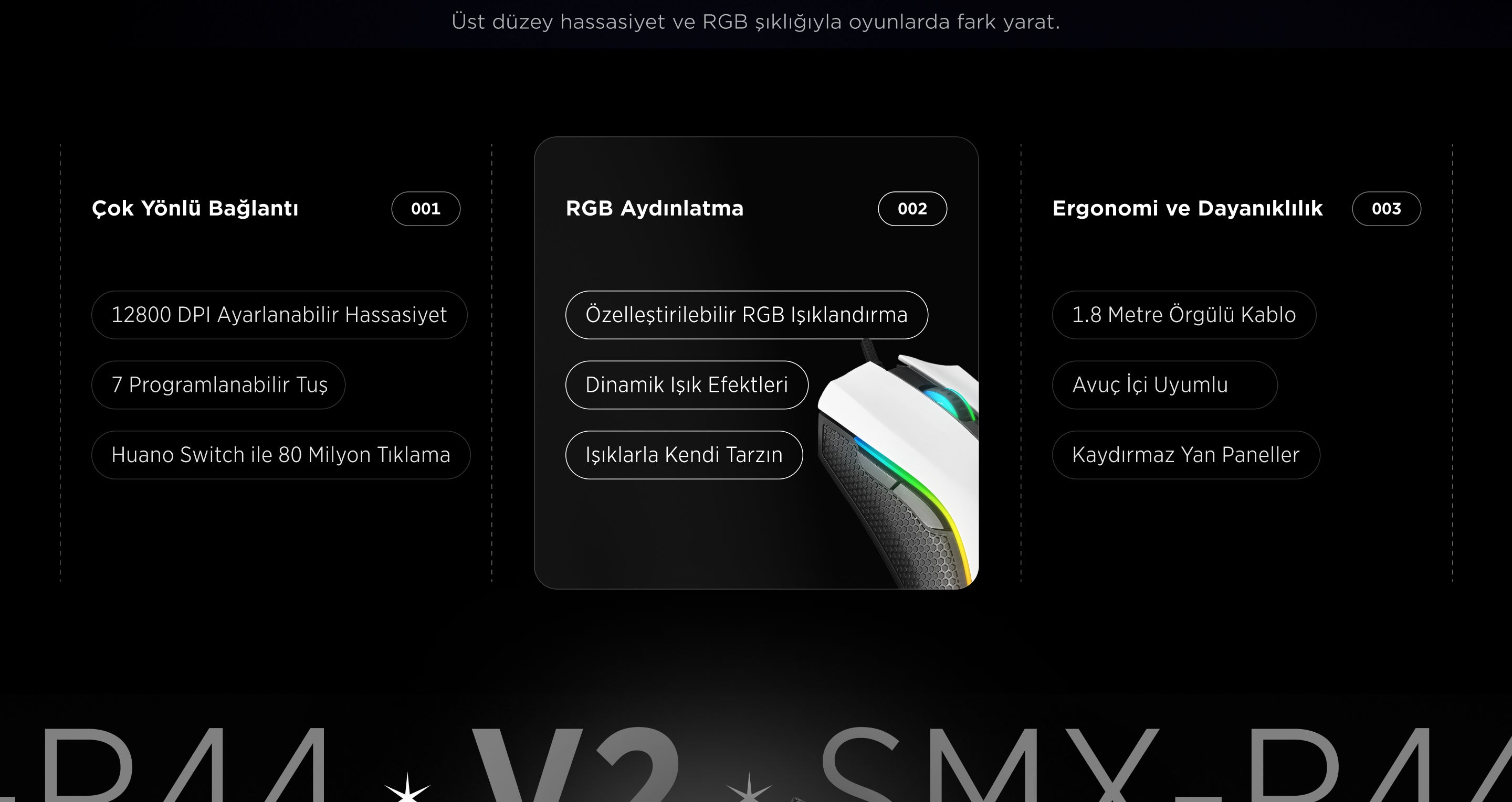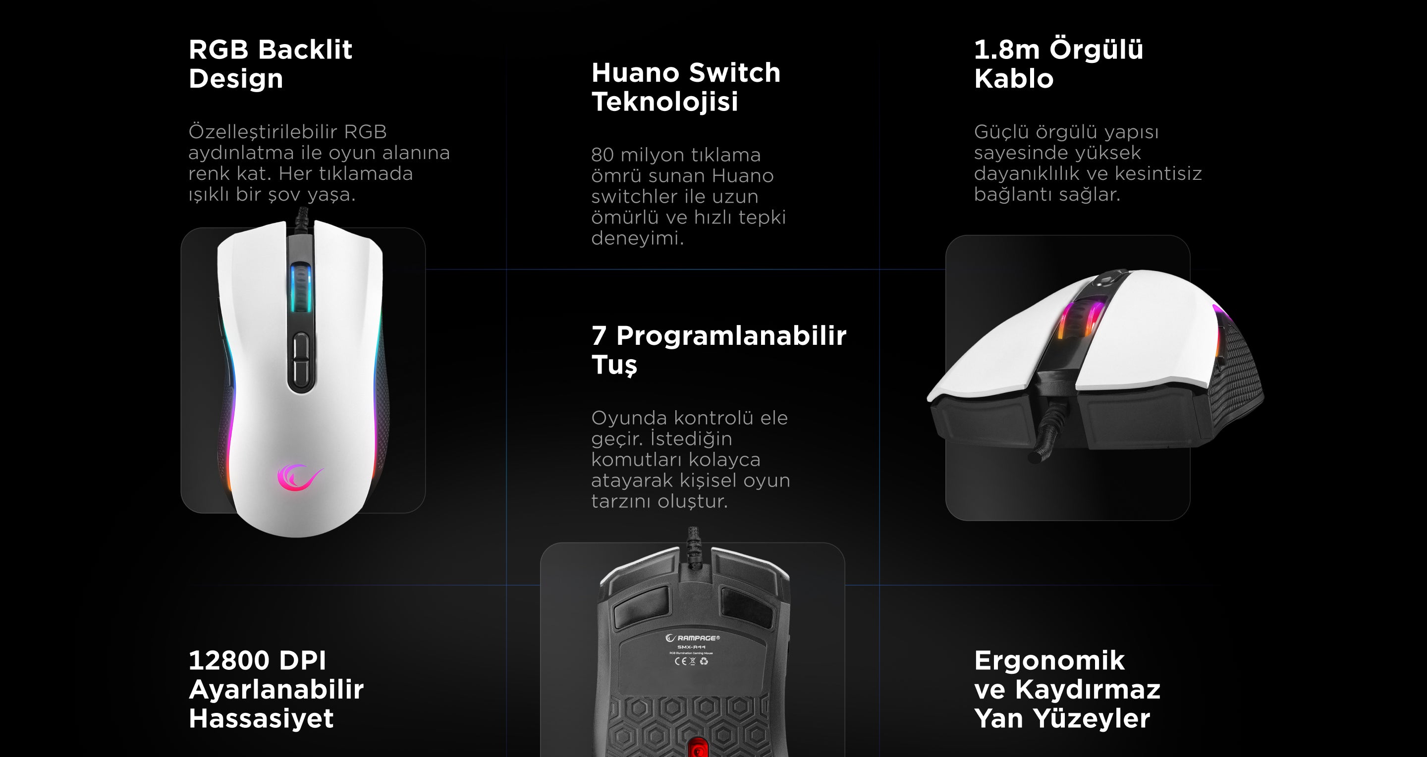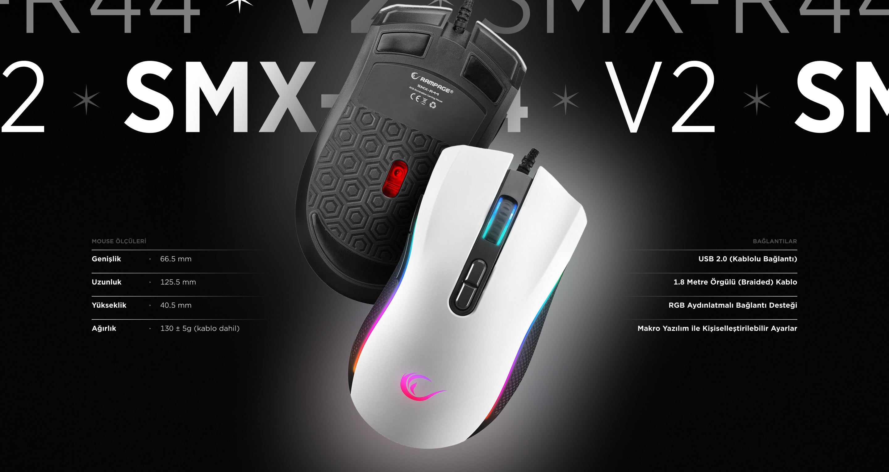 Smx-R44 V2 Makrolu 12800 Dpi 80 Million Huano Switch Oyuncu Mouse-Beyaz