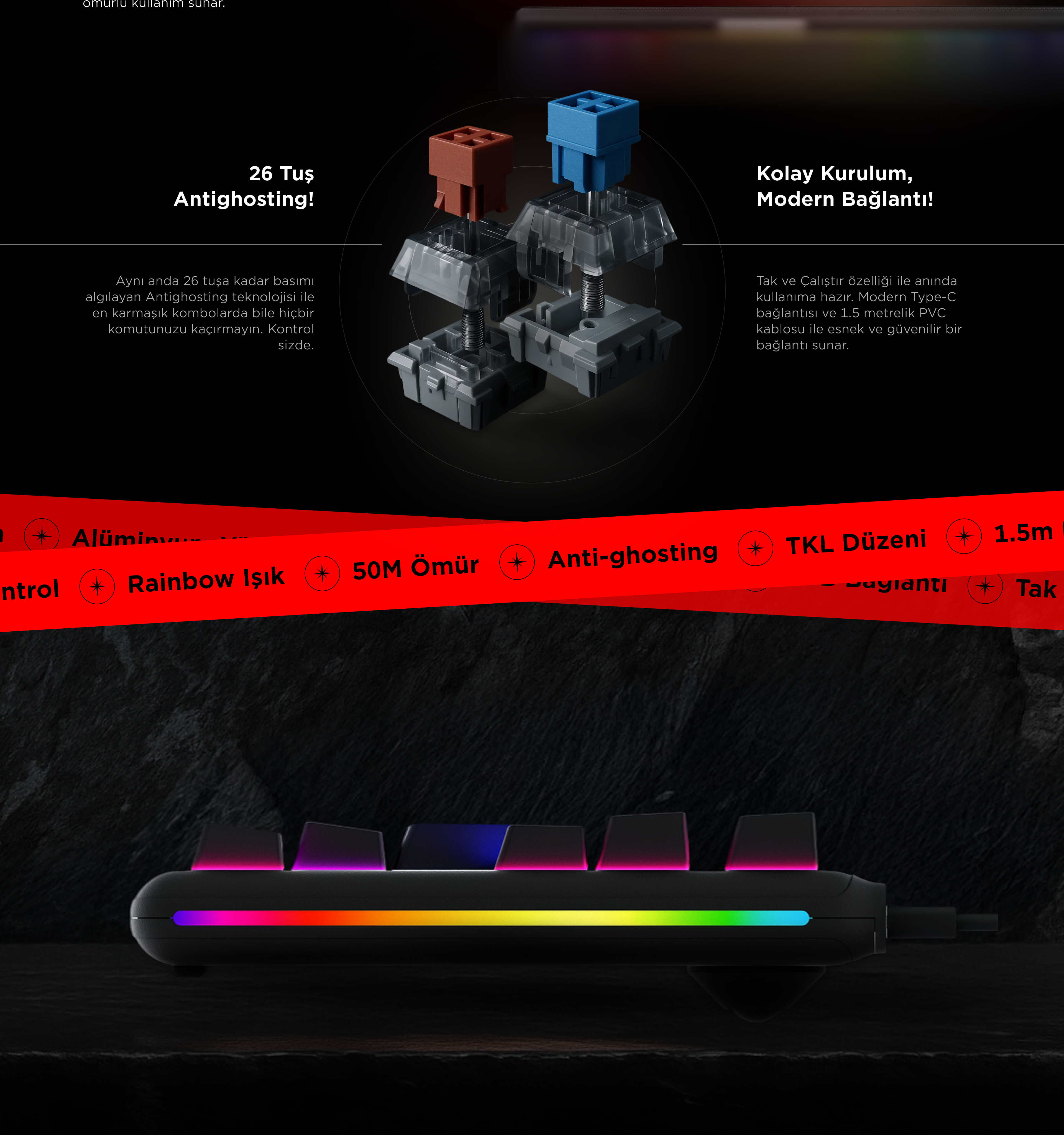 TKL Red Switch Mekanik Oyuncu Klavyesi-Siyah