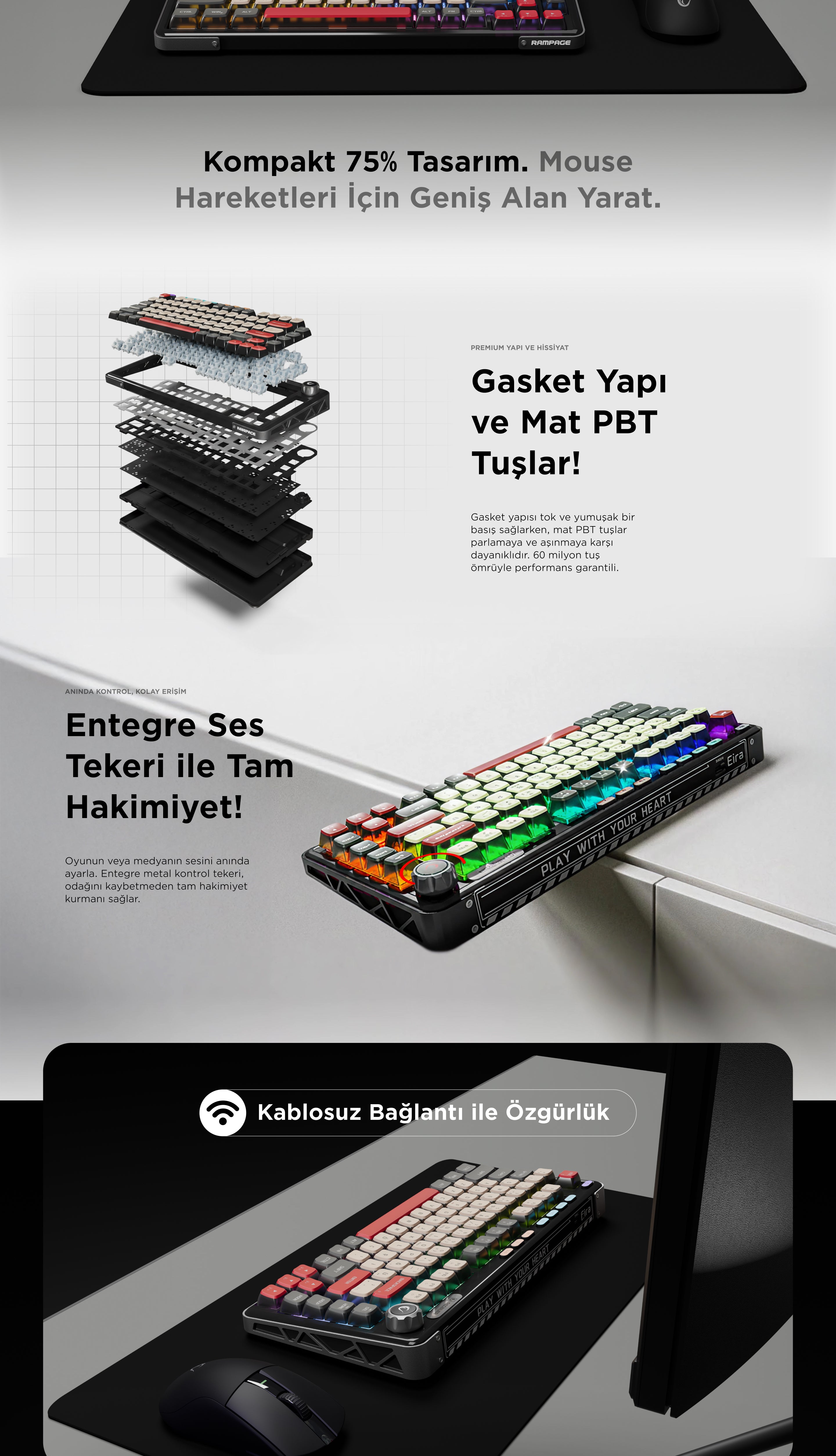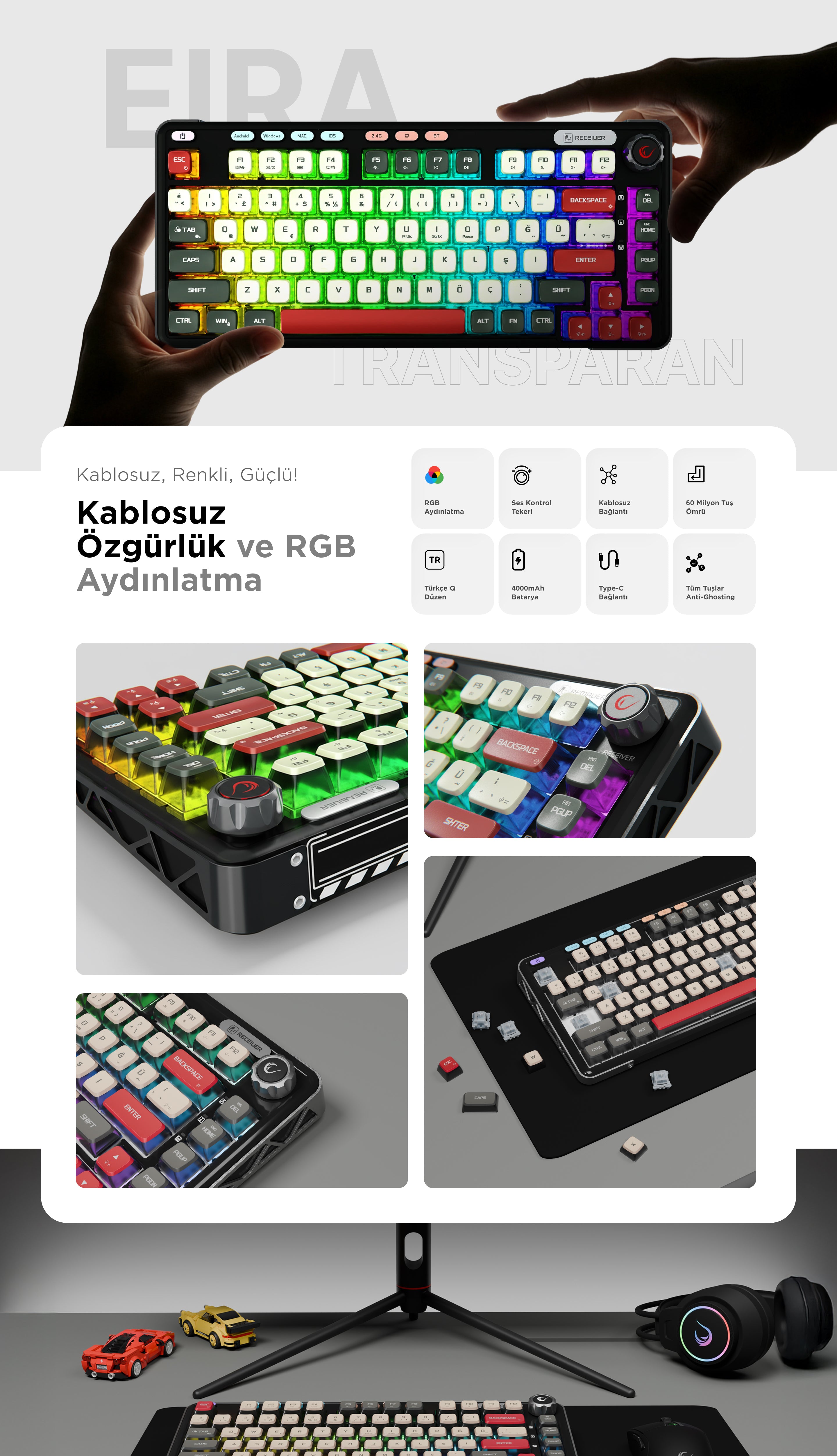Transparan Hot Swap RGB Gasket Oil Switch Türkçe Pudding PBT Keycaps Kablosuz Mekanik Oyuncu Klavyesi