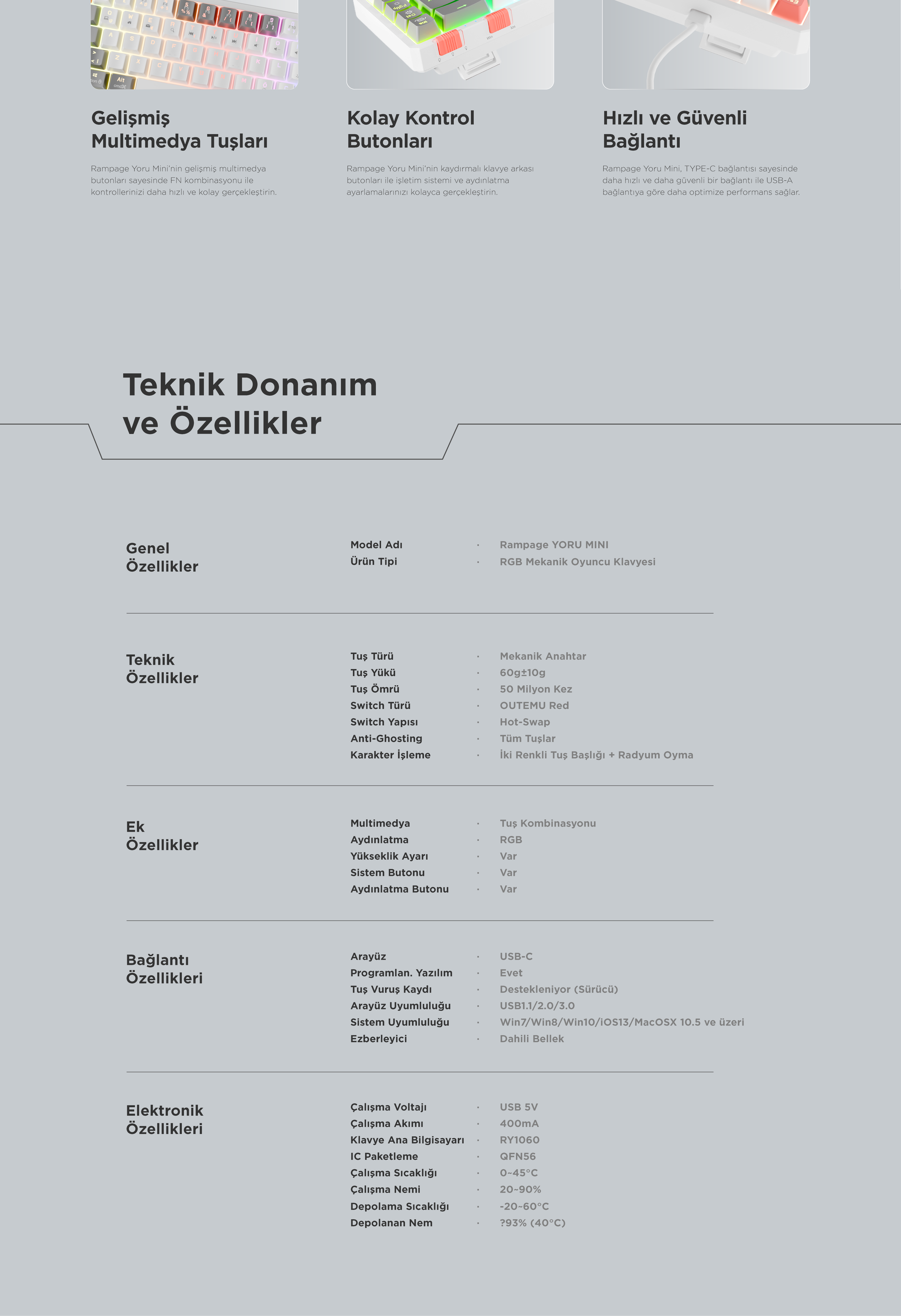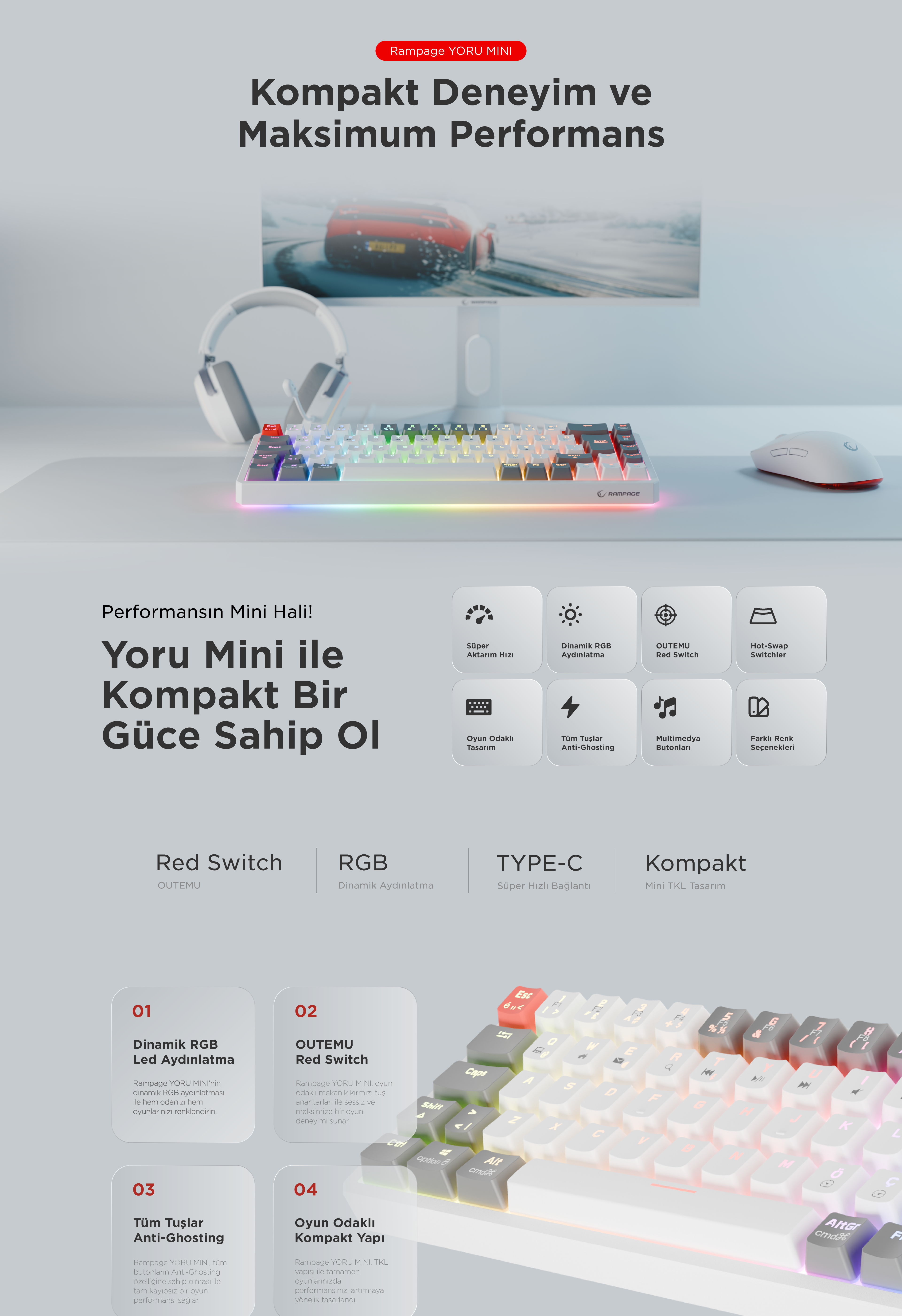 RGB Outemu Red Switch Mekanik Oyuncu Klavyesi